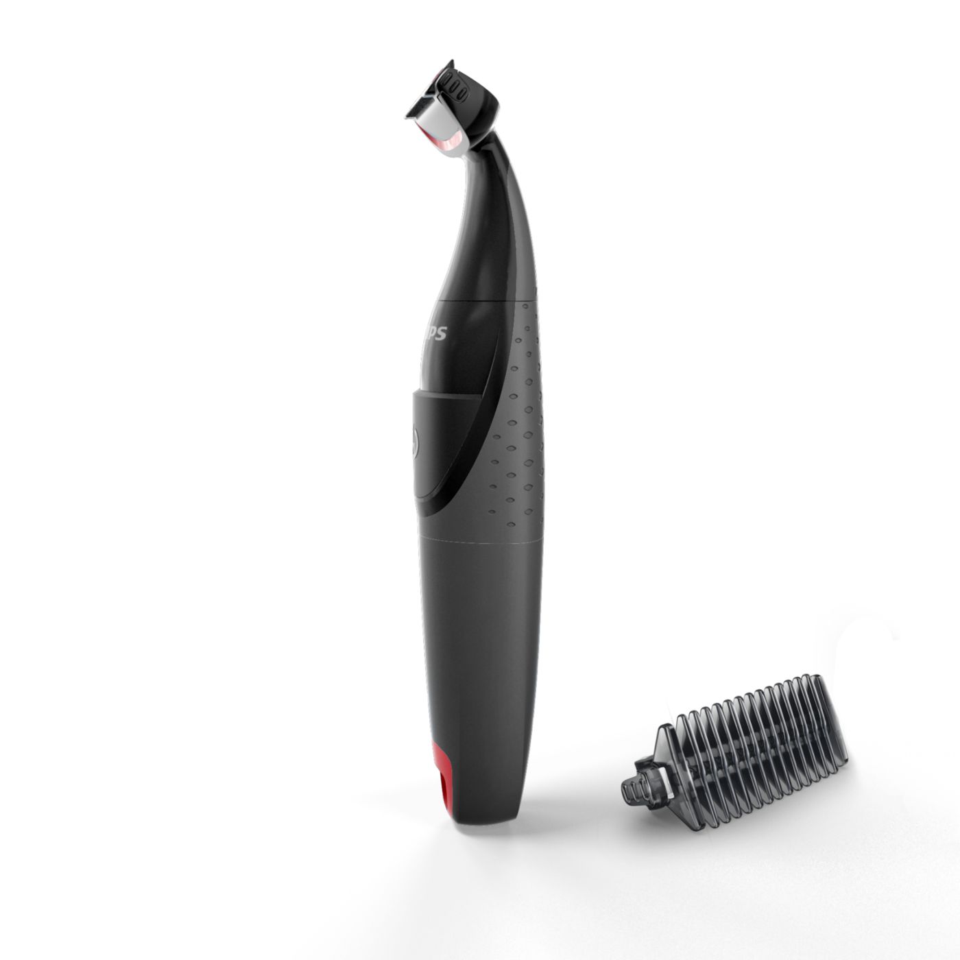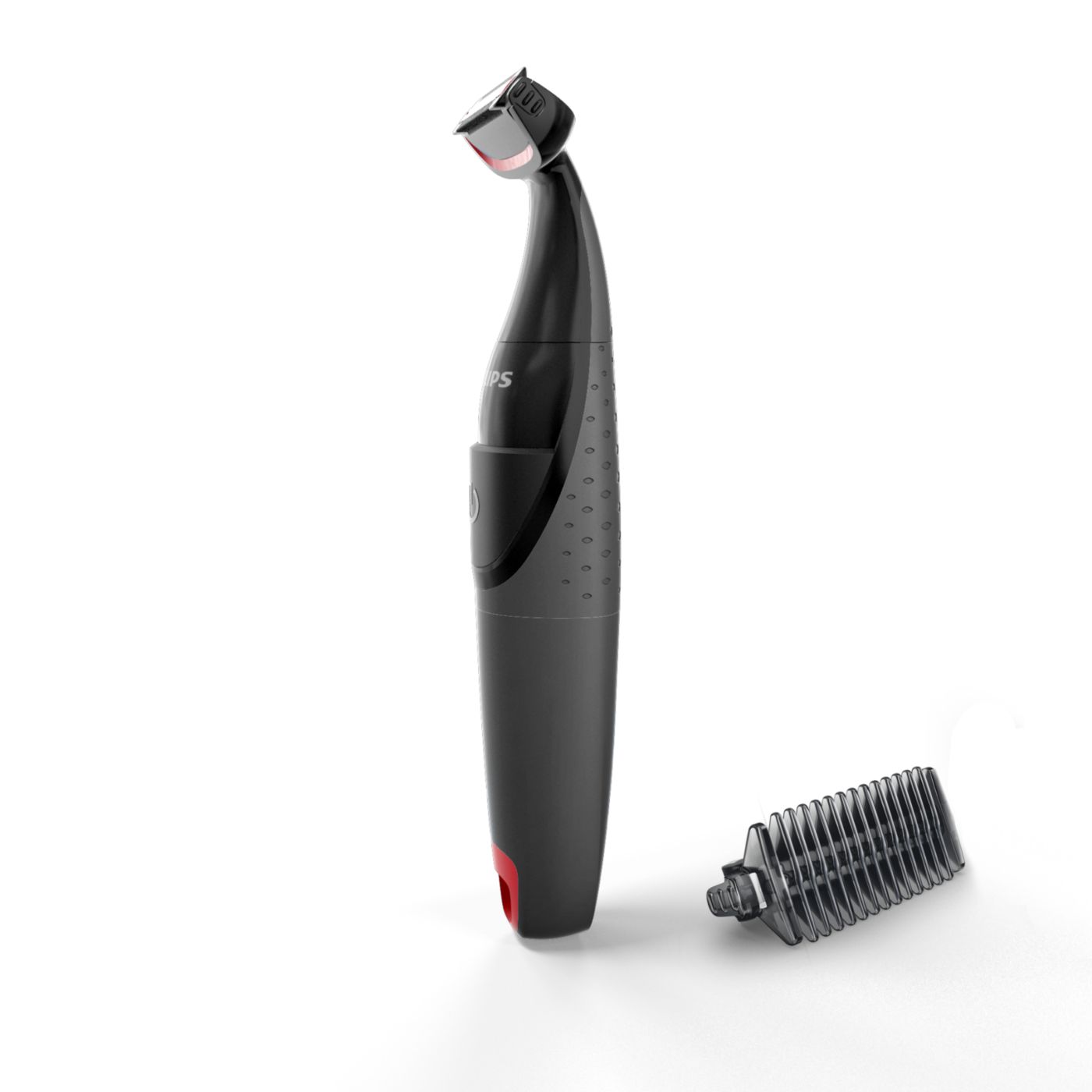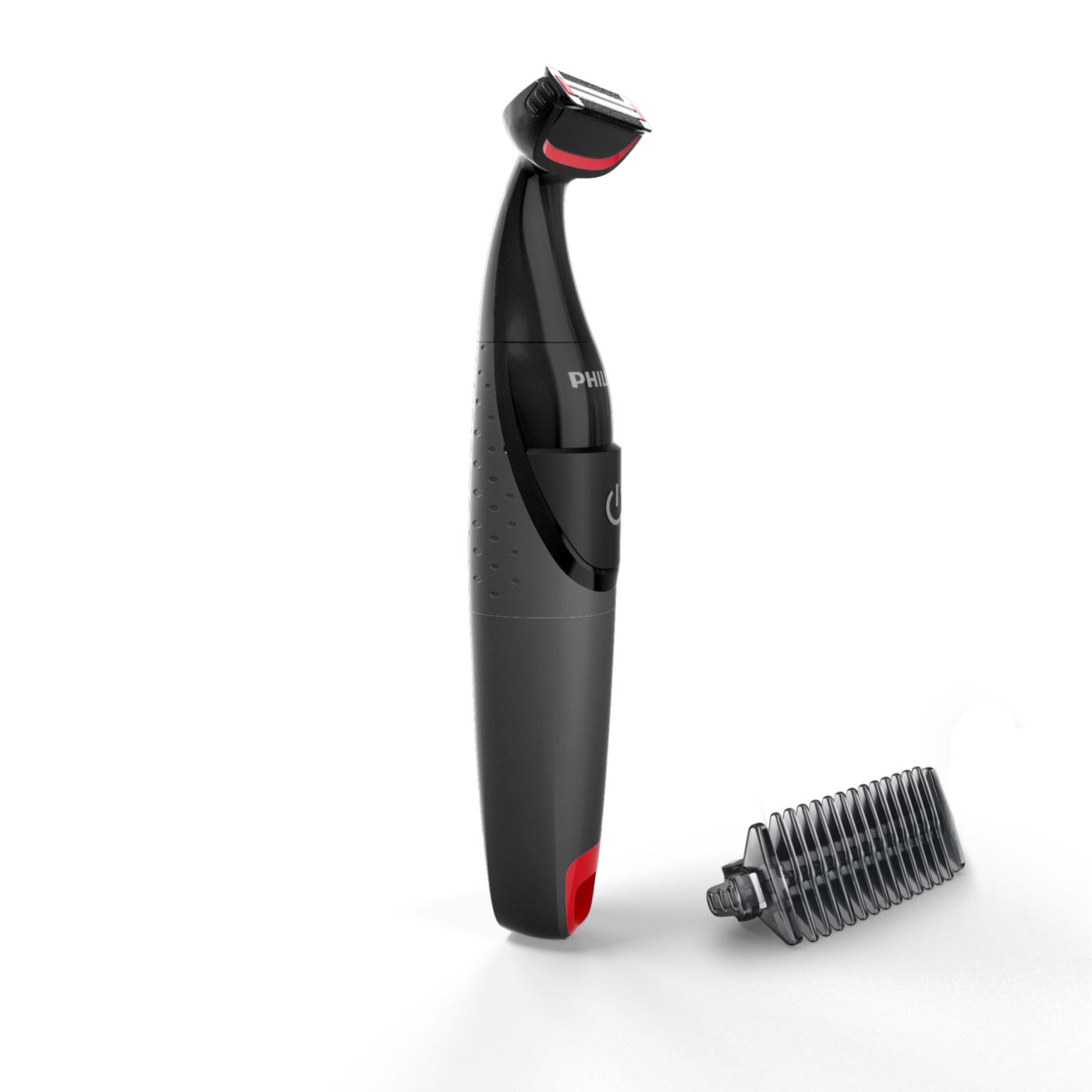 O produto é ótimo para partes sensíveis do corpo, principalmente virilha. Permite aparar bem rente a pele sem machucar. Recomendo a todos. Tem alguns detalhes que a Philips poderia melhorar para deixar o produto prefeito: 1) Ele é a pilha sem possibilidade de recarga. Se fosse a bateria recarregável, responderia o problema de ter que ficar comprando pilhas... Elas duram de 2 a 3 usos. Após o produto perde potência e fica incômodo usar... Chega a engajar nos pelos sem cortar. 2) incluir mais alternativas de pentes, pois só vem com uma peça.