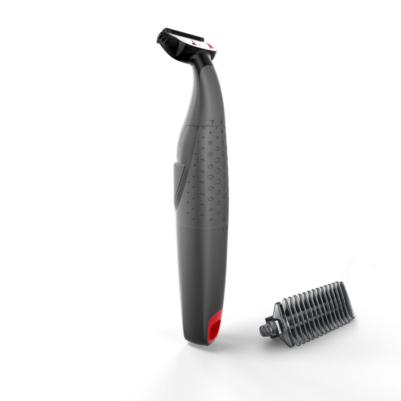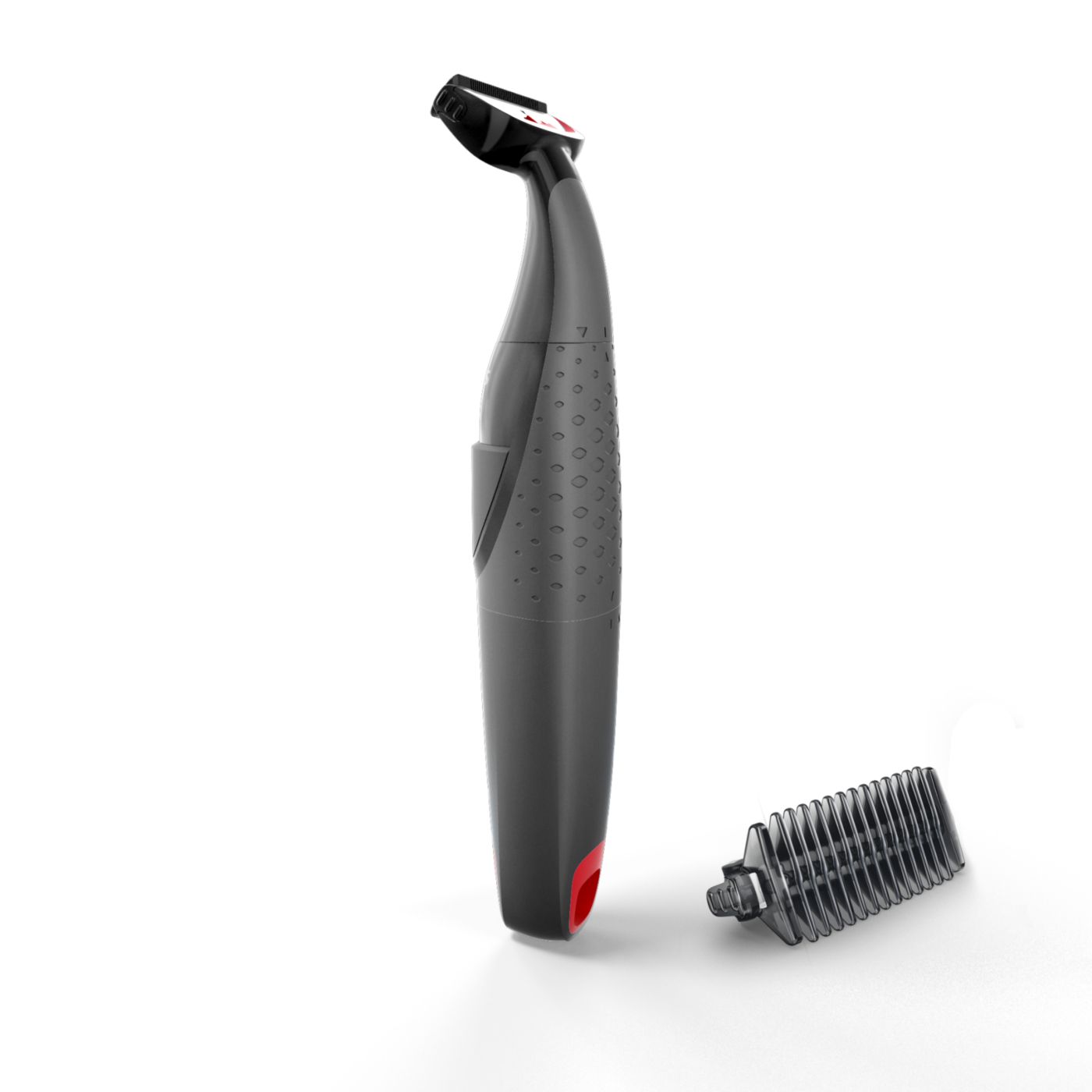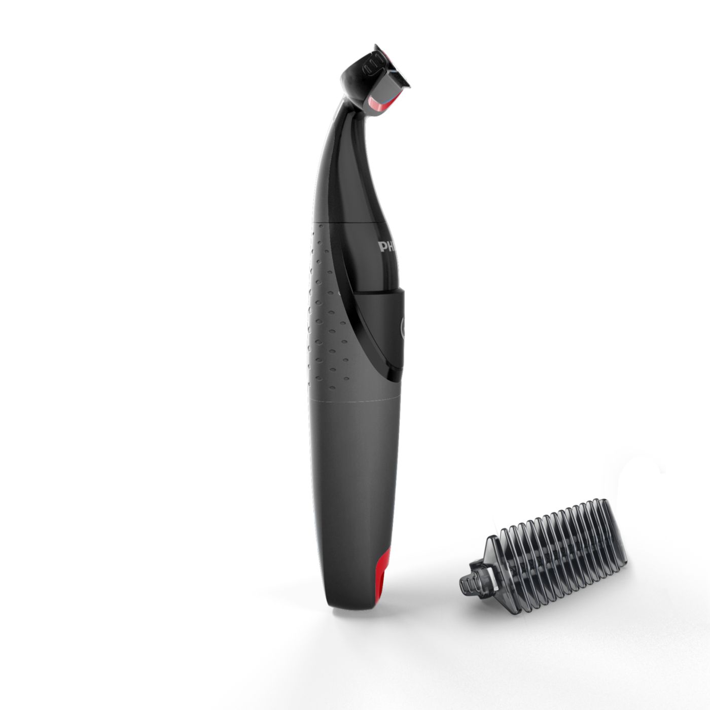 O exclusivo sistema de proteção da pele cuida até mesmo das áreas mais sensíveis do corpo, permitindo que você confortavelmente apare os pelos em até 0,5 mm, sem o contato direto entre a ponta afiada das lâminas e sua pele.