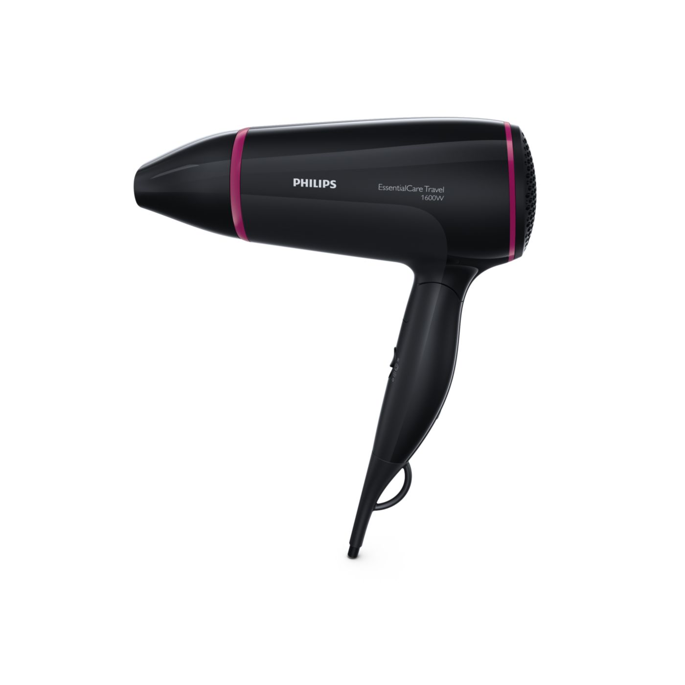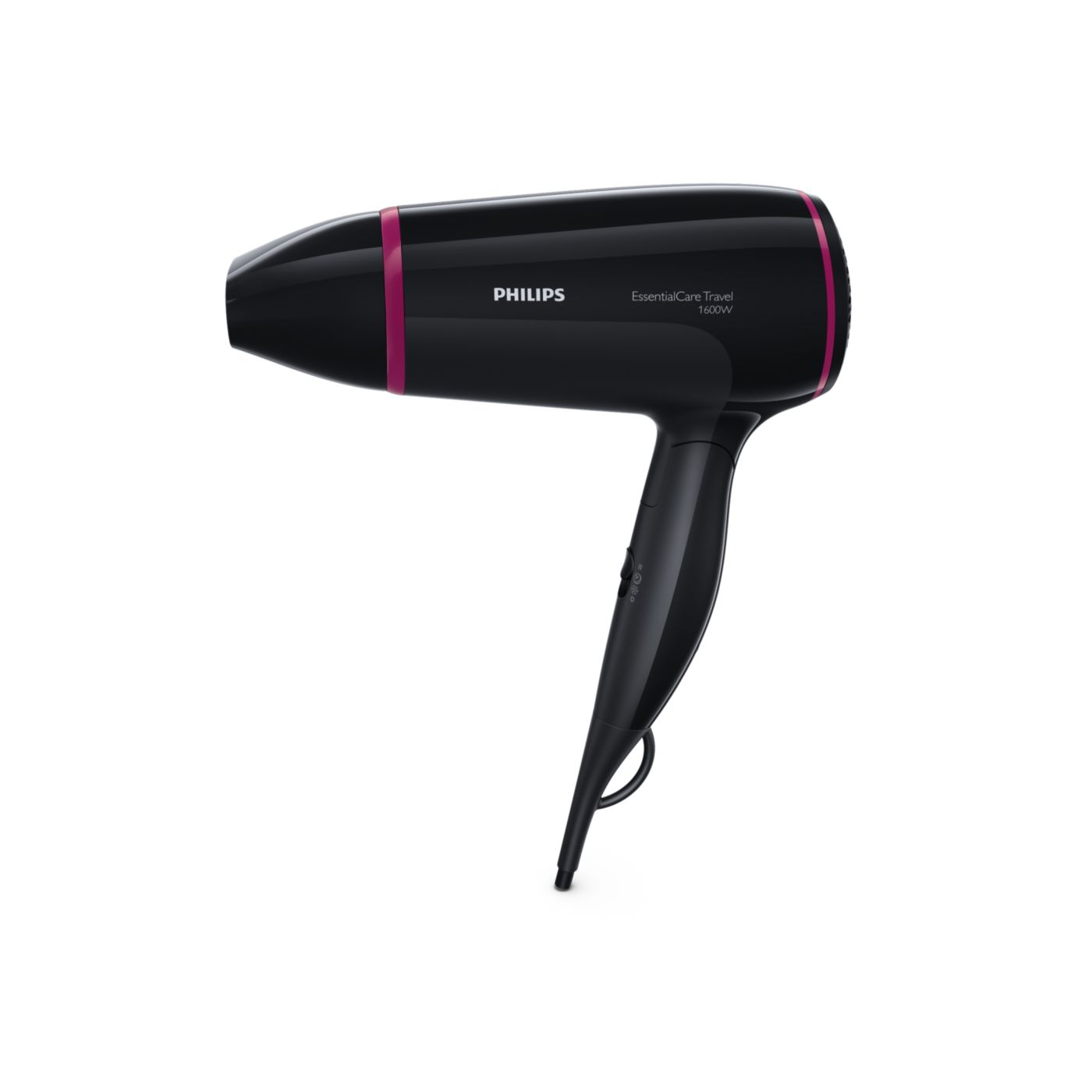 O novo secador para viagem EssentialCare oferece potência para secagem perfeita que cabe em qualquer mala de viagem. Dobrável, fácil de usar e com 1.600 W de potência, ele é a escolha perfeita para uma secagem potente em qualquer lugar.