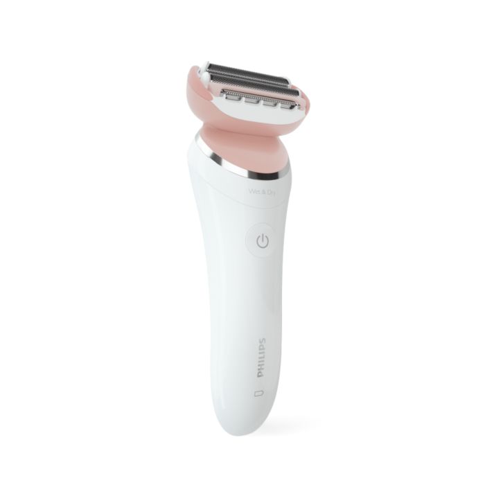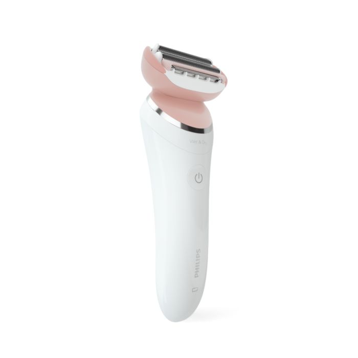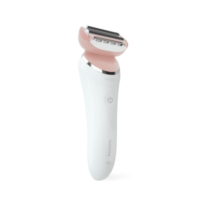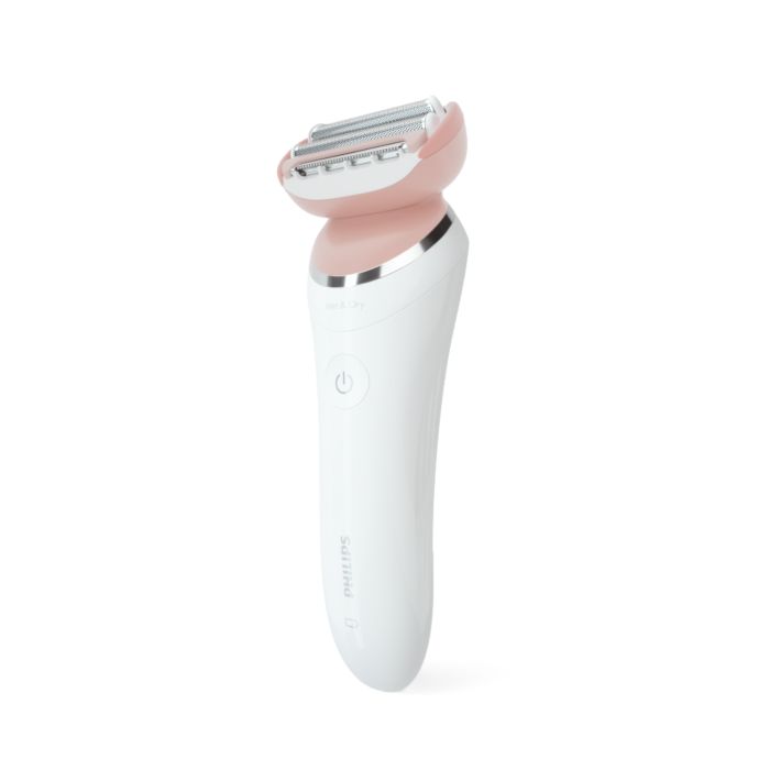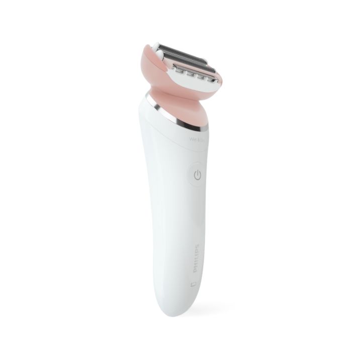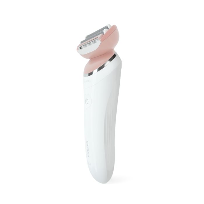 Ao usar o depilador elétrico no corpo, a cabeça multiflex com lâminas flutuantes e haste flexível acompanham seus movimentos para alcançar todos os pelos e manter o melhor contato com a pele.