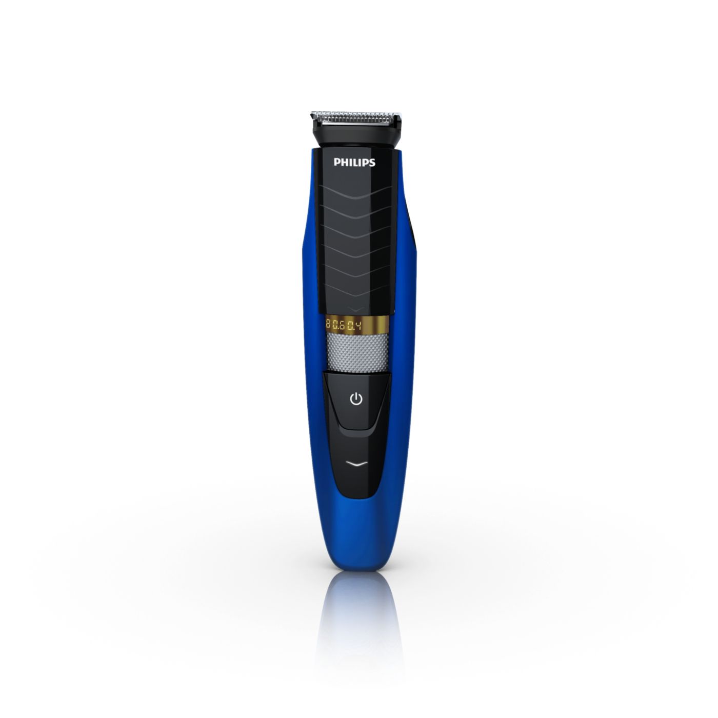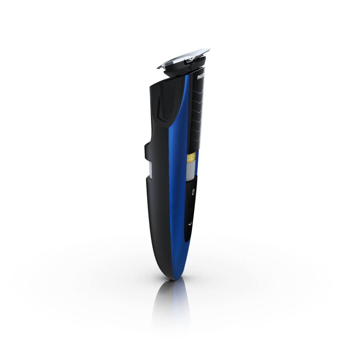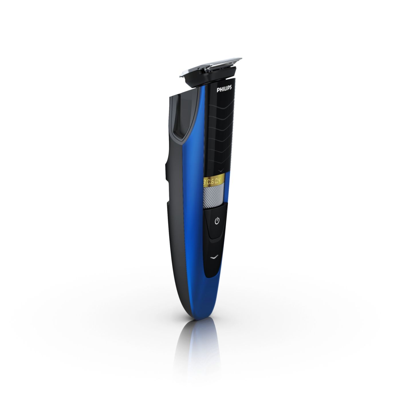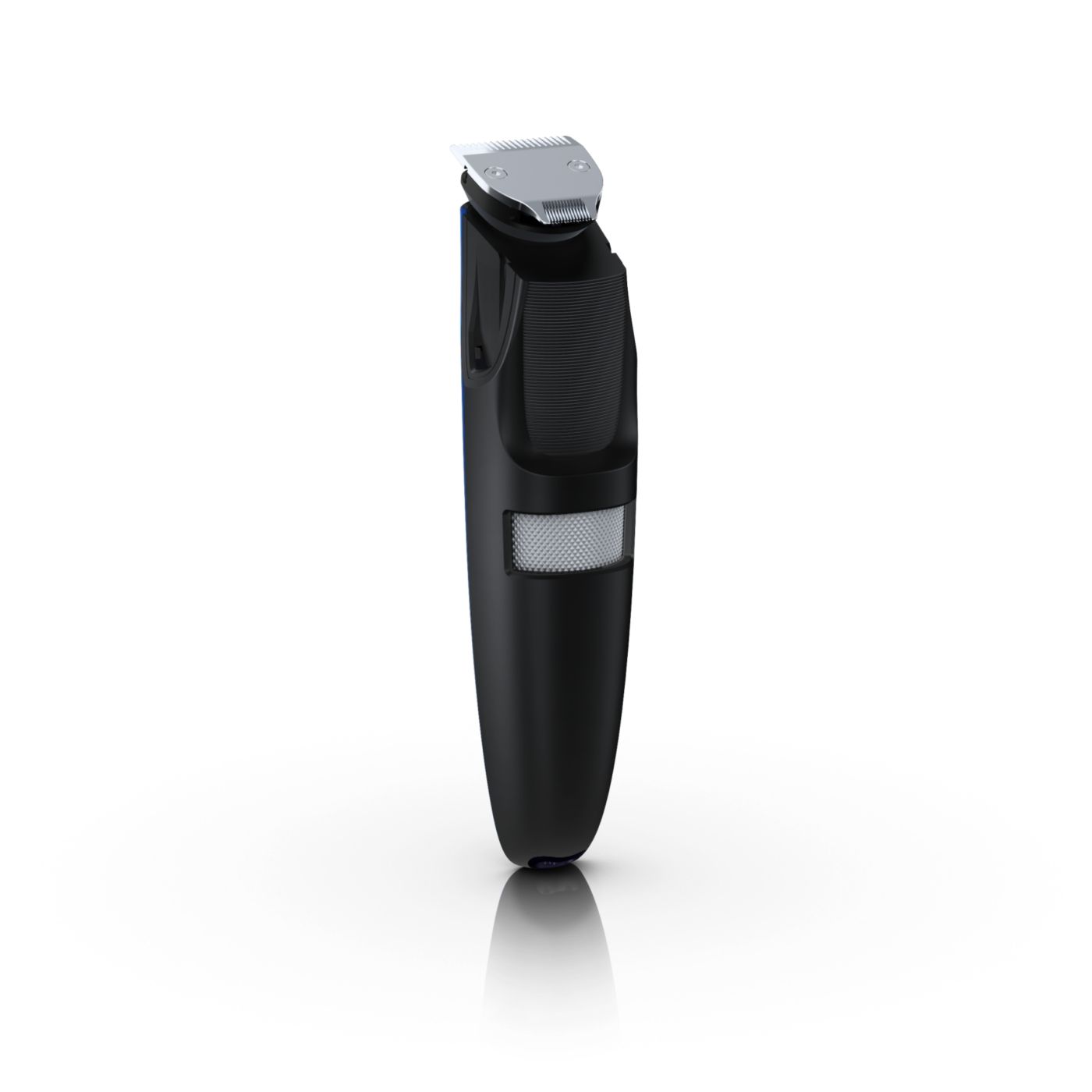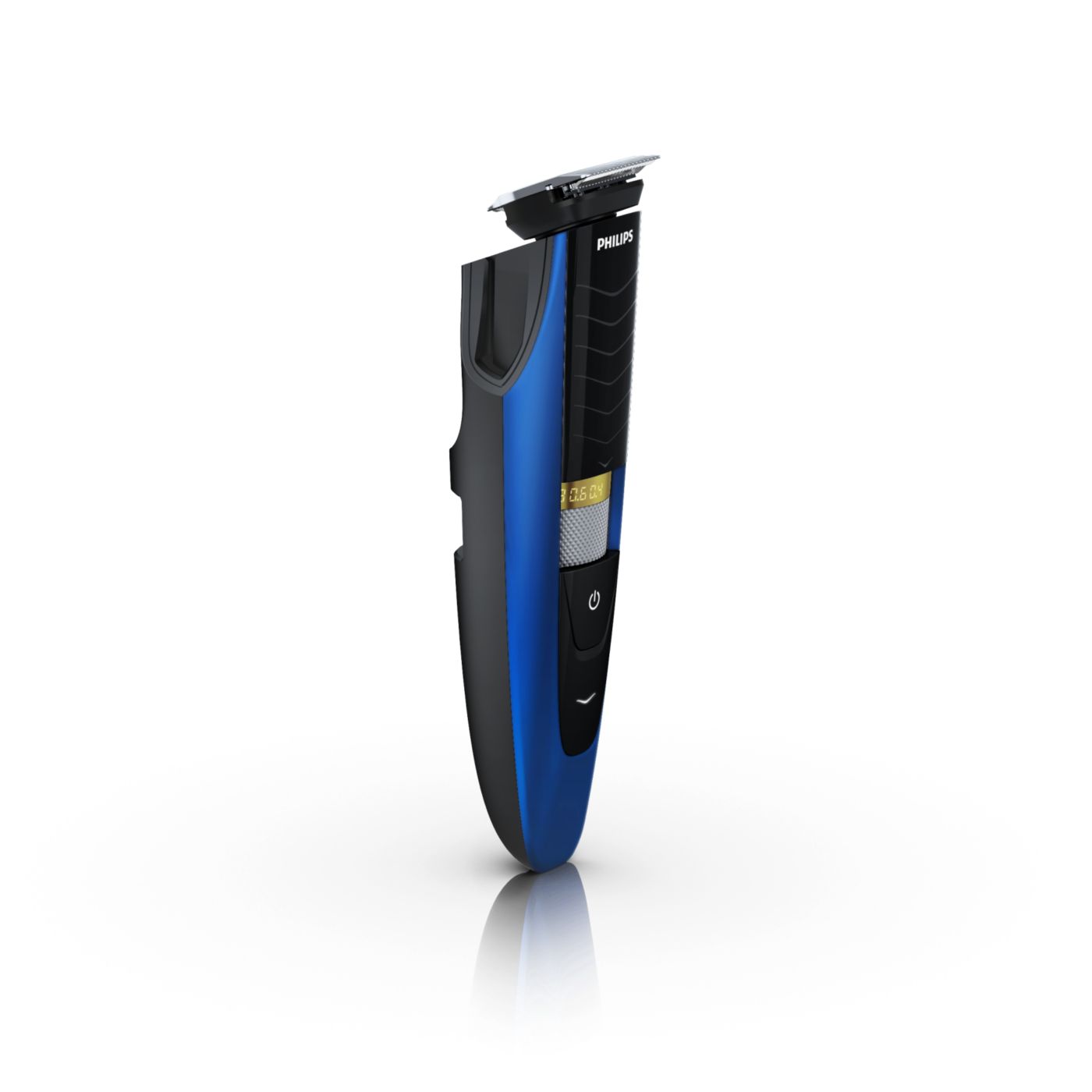Retire o pente ajustável e você verá um aparador de precisão reversível duplo. De um lado, há o aparador de alto desempenho de 32 mm. Gire-o e verá um aparador de precisão de 15 mm, perfeito para pequenos espaços, como sob o nariz ou em volta da boca. Desenvolvido para cortar muito rente e ainda proteger sua pele; o tamanho compacto e o design com ângulos facilitam a visão para que você obtenha linhas e detalhes finos.