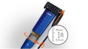 Se você deseja uma barba perfeita com aparência de três dias, basta usar o ajuste mais curto do aparador de 0,4 mm. Para uma barba mais longa perfeitamente arrumada, basta usar o ajuste da altura exata que você necessita.