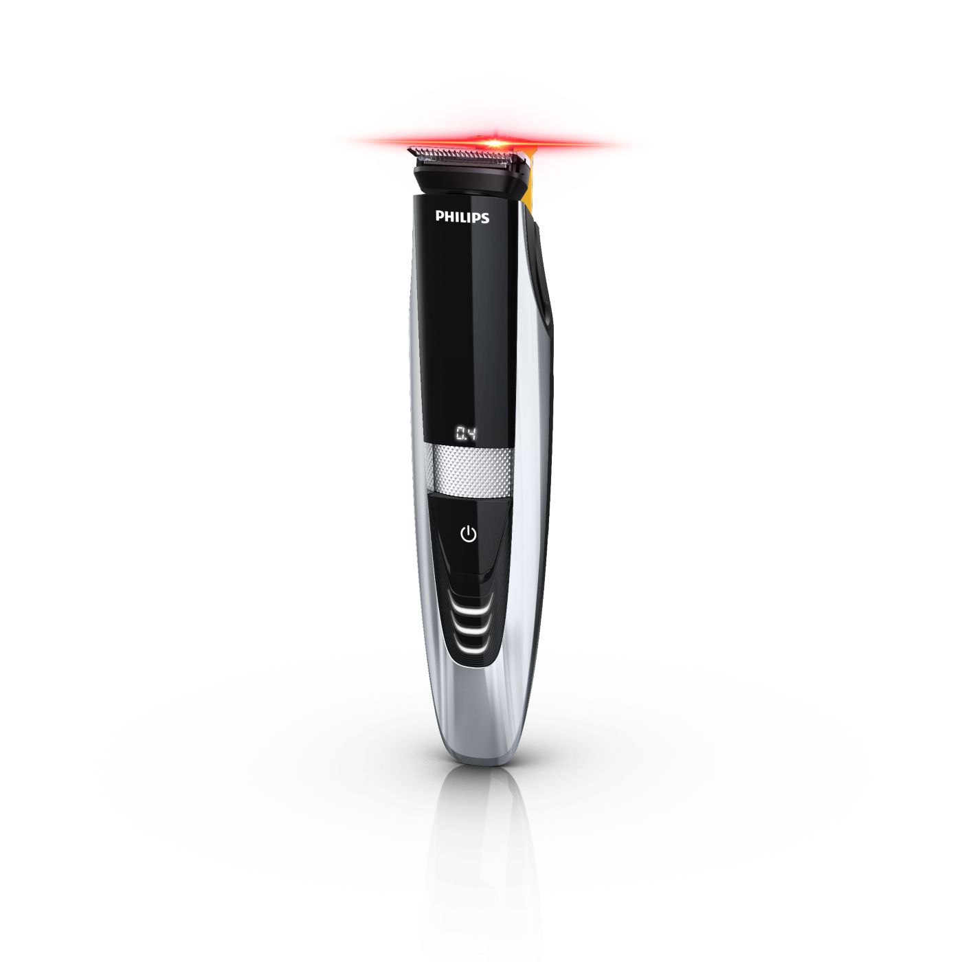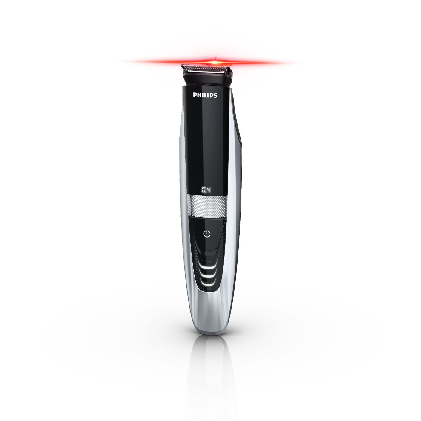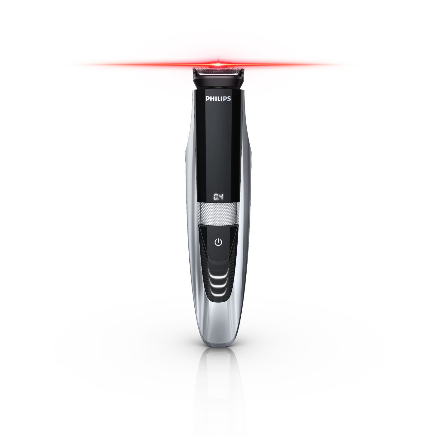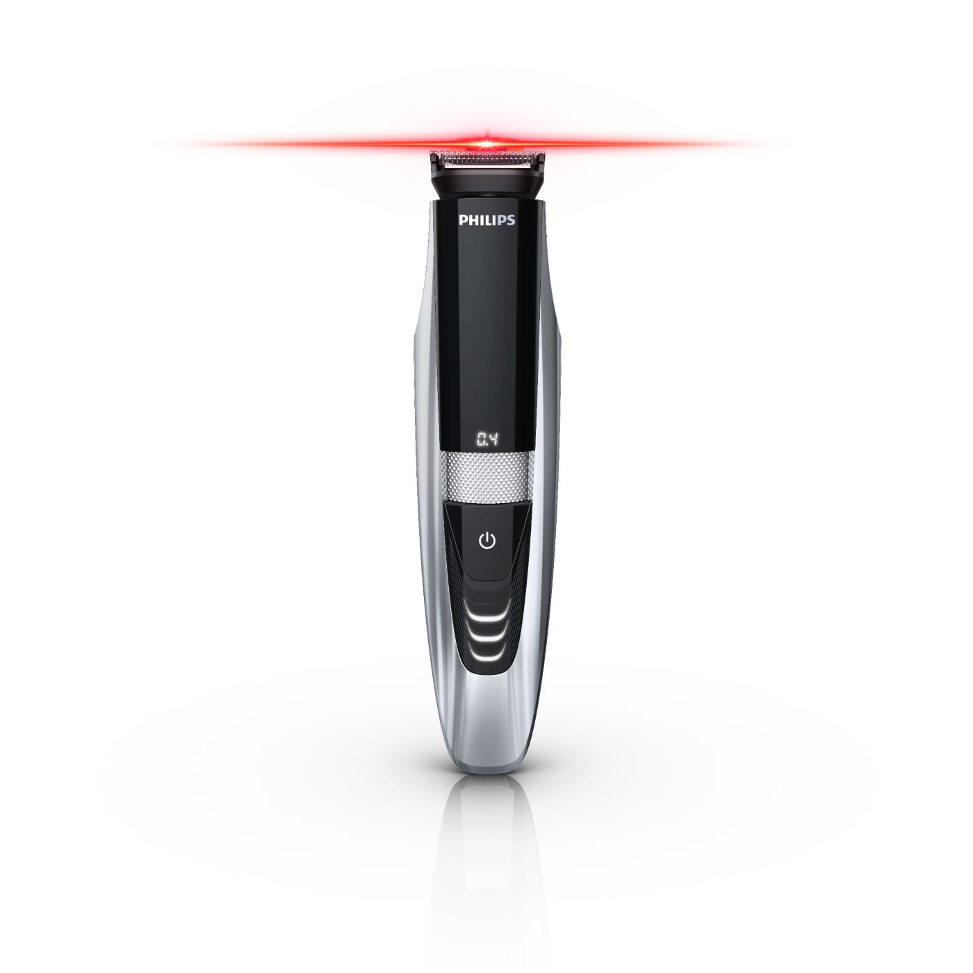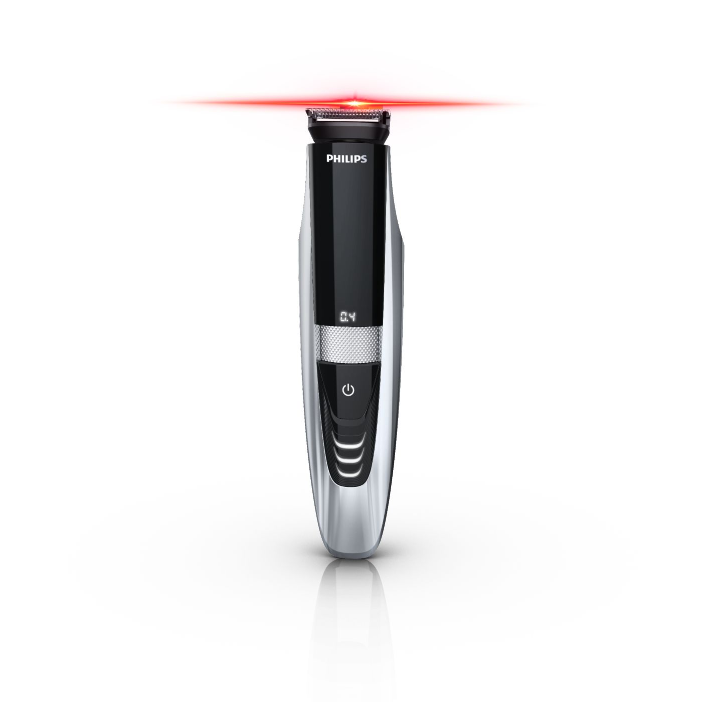 O exclusivo sistema de guia a laser projeta um feixe fino de luz para pré-alinhar seu estilo antes da aparagem. E ainda aponta onde os pelos serão cortados para precisão.