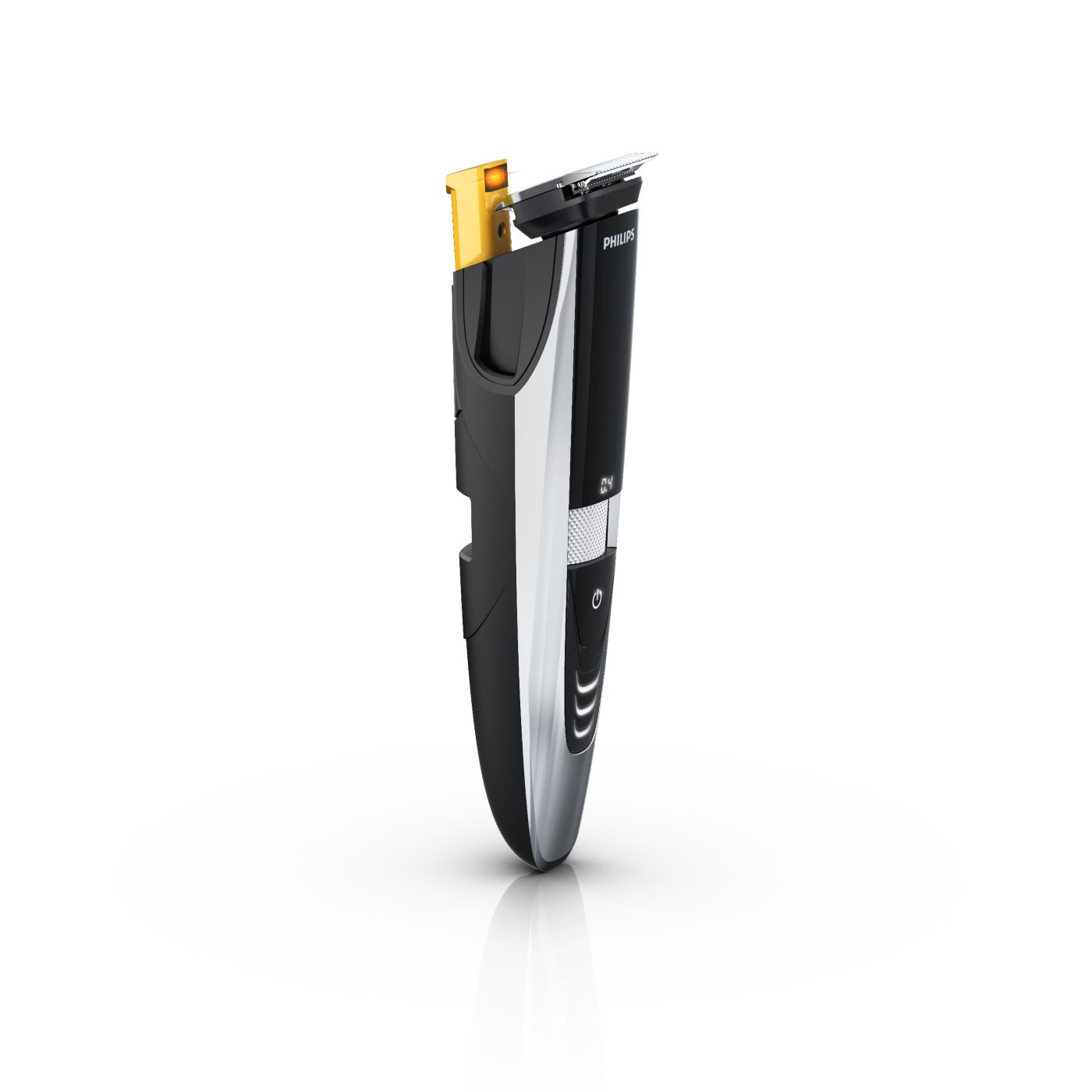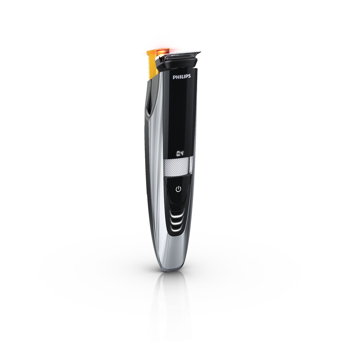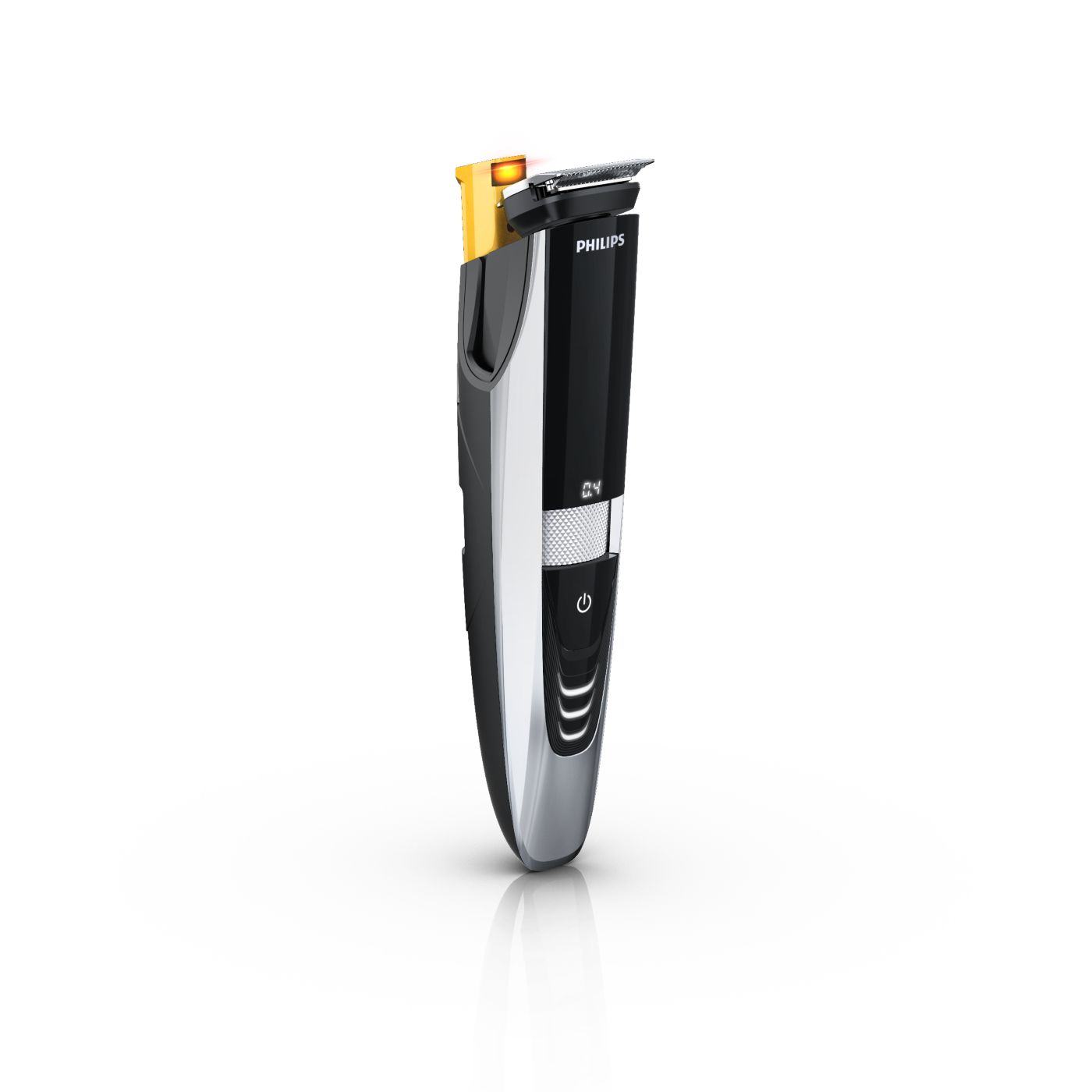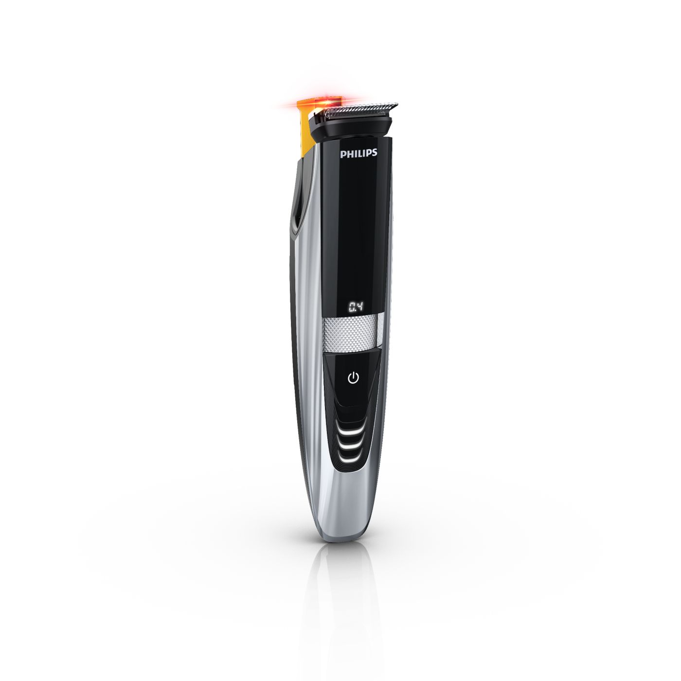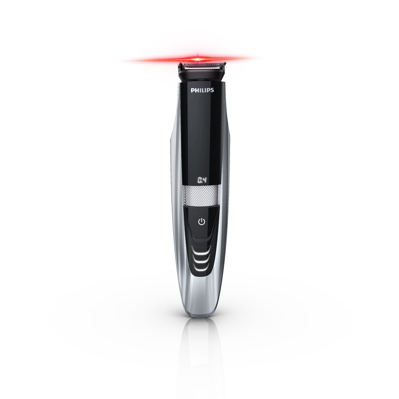 O exclusivo sistema de guia a laser projeta um feixe fino de luz para pré-alinhar seu estilo antes da aparagem. E ainda aponta onde os pelos serão cortados para precisão.