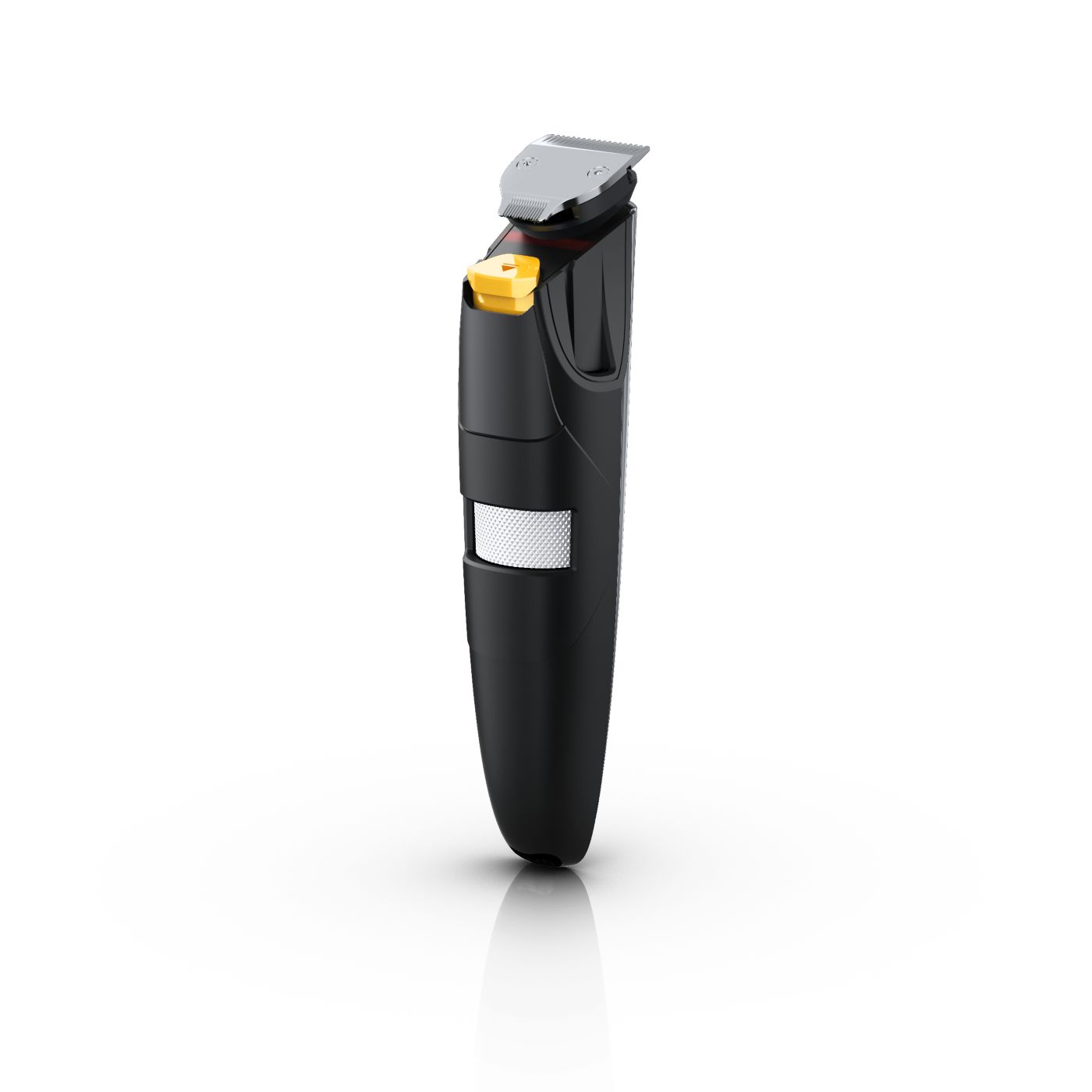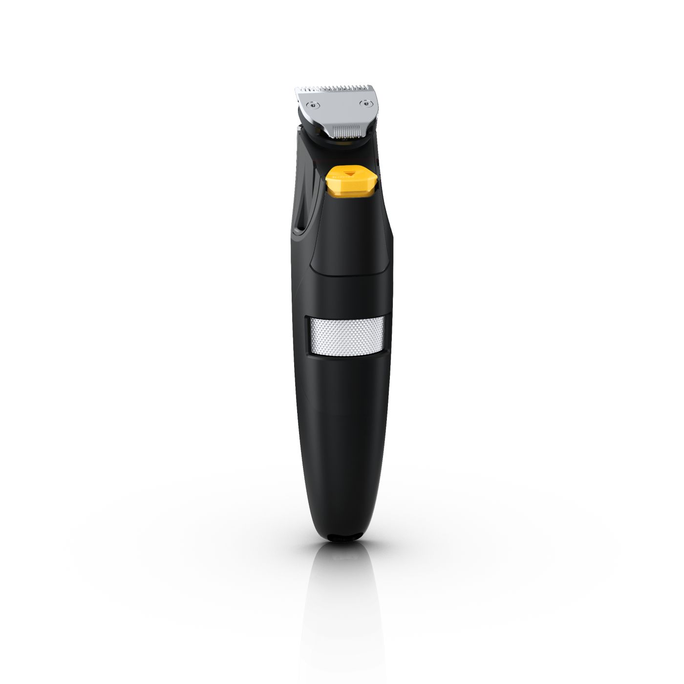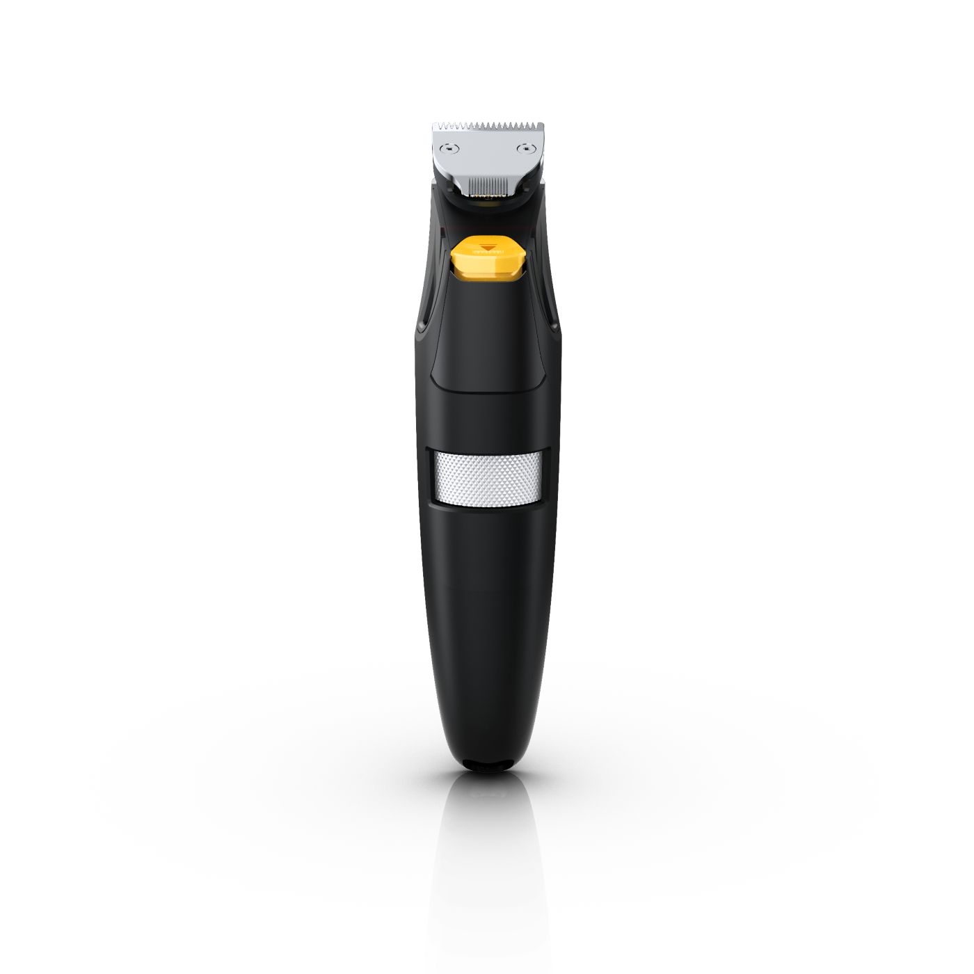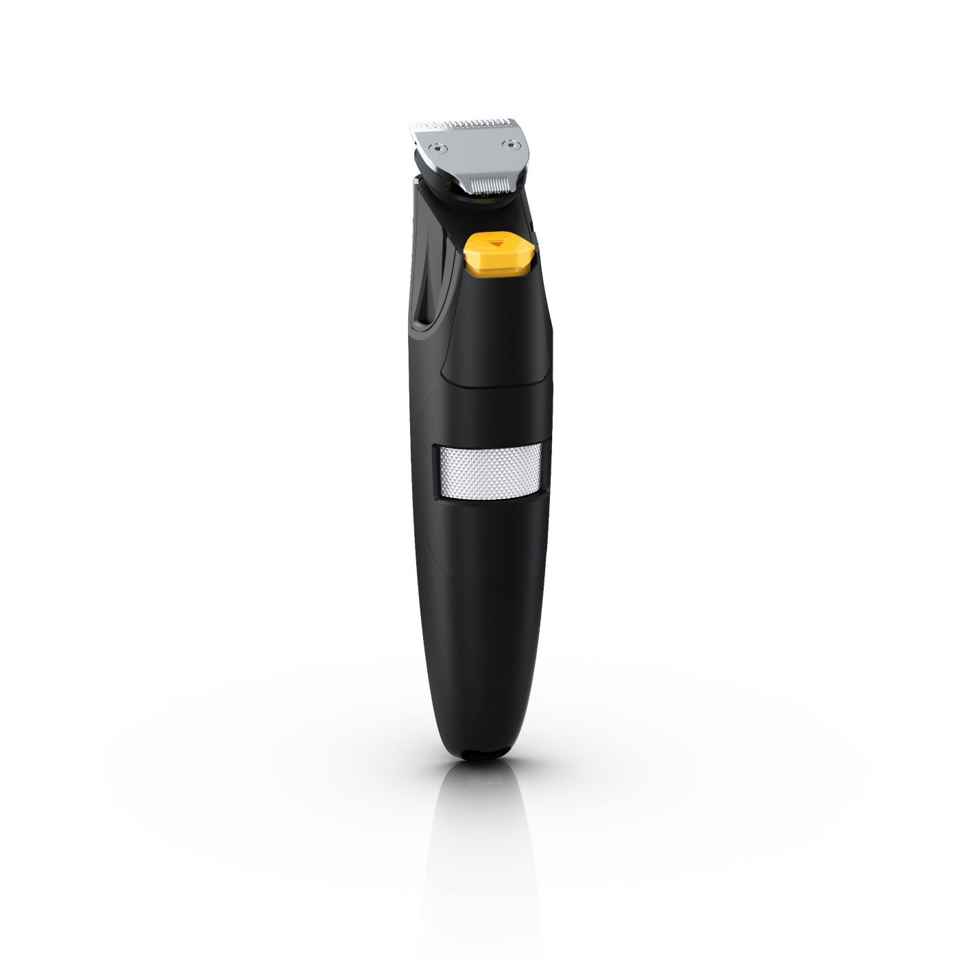 O aparador bilateral reversível oferece versatilidade para você criar seu próprio visual. De um lado, o aparador de alto desempenho de 32mm (1 17/64 pol) corta bem rente, além de proteger sua pele. Do outro lado, o aparador de precisão de 15mm (5/8 pol) cria um visual cheio de detalhes, mesmo em áreas difíceis de alcançar, como debaixo do nariz e em volta da boca. O tamanho compacto e o design angular do aparador facilitam a visão para que você obtenha linhas e detalhes finos e precisos.
