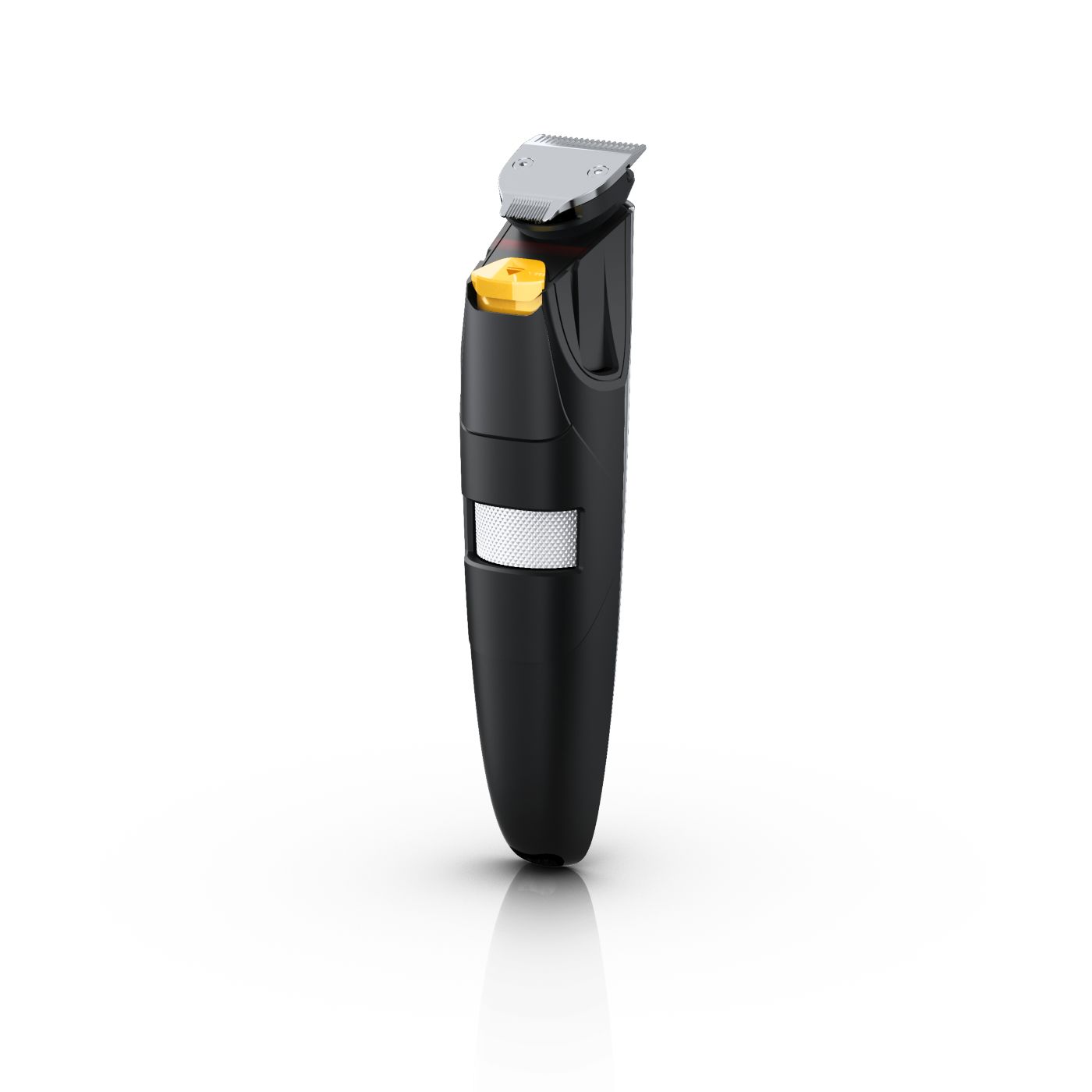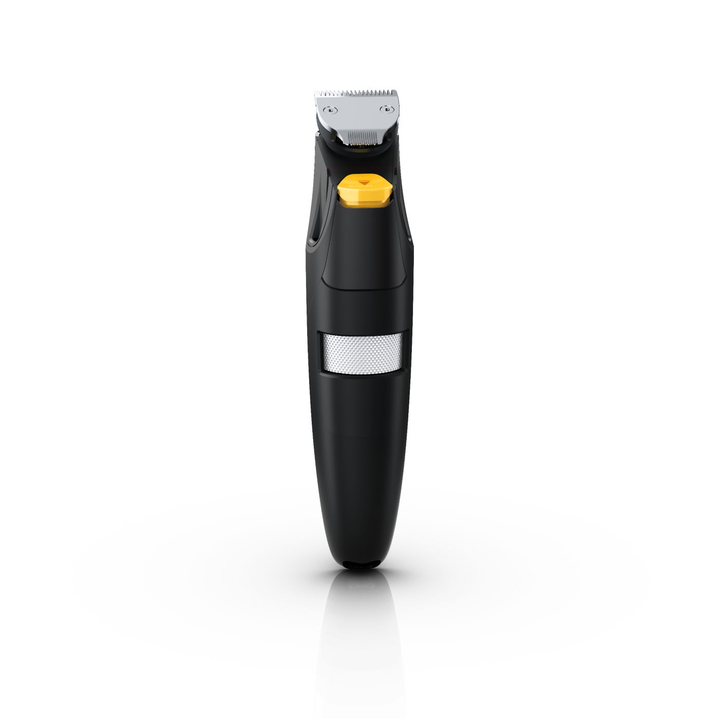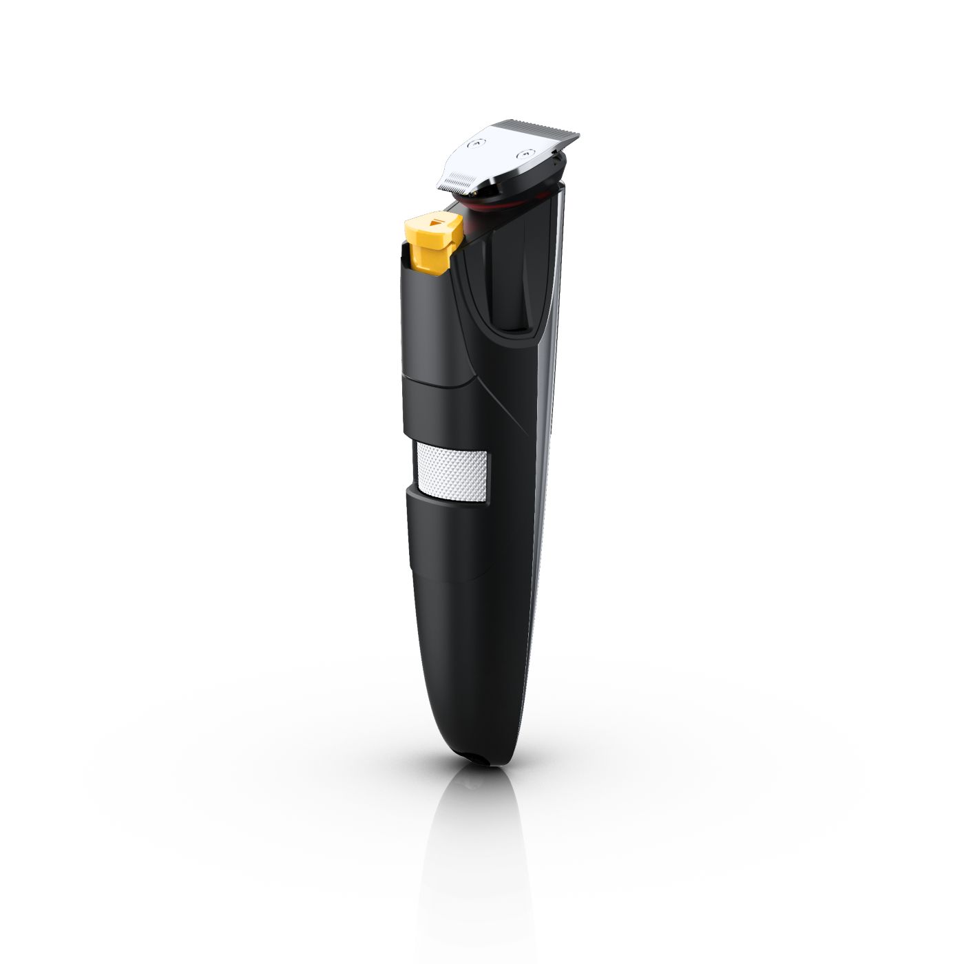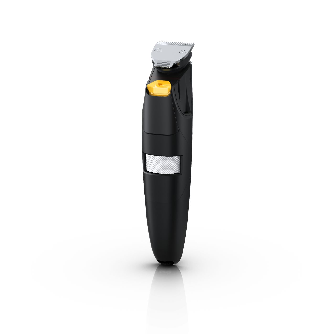 O aparador bilateral reversível oferece versatilidade para você criar seu próprio visual. De um lado, o aparador de alto desempenho de 32mm (1 17/64 pol) corta bem rente, além de proteger sua pele. Do outro lado, o aparador de precisão de 15mm (5/8 pol) cria um visual cheio de detalhes, mesmo em áreas difíceis de alcançar, como debaixo do nariz e em volta da boca. O tamanho compacto e o design angular do aparador facilitam a visão para que você obtenha linhas e detalhes finos e precisos.