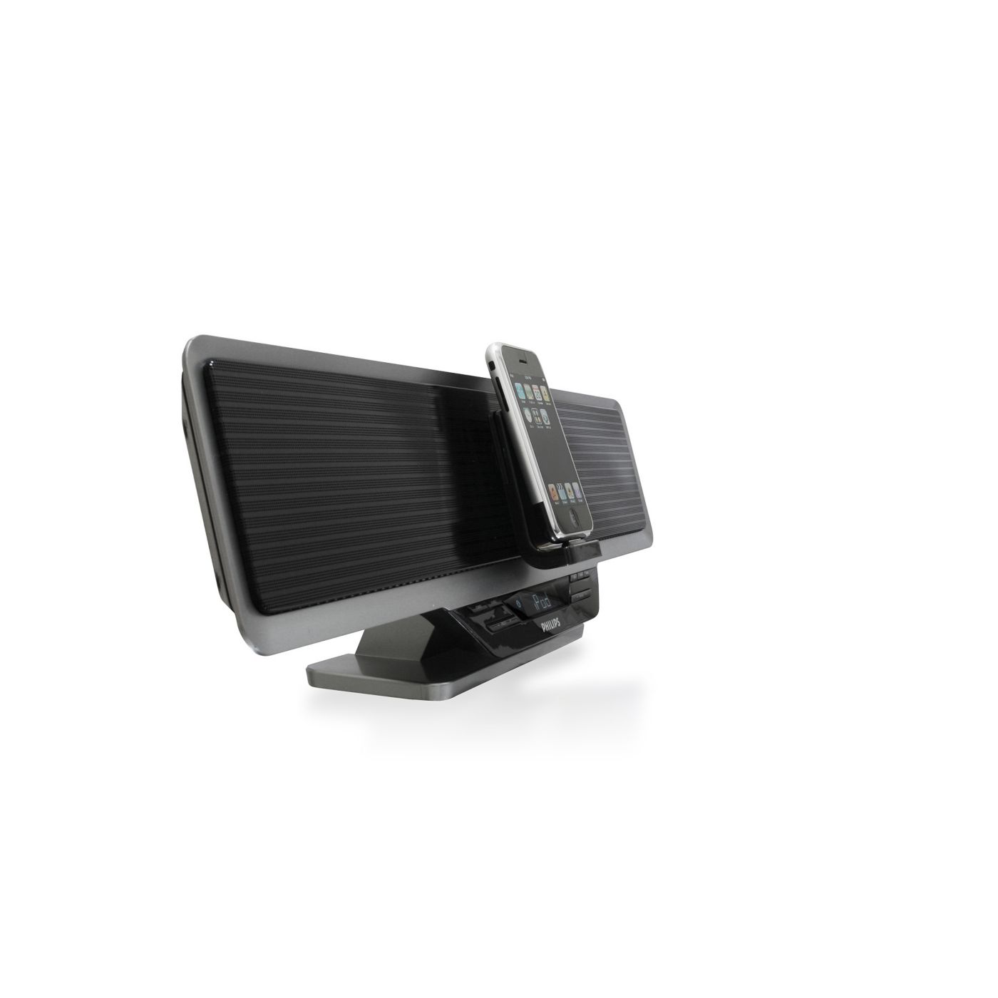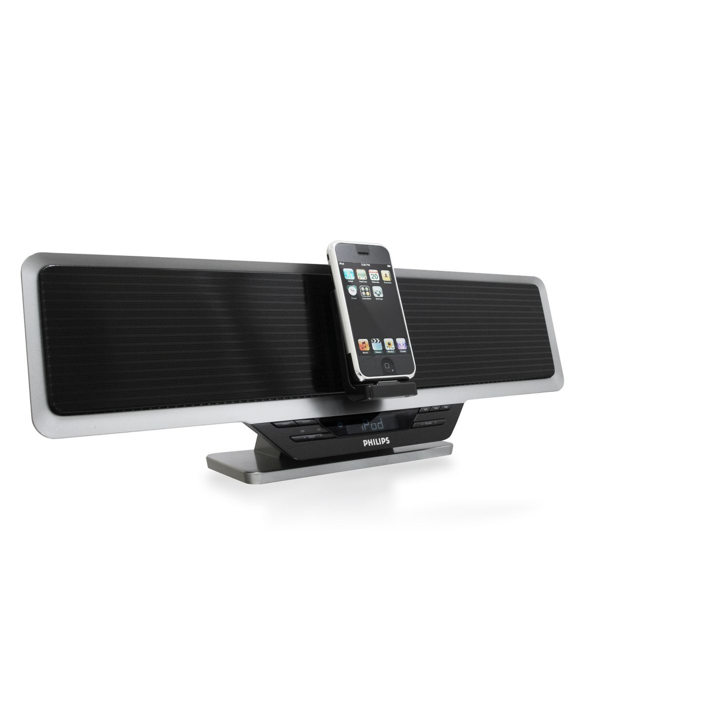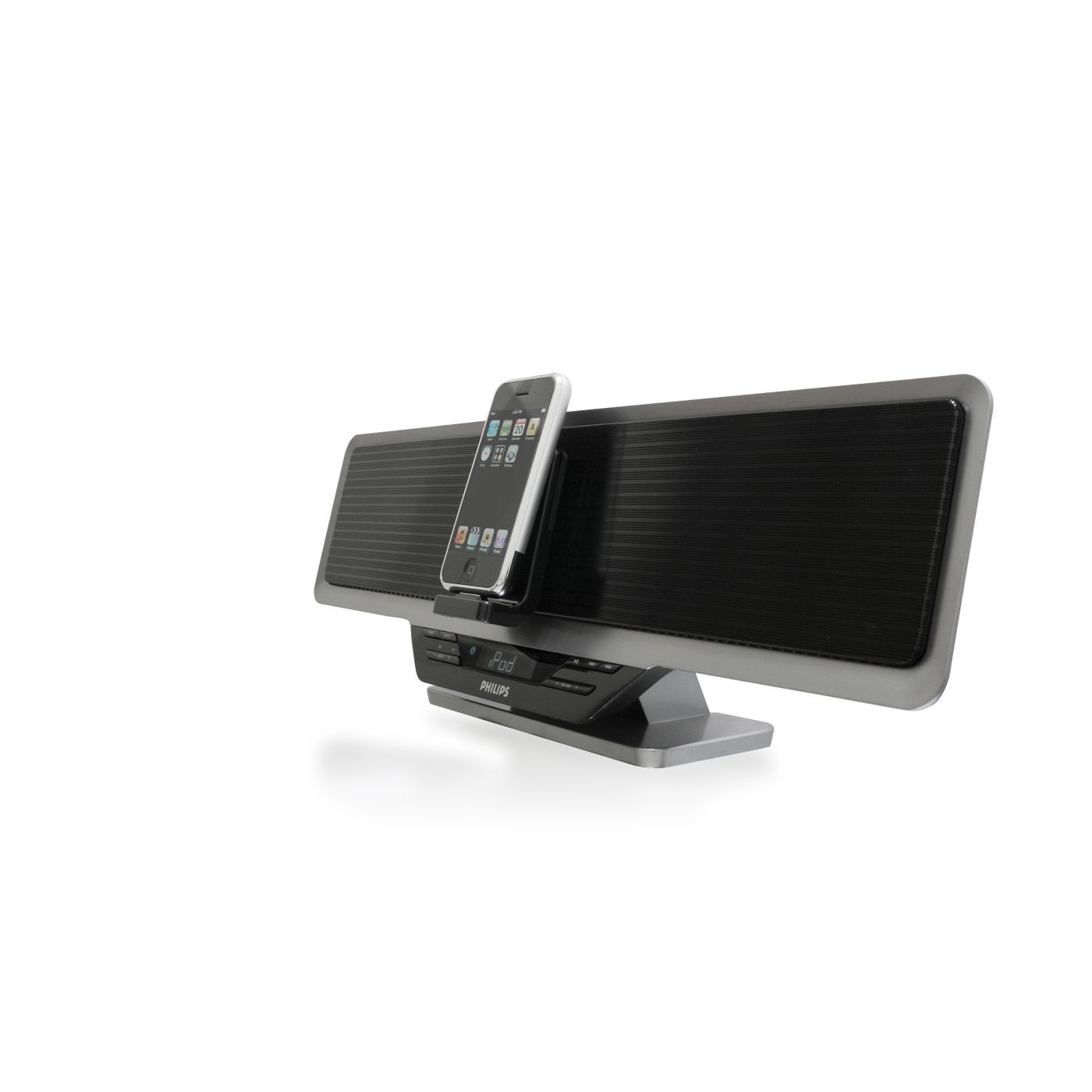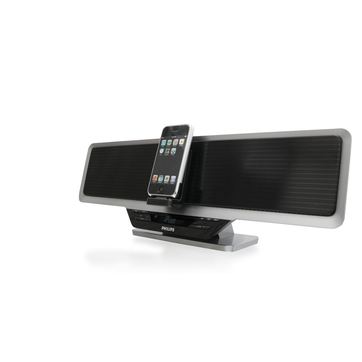 O acelerômetro do iPod touch altera automaticamente o modo de exibição do conteúdo. Se você mudá-lo da posição de retrato para paisagem ou vice-versa, o conteúdo exibido será alterado. A dock integrada para iPod do sistema Philips foi especialmente projetada de acordo com esse recurso — você pode alterar a posição do display da dock para visualizar com total praticidade páginas da Web, fotos ou videoclipes na proporção de imagem adequada à tela do iPod touch.