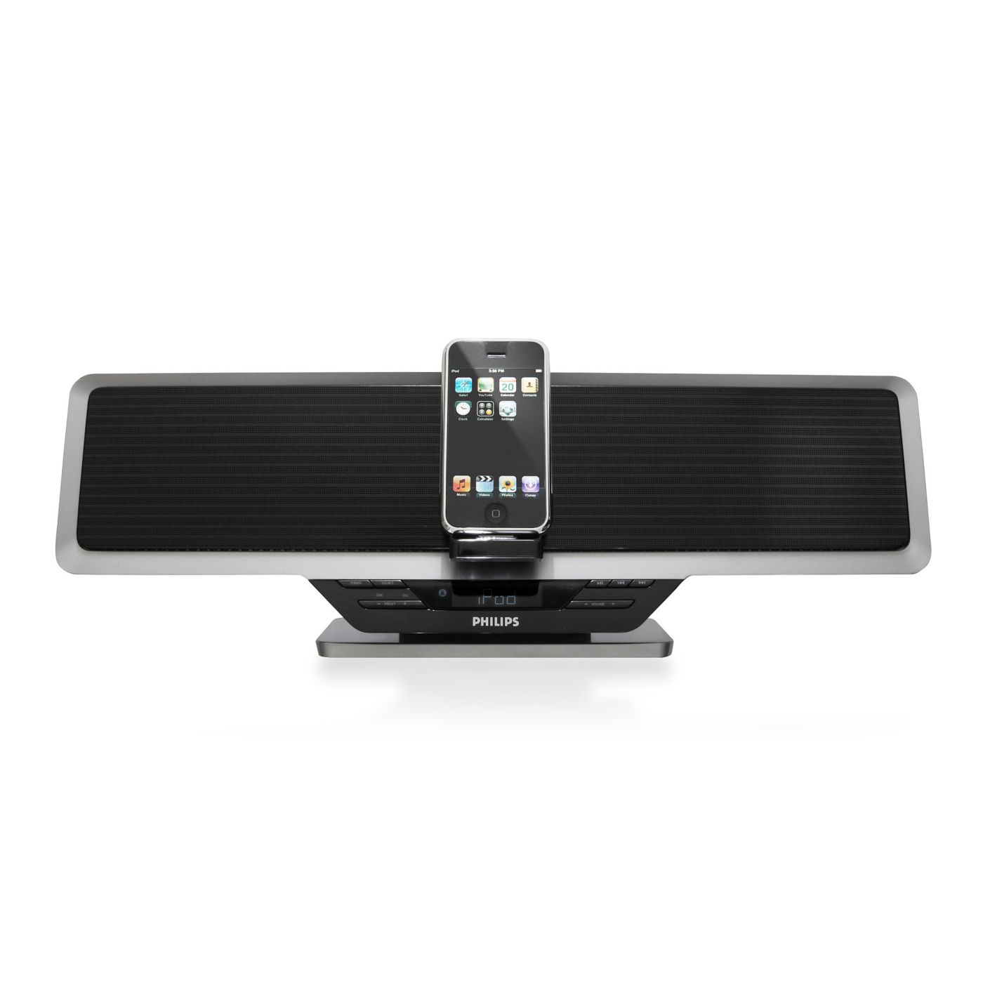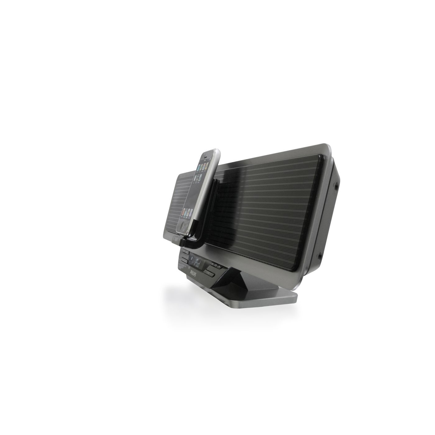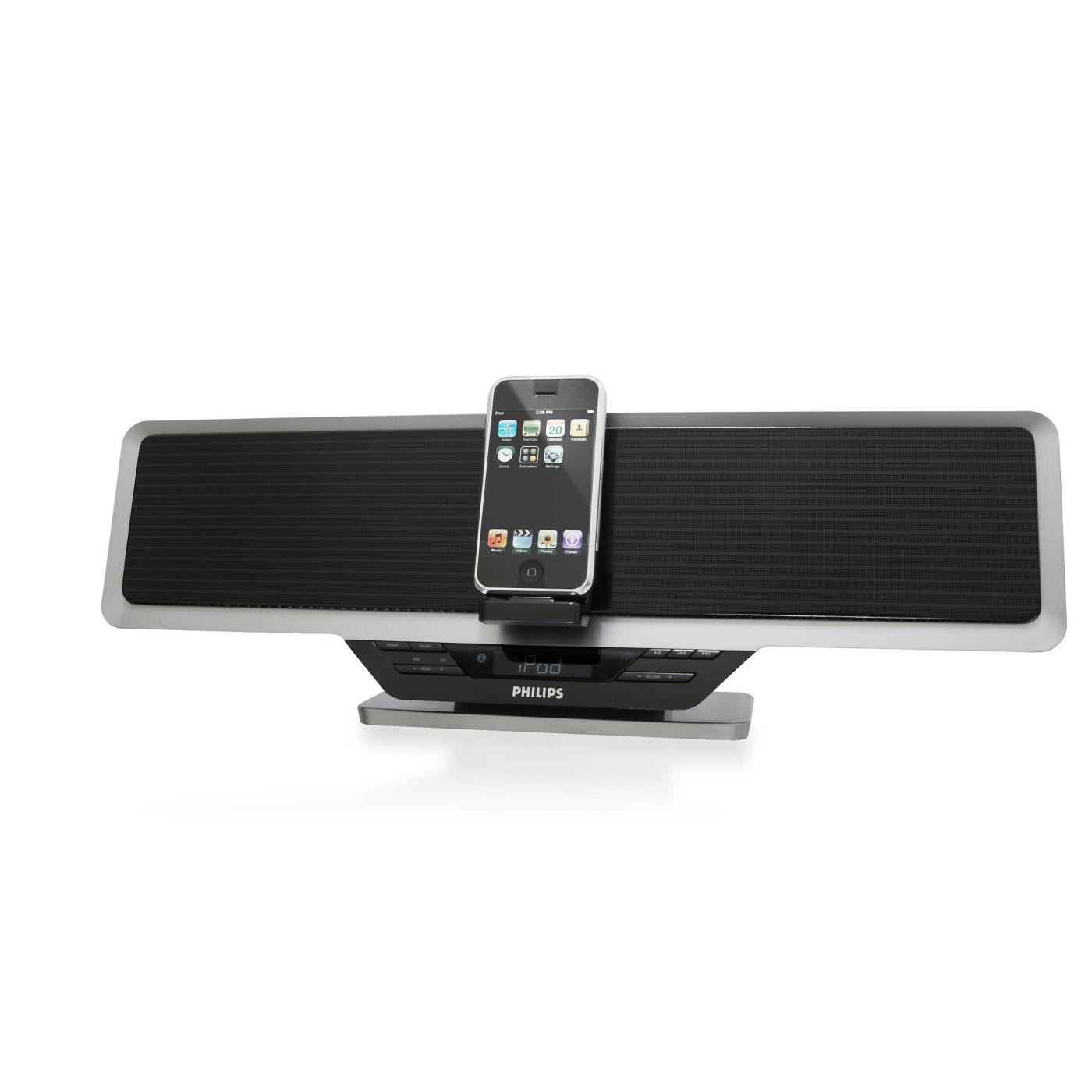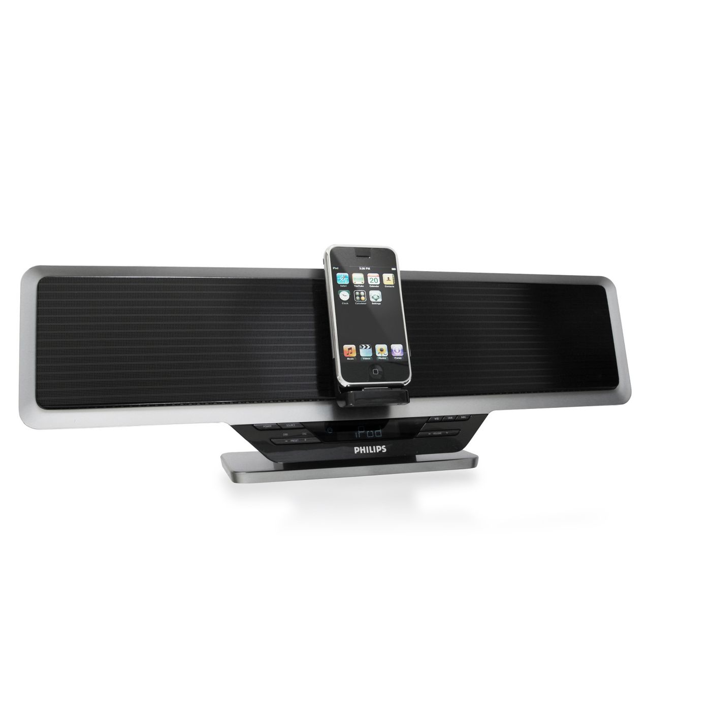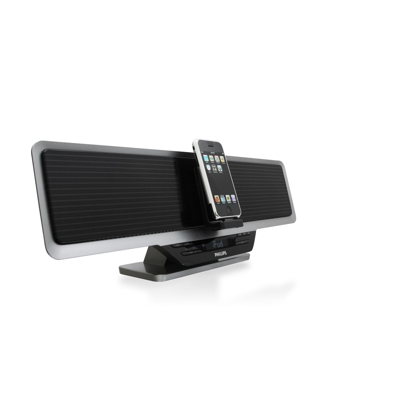 O acelerômetro do iPod touch altera automaticamente o modo de exibição do conteúdo. Se você mudá-lo da posição de retrato para paisagem ou vice-versa, o conteúdo exibido será alterado. A dock integrada para iPod do sistema Philips foi especialmente projetada de acordo com esse recurso — você pode alterar a posição do display da dock para visualizar com total praticidade páginas da Web, fotos ou videoclipes na proporção de imagem adequada à tela do iPod touch.