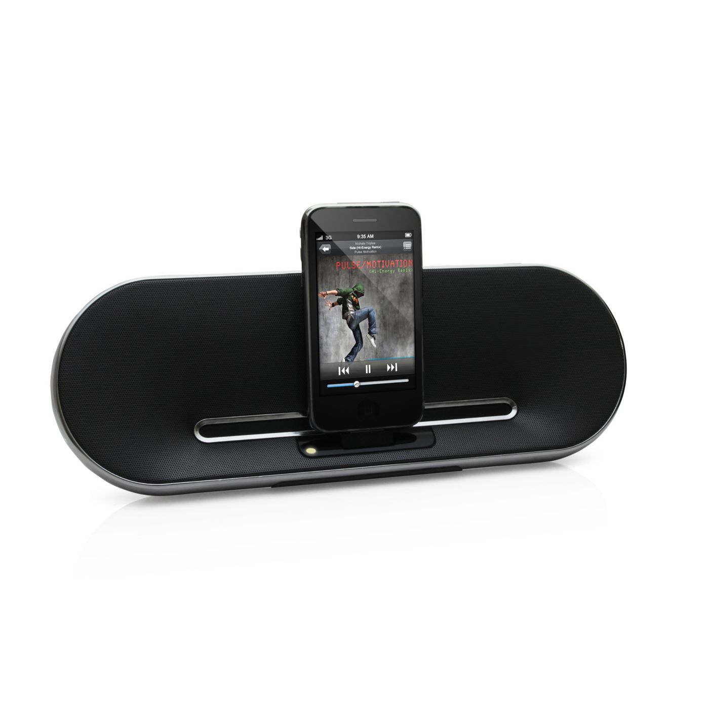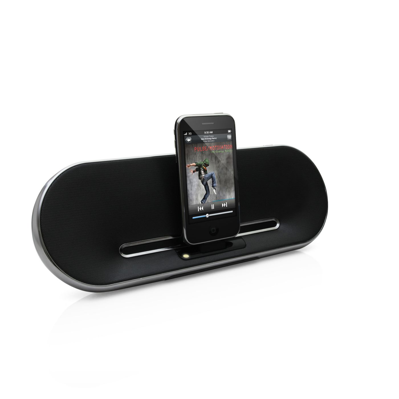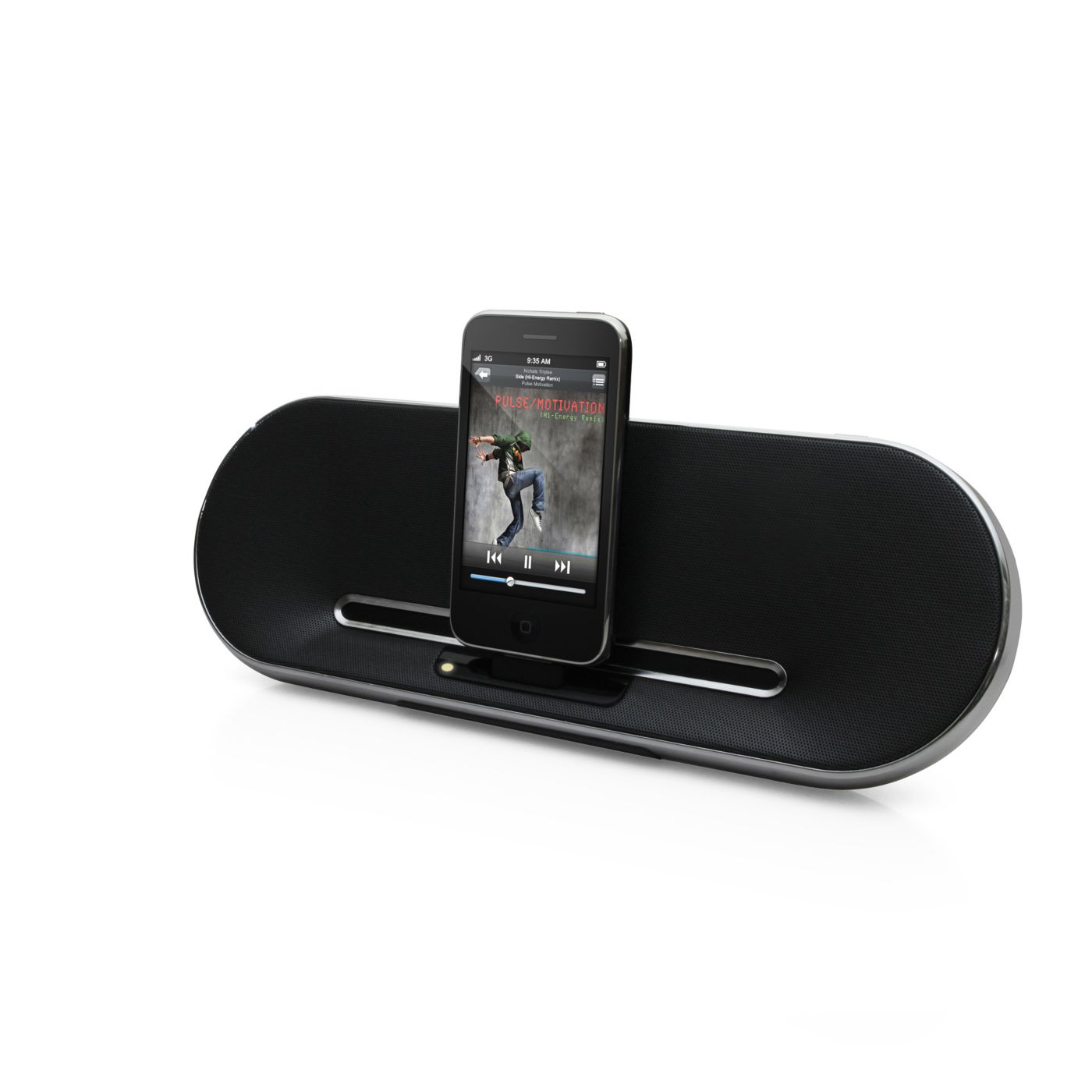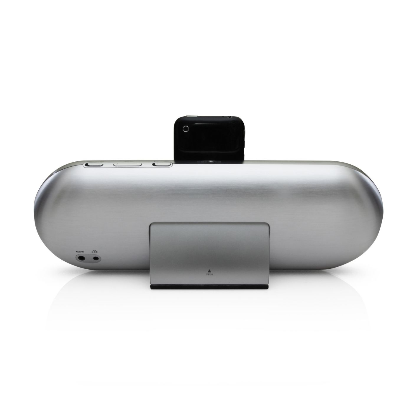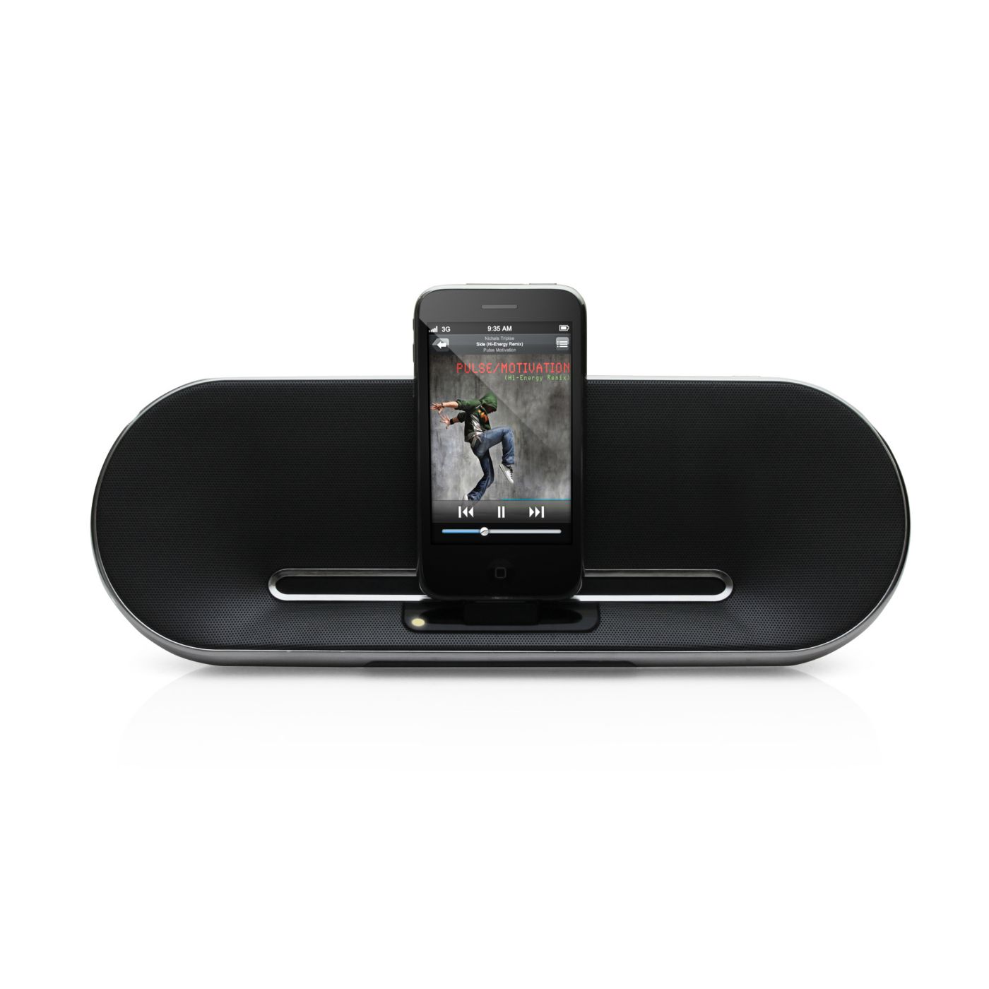 O design inteligente da porta retrátil do dock acomoda facilmente qualquer iPod ou iPhone sem a necessidade de adaptadores especiais. Além disso, ele pode ser usado com a maioria dos estojos de proteção — basta acoplar diretamente seu iPod ou iPhone e curtir suas músicas sem a menor complicação.