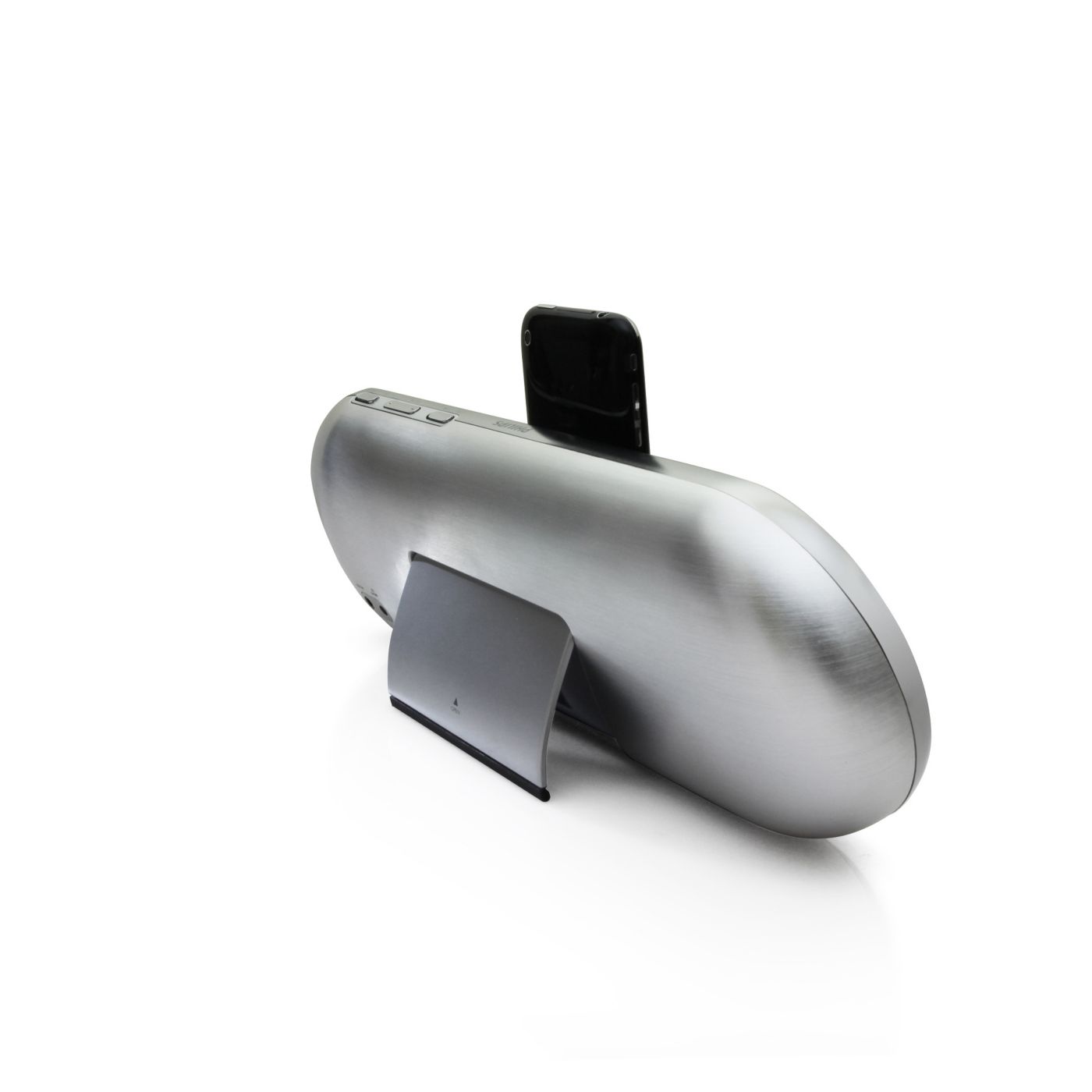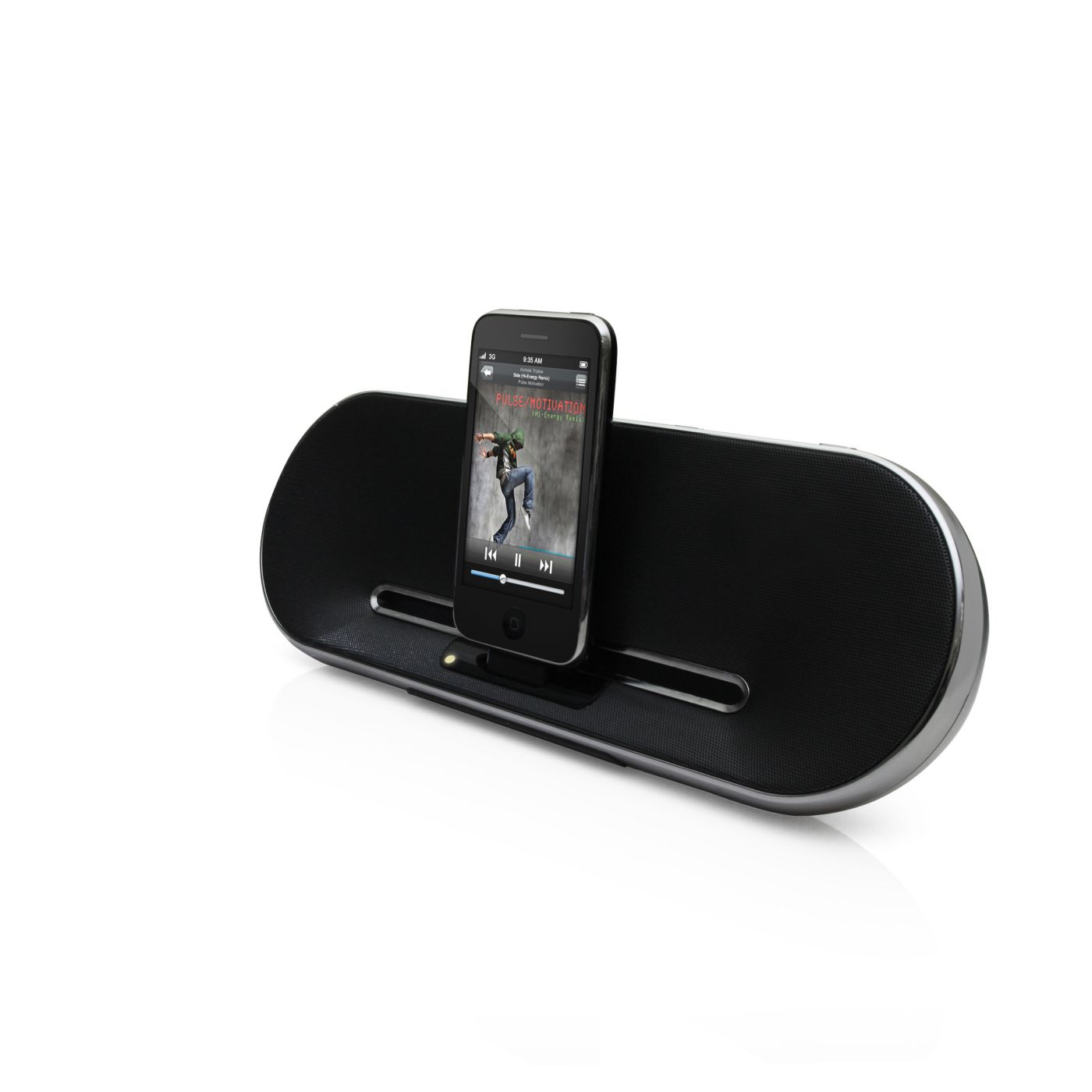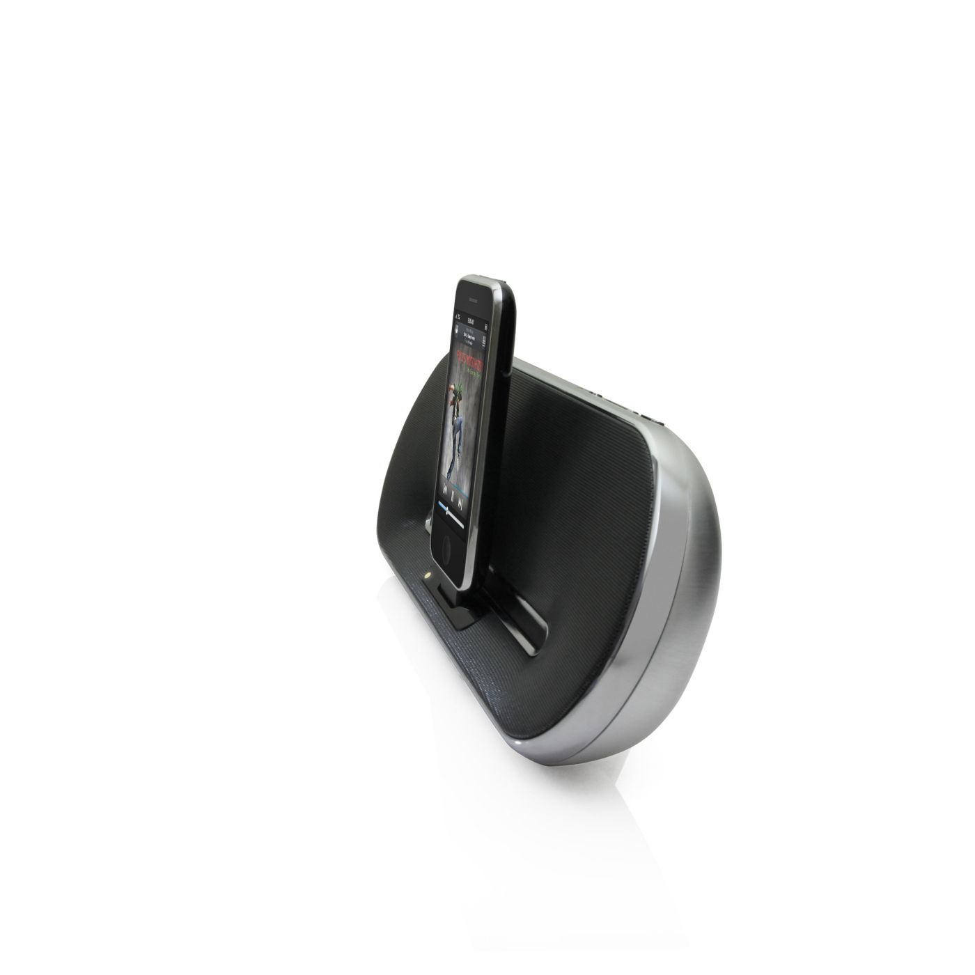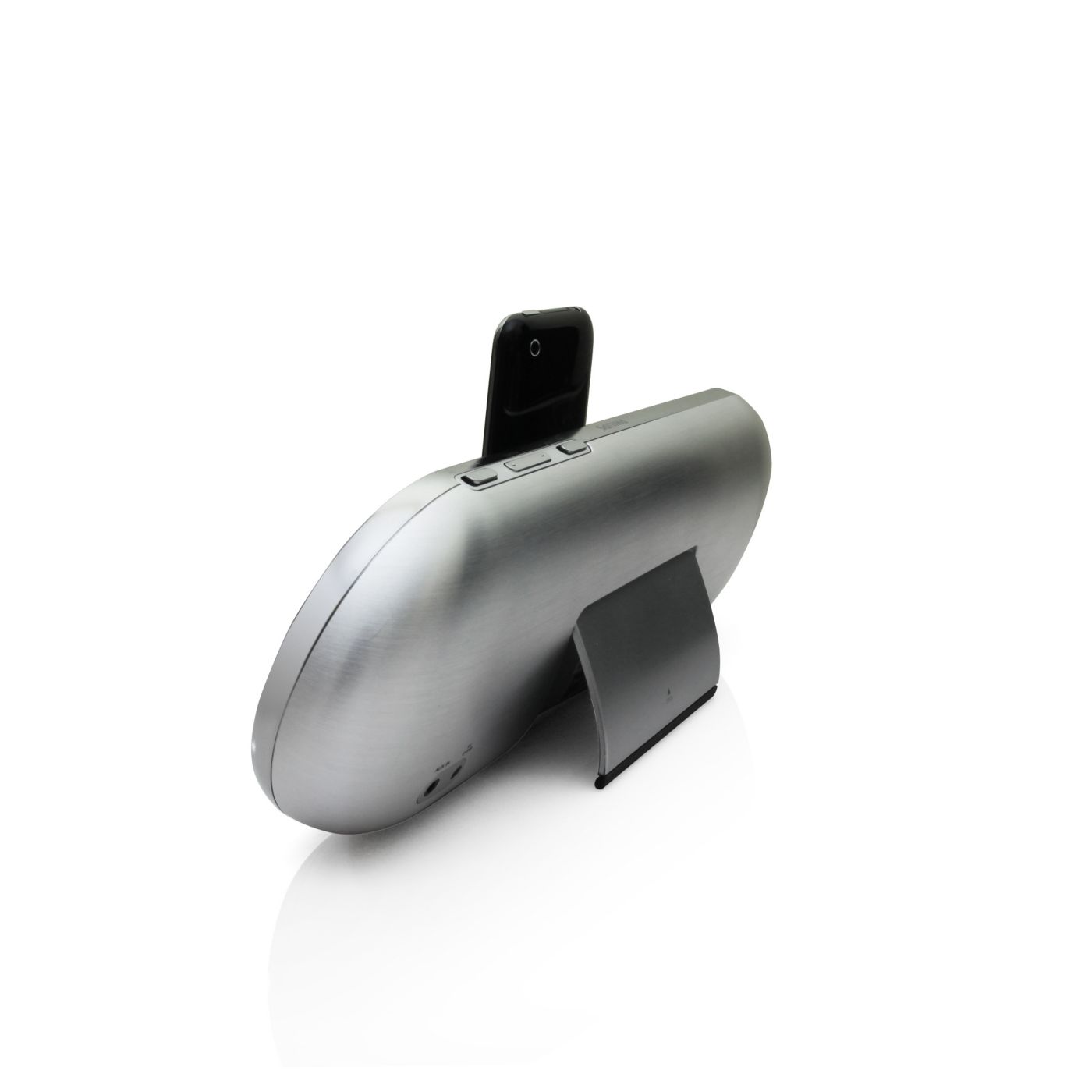 O design inteligente da porta retrátil do dock acomoda facilmente qualquer iPod ou iPhone sem a necessidade de adaptadores especiais. Além disso, ele pode ser usado com a maioria dos estojos de proteção — basta acoplar diretamente seu iPod ou iPhone e curtir suas músicas sem a menor complicação.