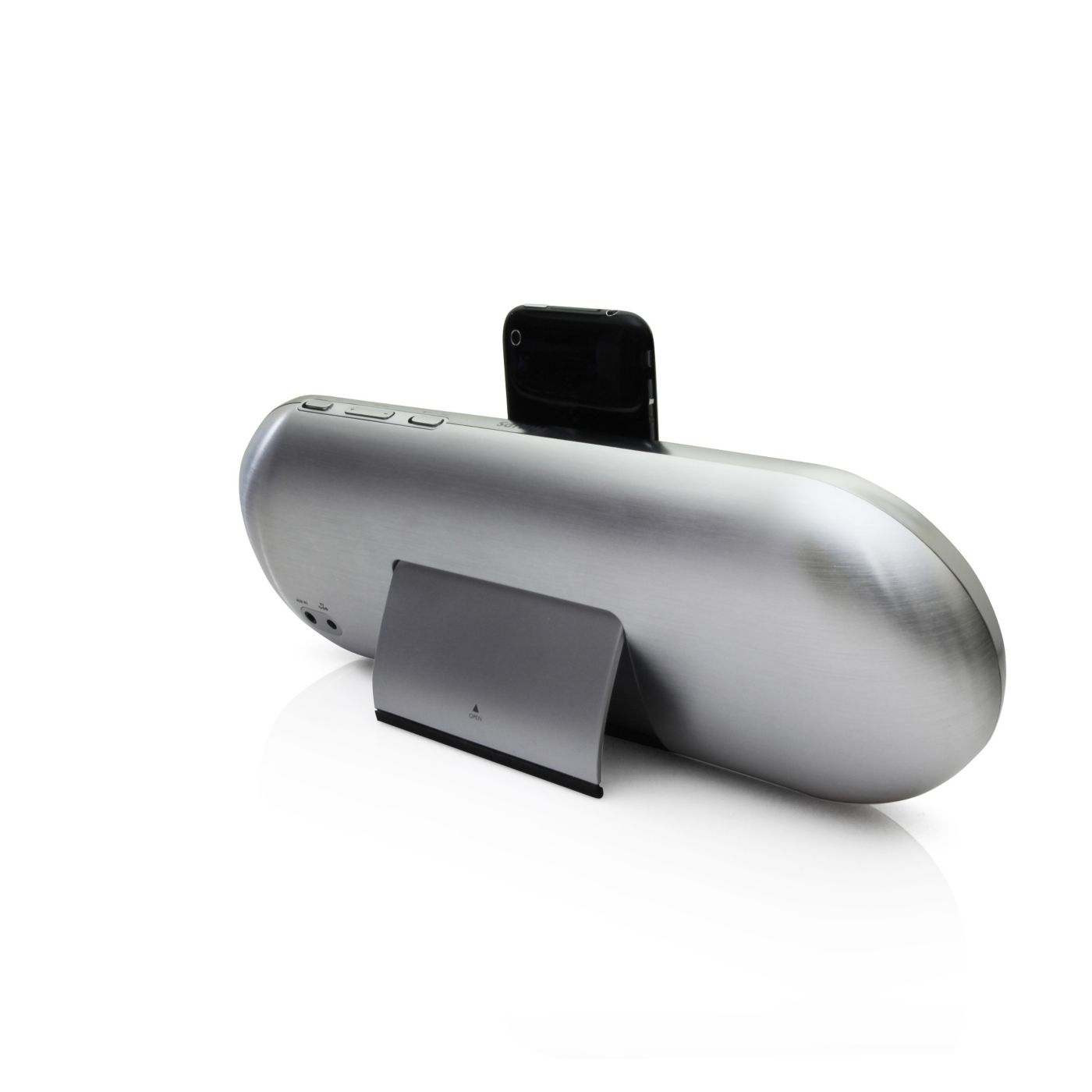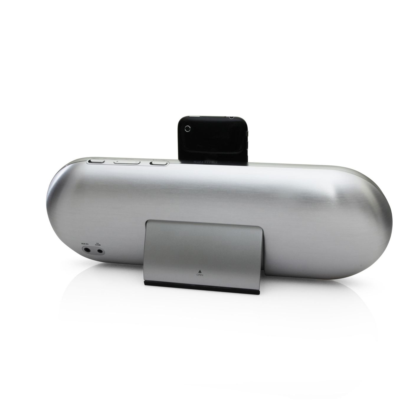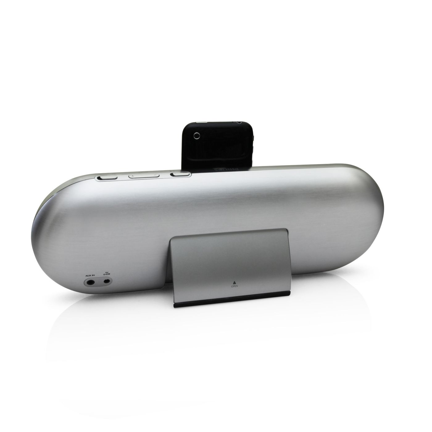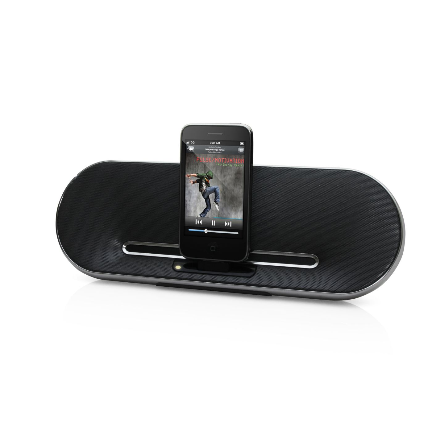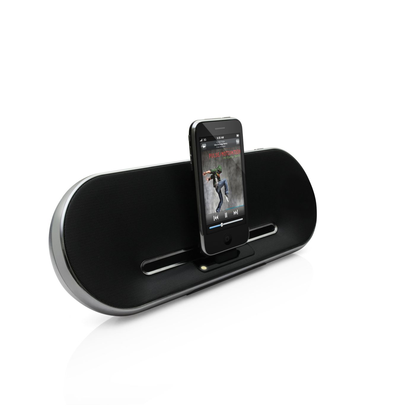 O design inteligente da porta retrátil do dock acomoda facilmente qualquer iPod ou iPhone sem a necessidade de adaptadores especiais. Além disso, ele pode ser usado com a maioria dos estojos de proteção — basta acoplar diretamente seu iPod ou iPhone e curtir suas músicas sem a menor complicação.