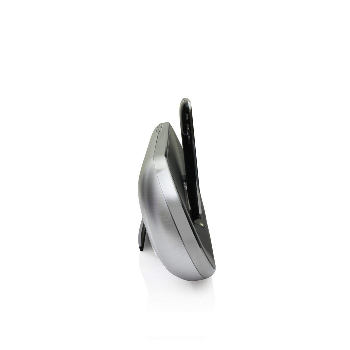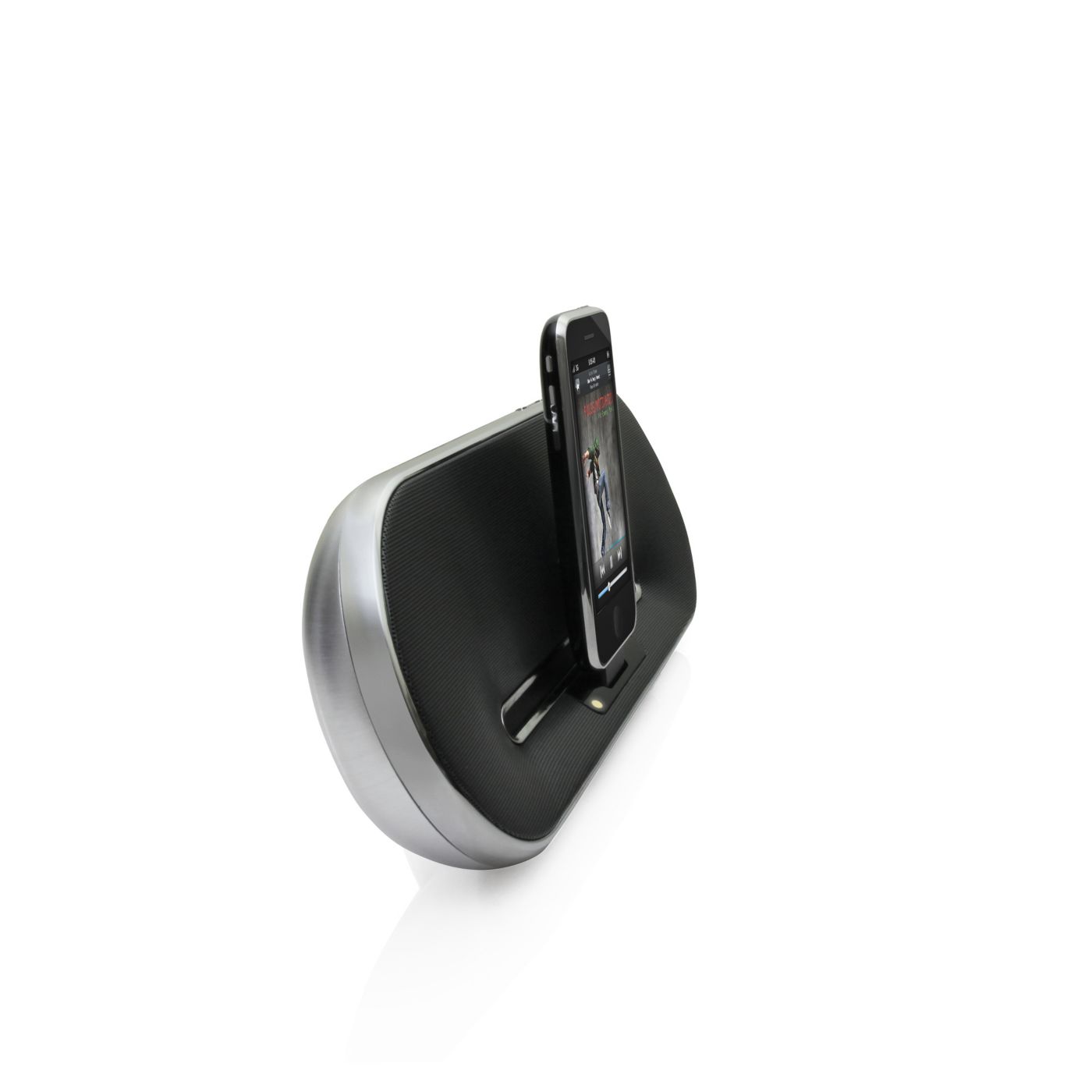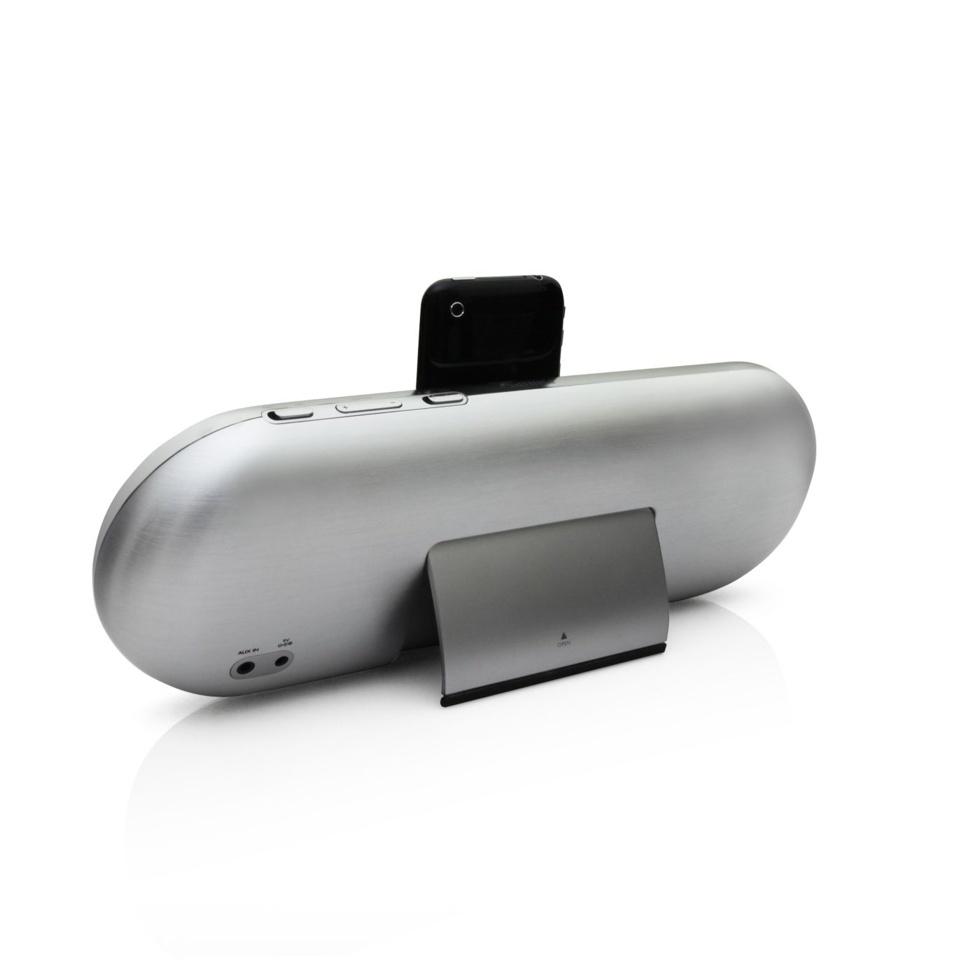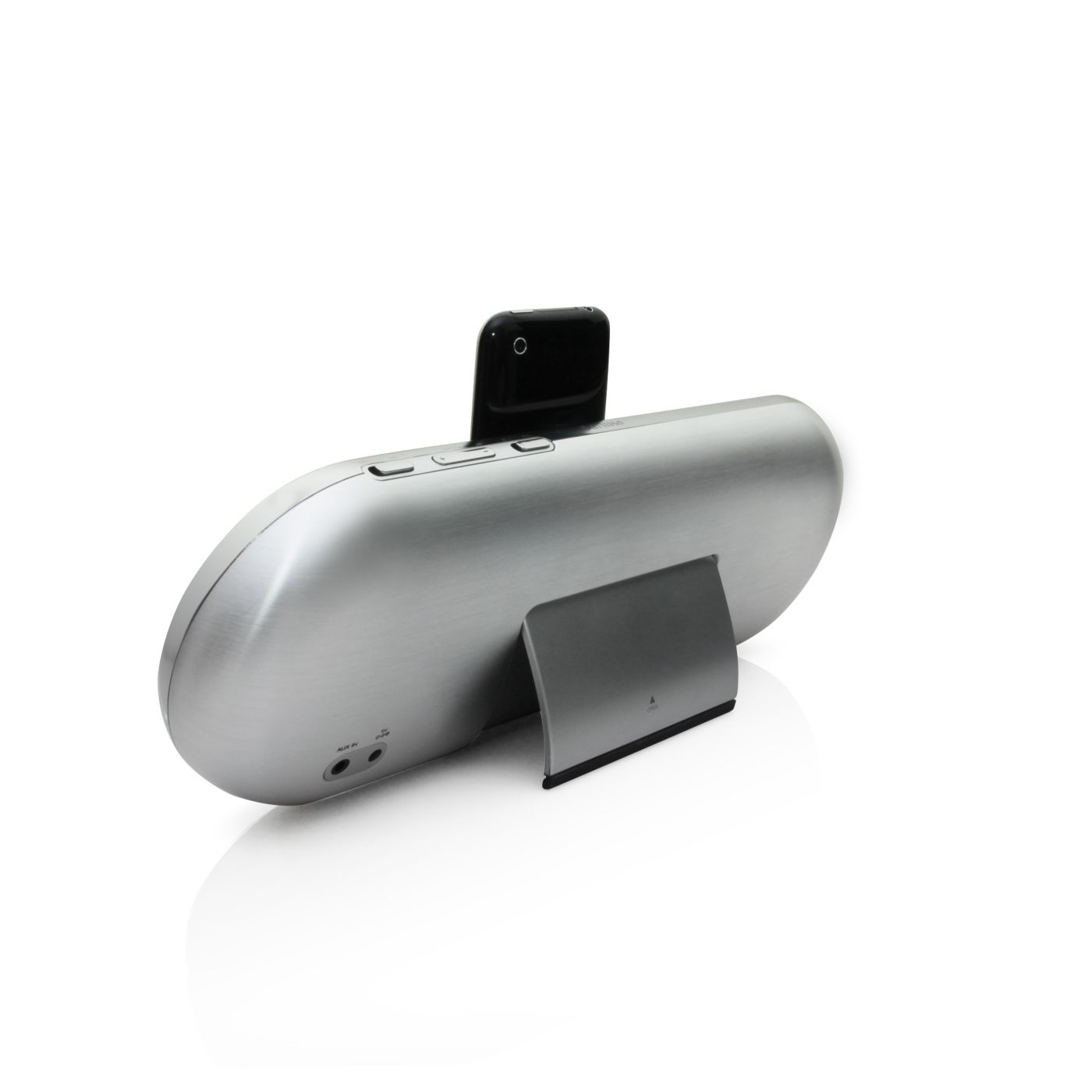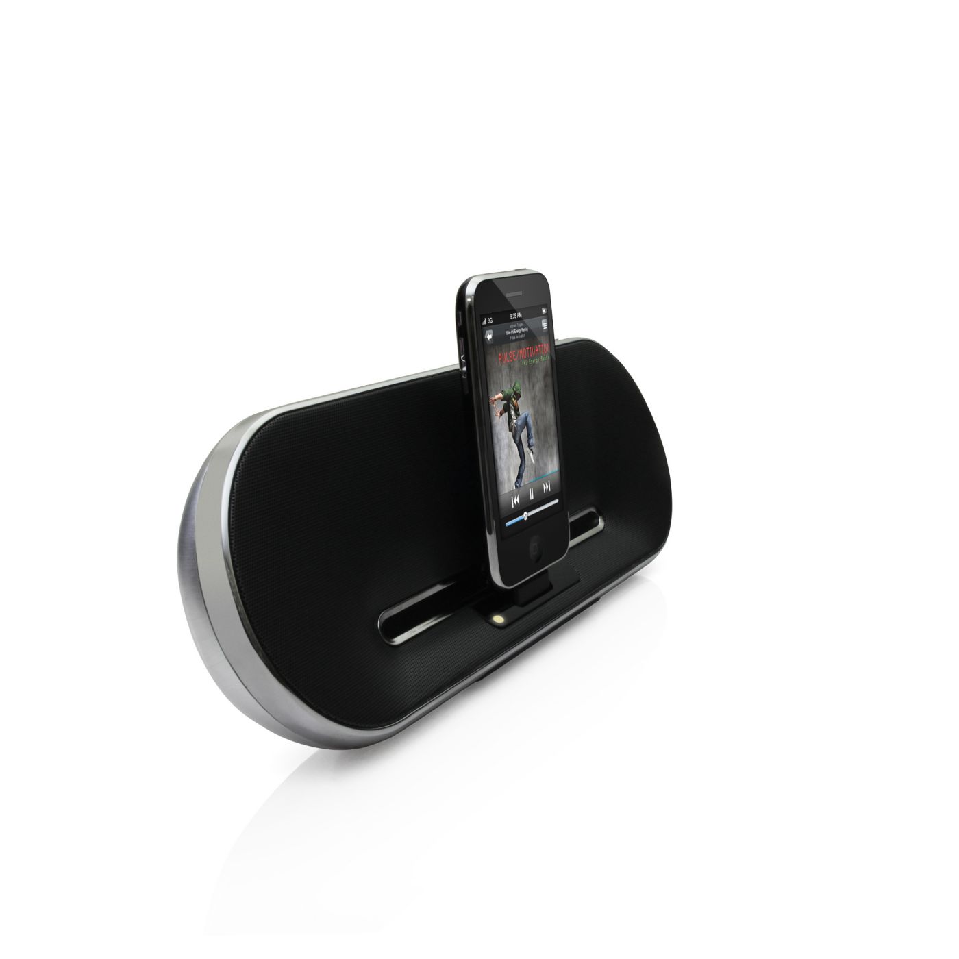 O design inteligente da porta retrátil do dock acomoda facilmente qualquer iPod ou iPhone sem a necessidade de adaptadores especiais. Além disso, ele pode ser usado com a maioria dos estojos de proteção — basta acoplar diretamente seu iPod ou iPhone e curtir suas músicas sem a menor complicação.