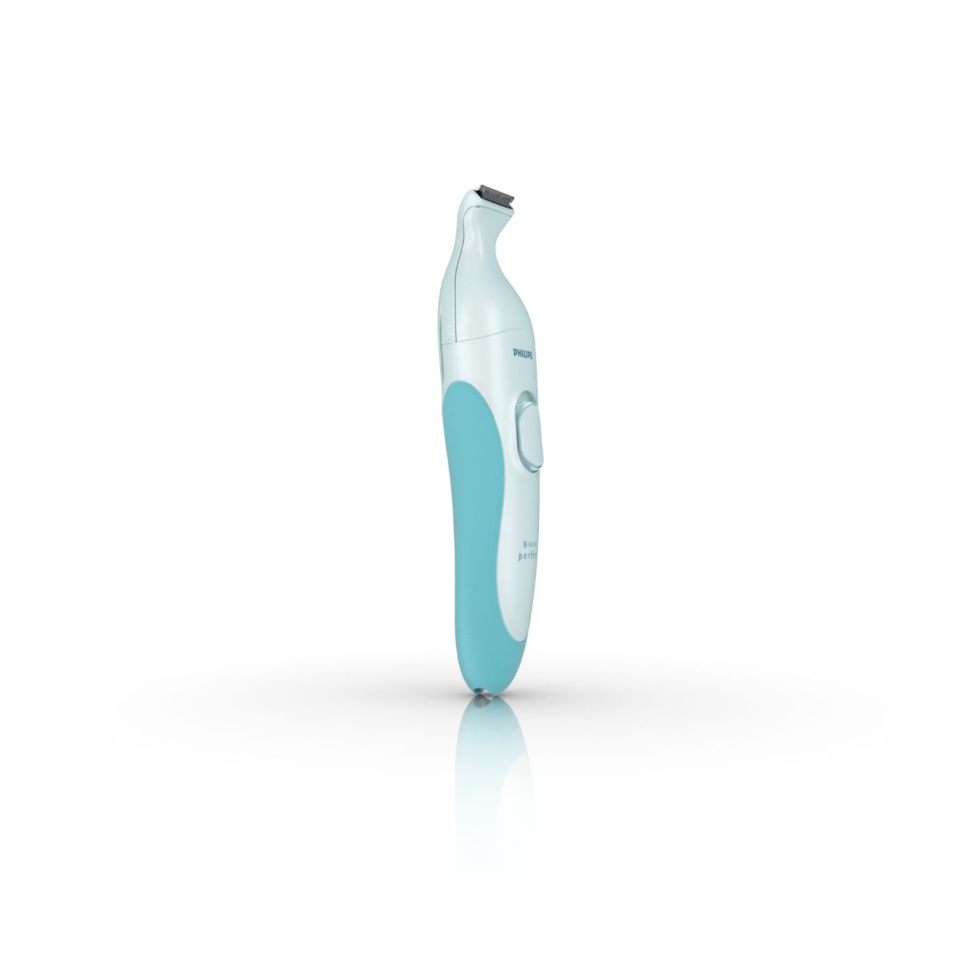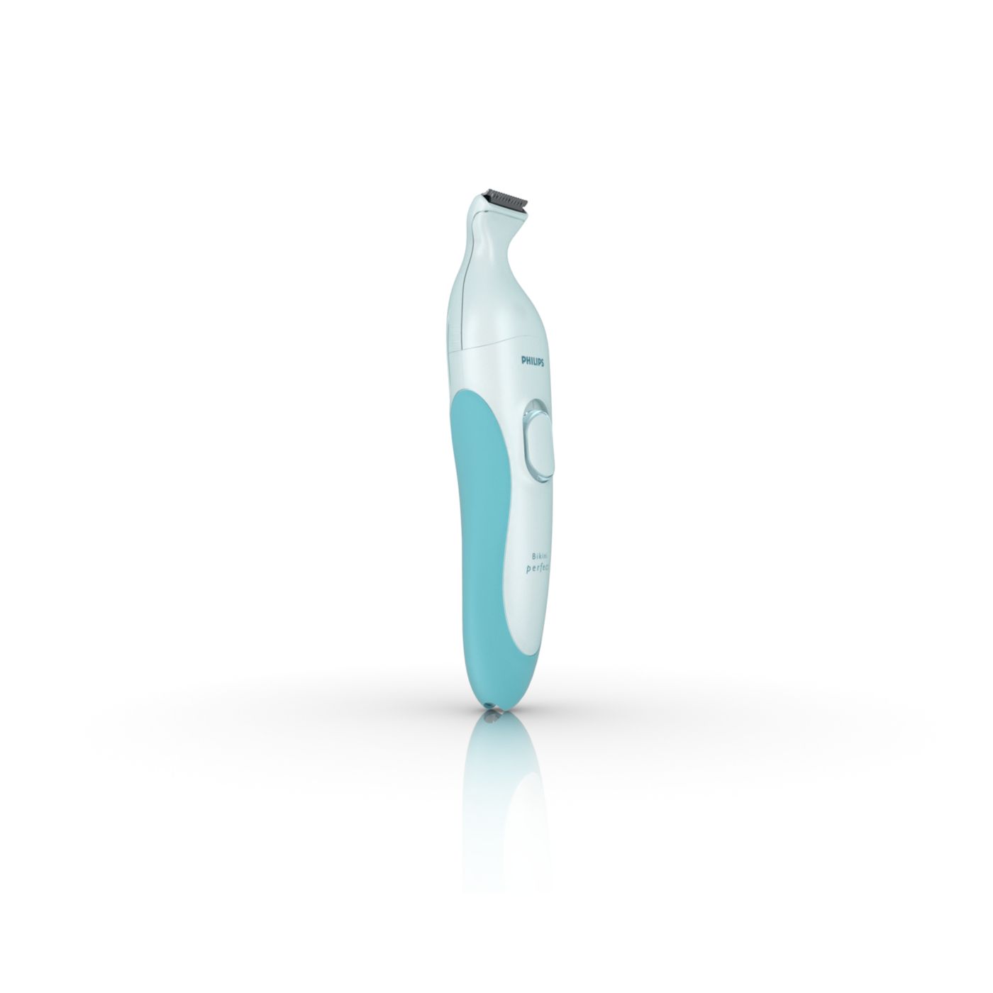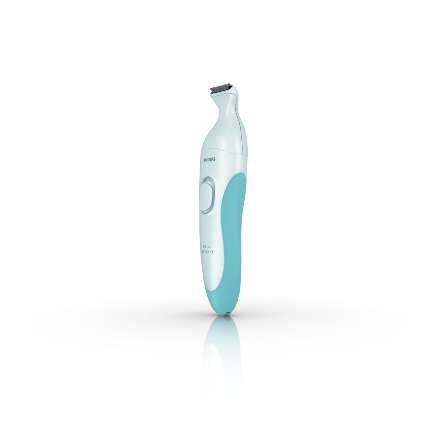Pente para aparar de maneira higiênica: cinco ajustes de altura dos pelos (2 a 10 mm) para você modelar a linha do biquíni com toda criatividade.