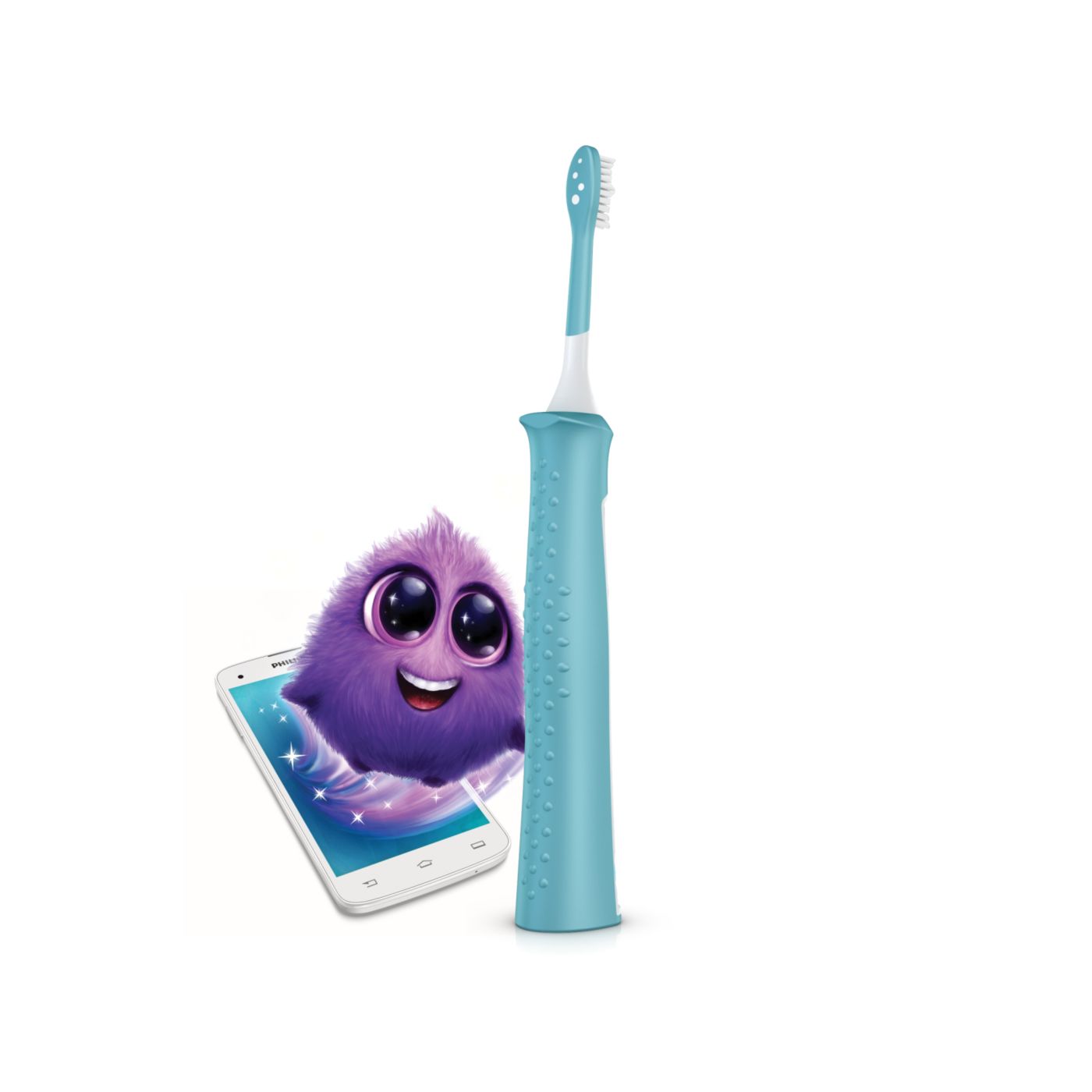 A diversão começa junto com a escovação. As crianças que usam Sonicare podem ganhar recompensas alimentares saudáveis para alimentar o Sparkly, que as incentivará a escovar por mais tempo e melhor.