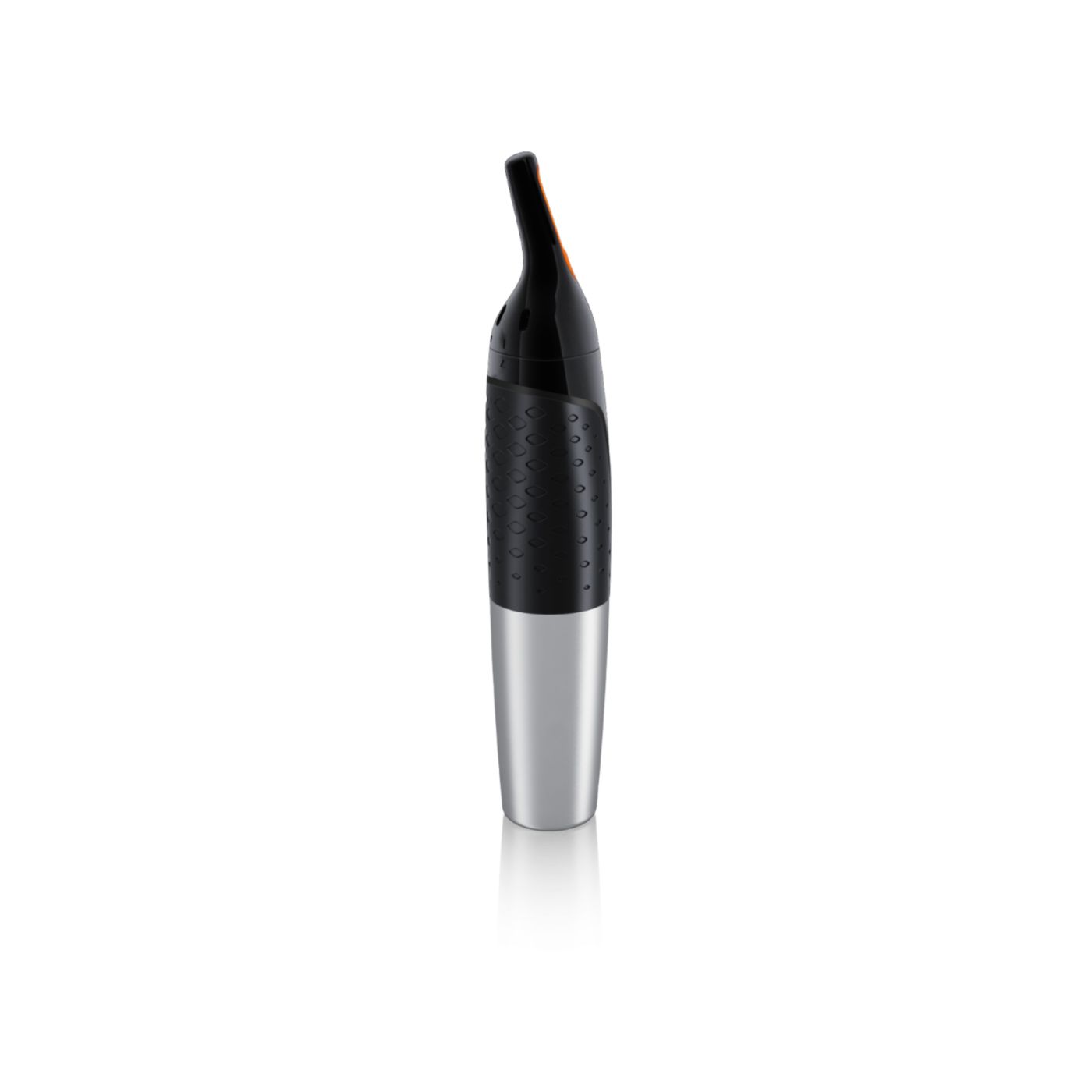 O aparador de pelos do nariz da Philips foi desenvolvido com angulação perfeita para alcançar facilmente os pelos dos ouvidos, do nariz e das sobrancelhas. Com o aparador de pelos do nariz da Philips Norelco, pode ter certeza de que todos os pelos indesejados serão removidos com eficiência.