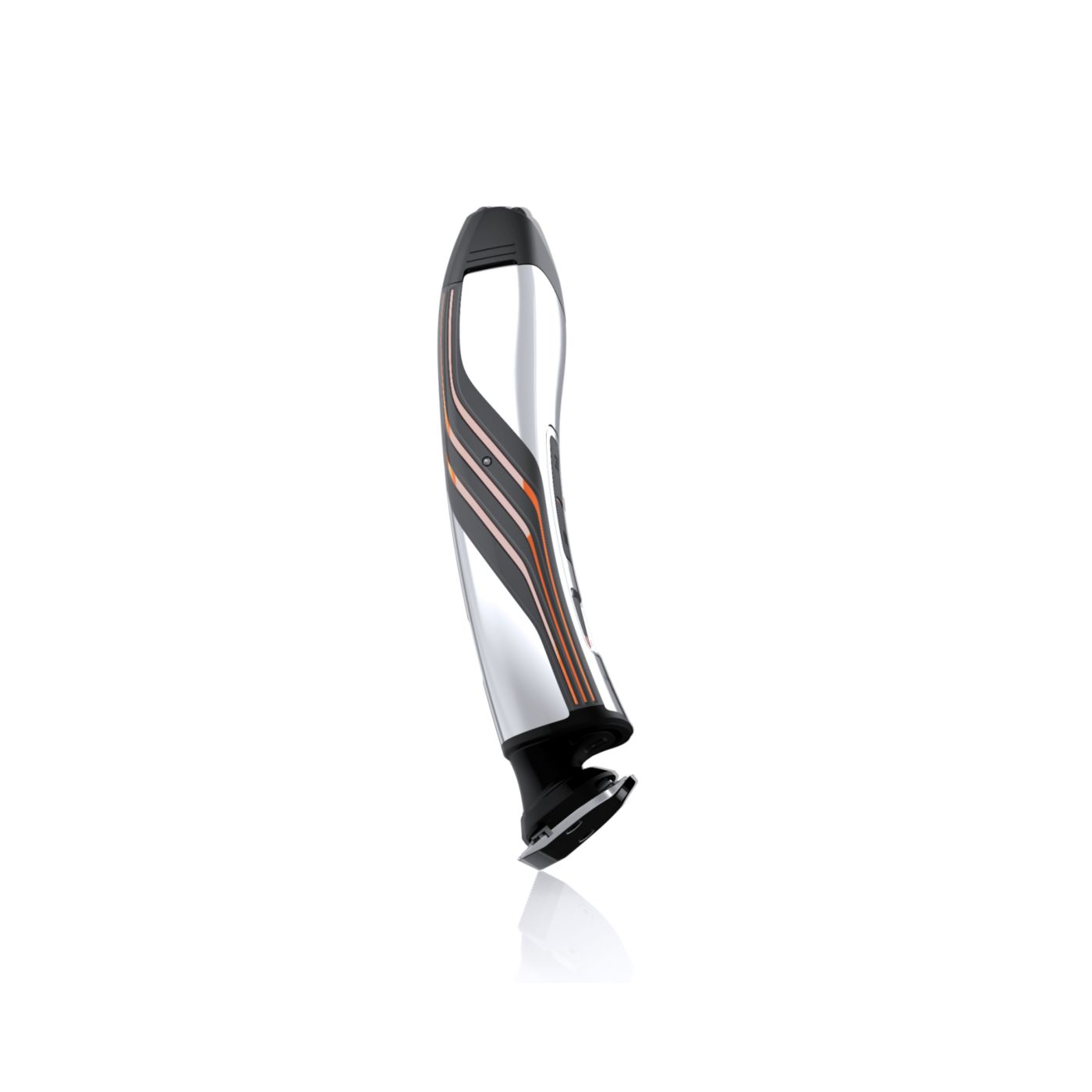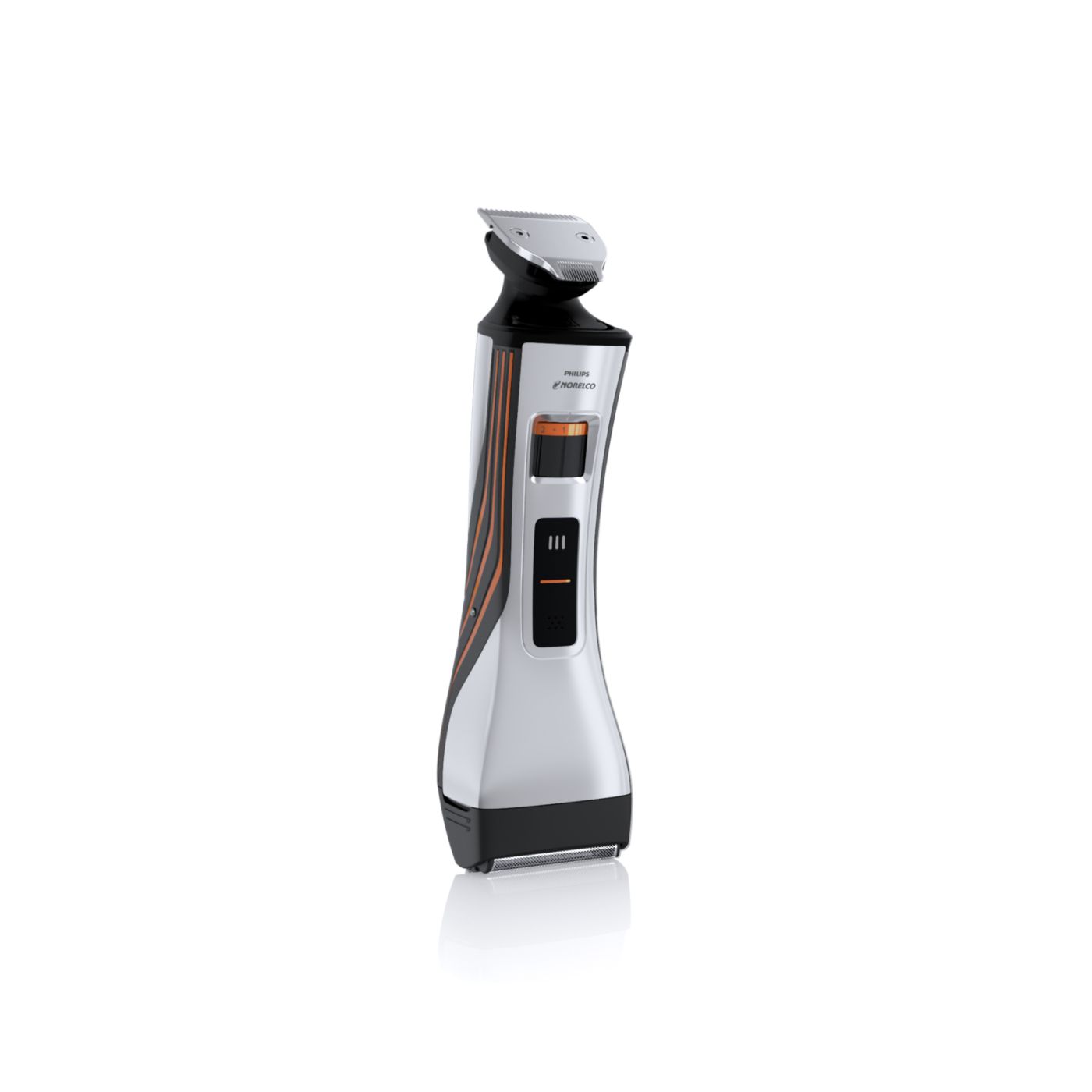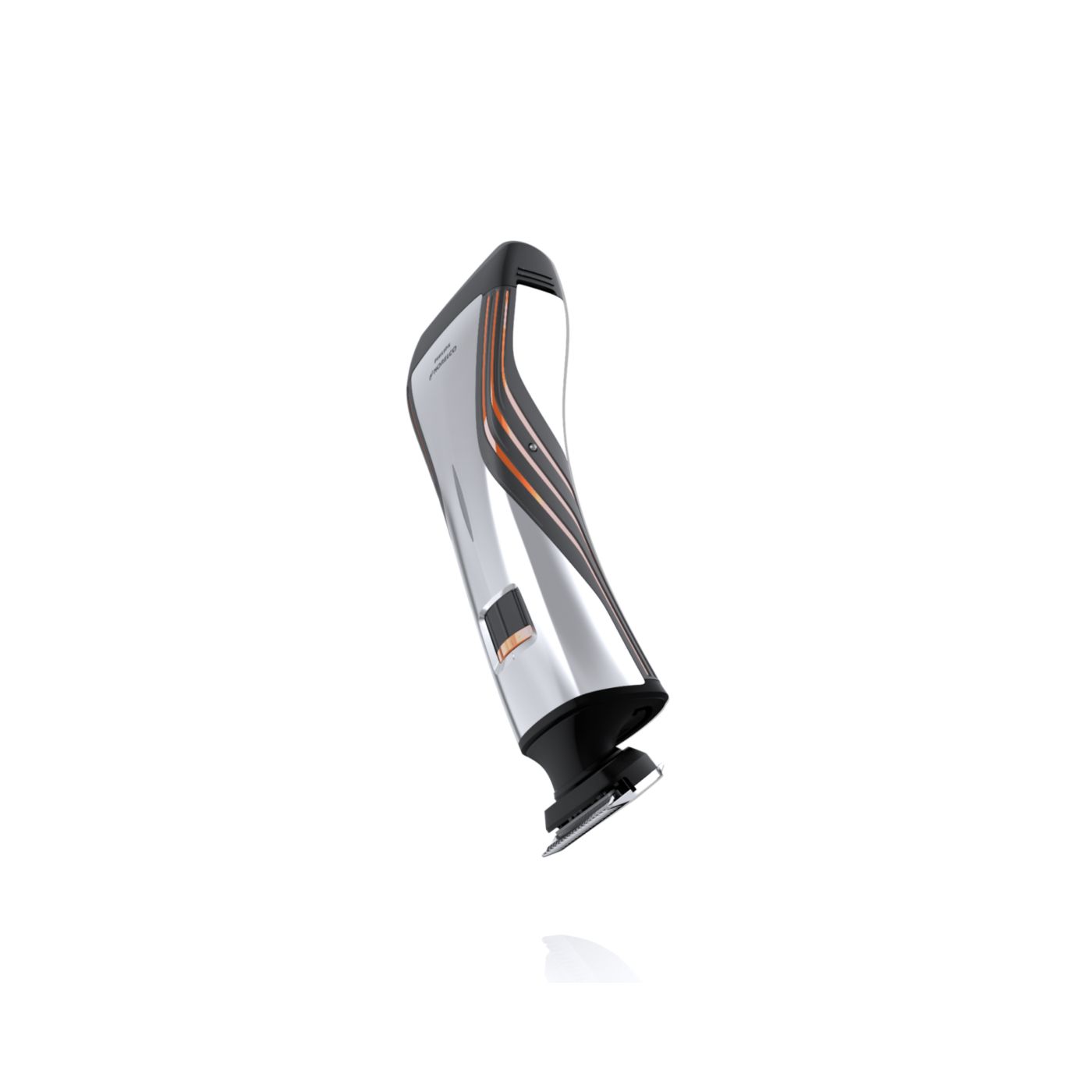 A lâmina dupla facilita a aparagem de pelos ao redor da barba e até mesmo no pescoço. O aparador mediano remove os pelos maiores e mais espessos, e as duas lâminas flutuantes removem suavemente todo o resto.