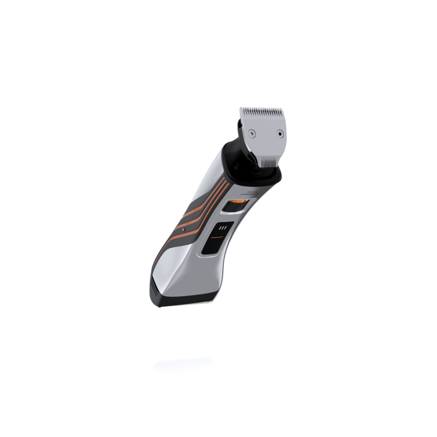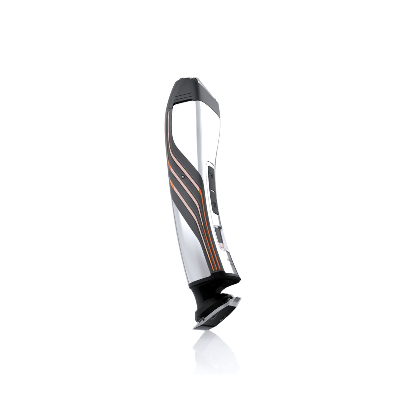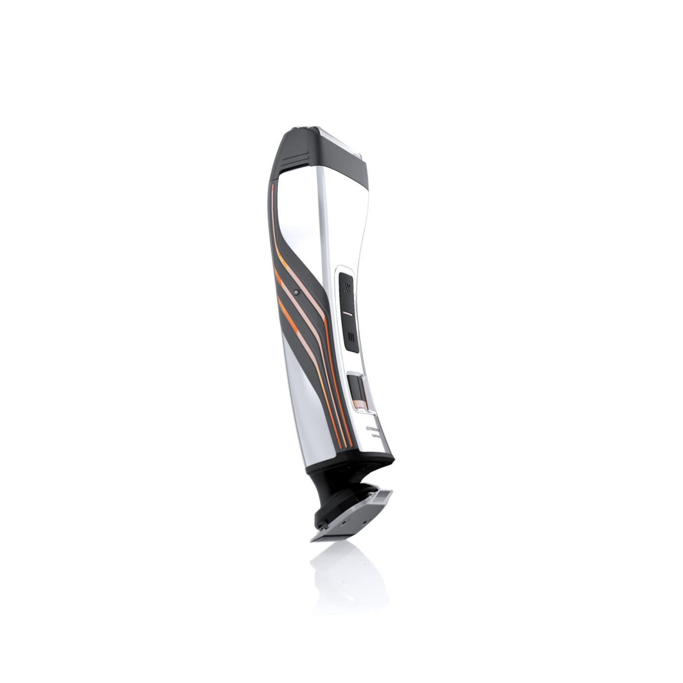 Retire o pente de comprimento ajustável para usá-lo como aparador de precisão reversível duplo. De um lado, há o aparador de alto desempenho de 32mm. Gire-o para usá-lo como aparador de precisão de 15mm, perfeito para áreas pequenas, como sob o nariz ou em volta da boca. Desenvolvido para cortar muito rente e proteger sua pele, o tamanho compacto e o design angular facilitam a visão para que você crie linhas e detalhes finos.