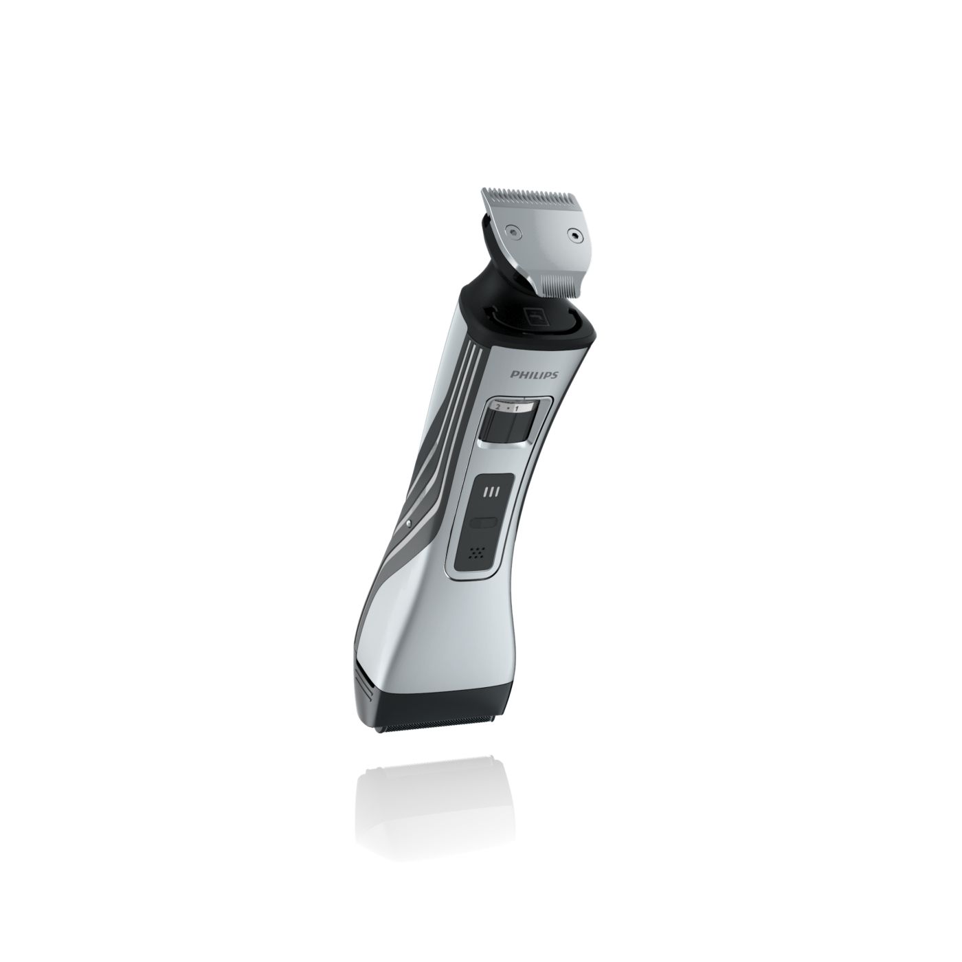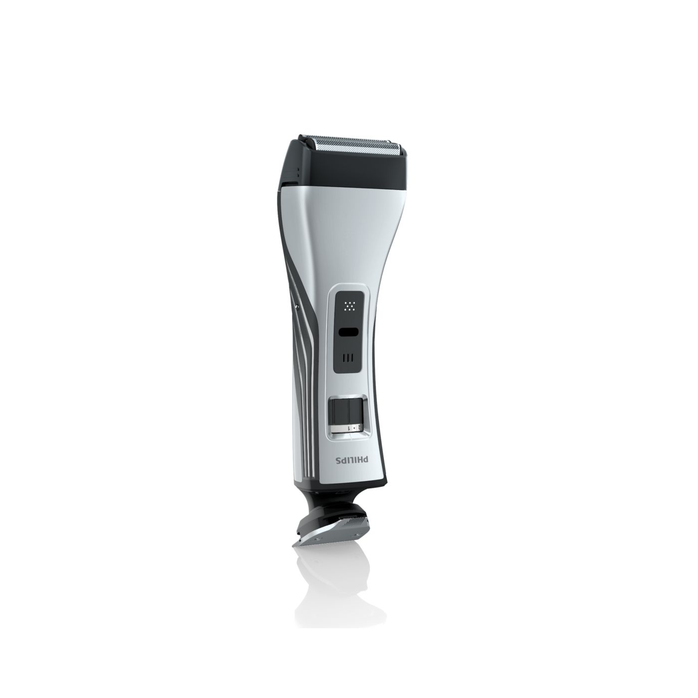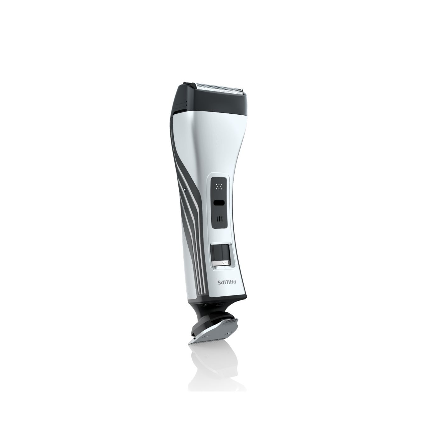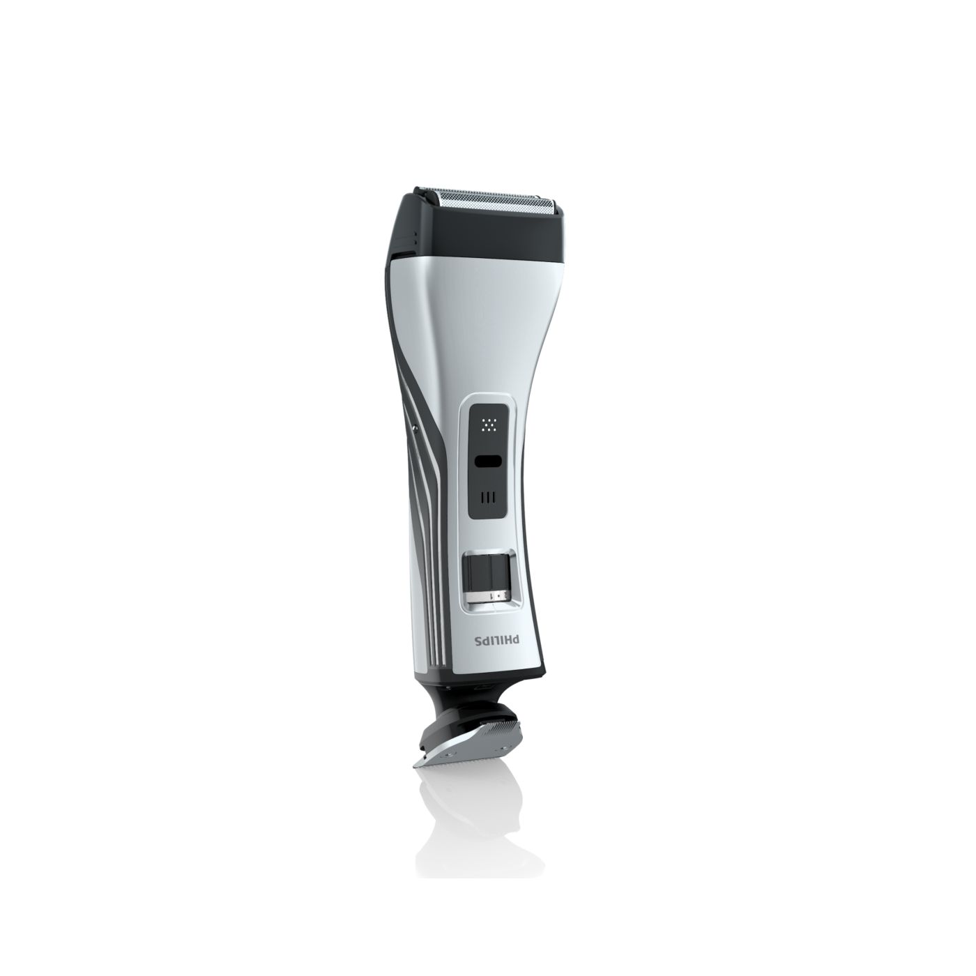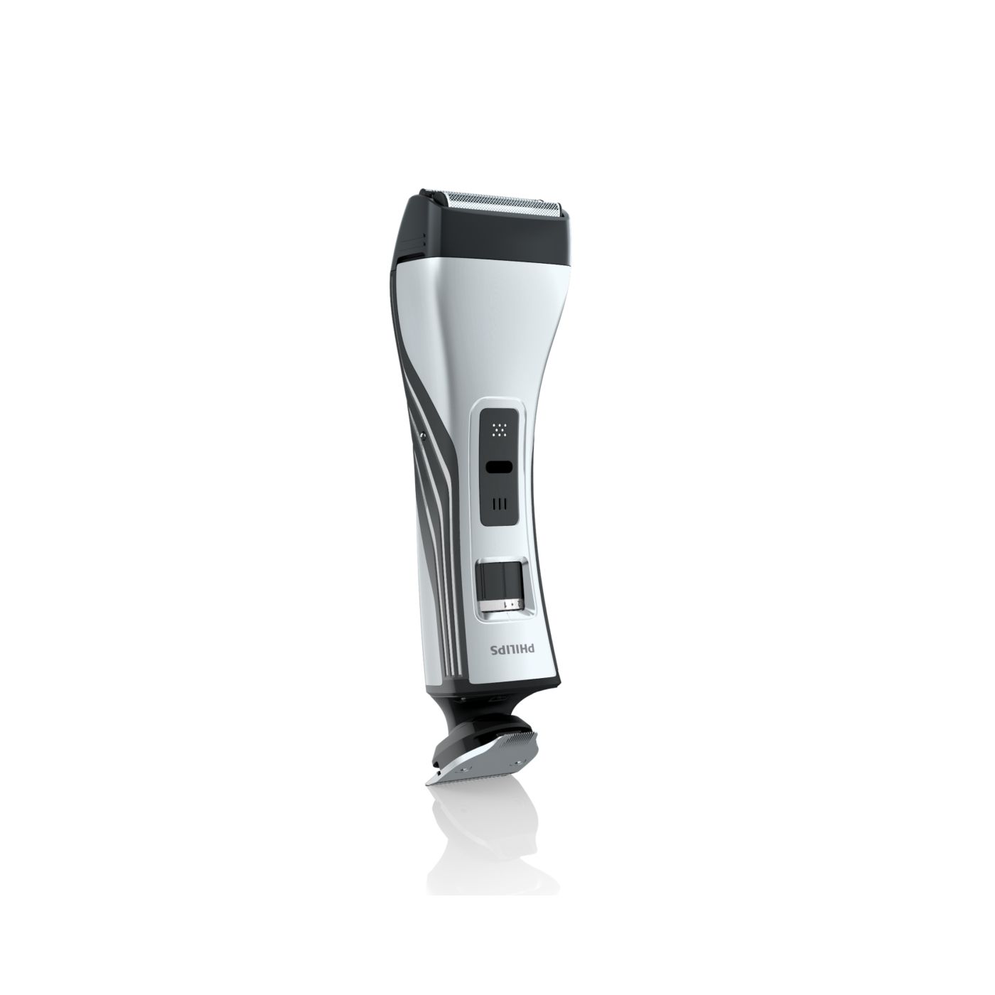 O aparador totalmente metálico (32 mm) e o pente com 12 ajustes de comprimento facilitam o barbear para que você possa obter exatamente o comprimento de barba desejado. Selecione o ajuste mais adequado usando o controle giratório. O aparador de metal resistente com bordas arredondadas garante uma aparagem precisa e uniforme.