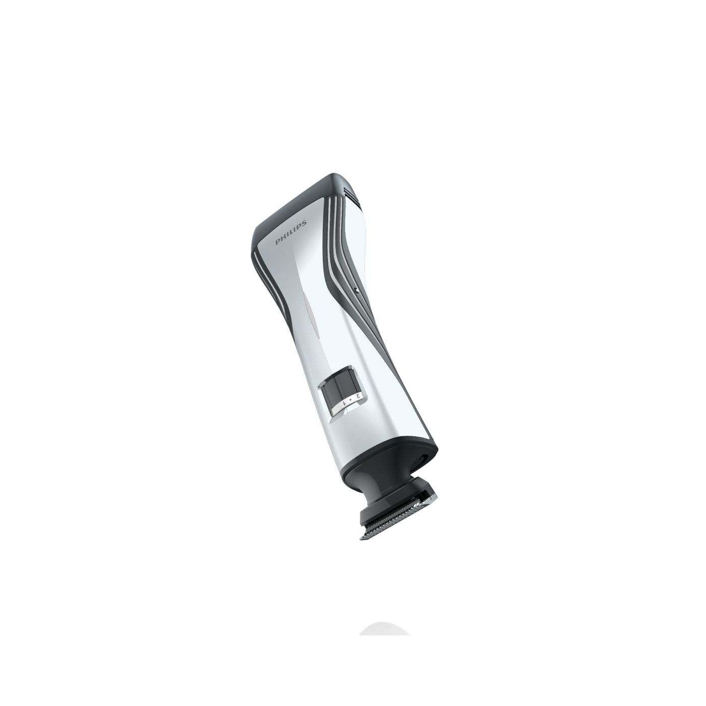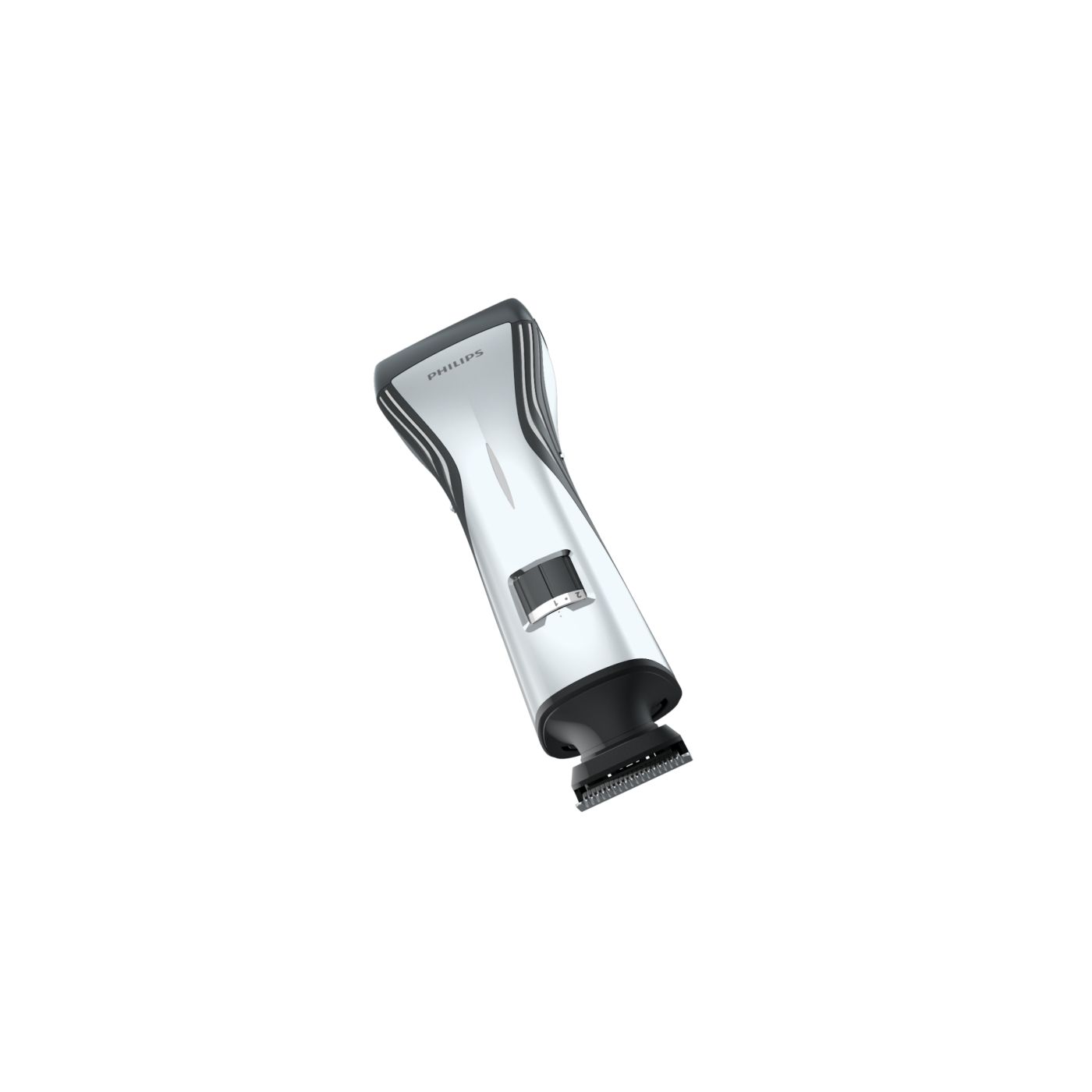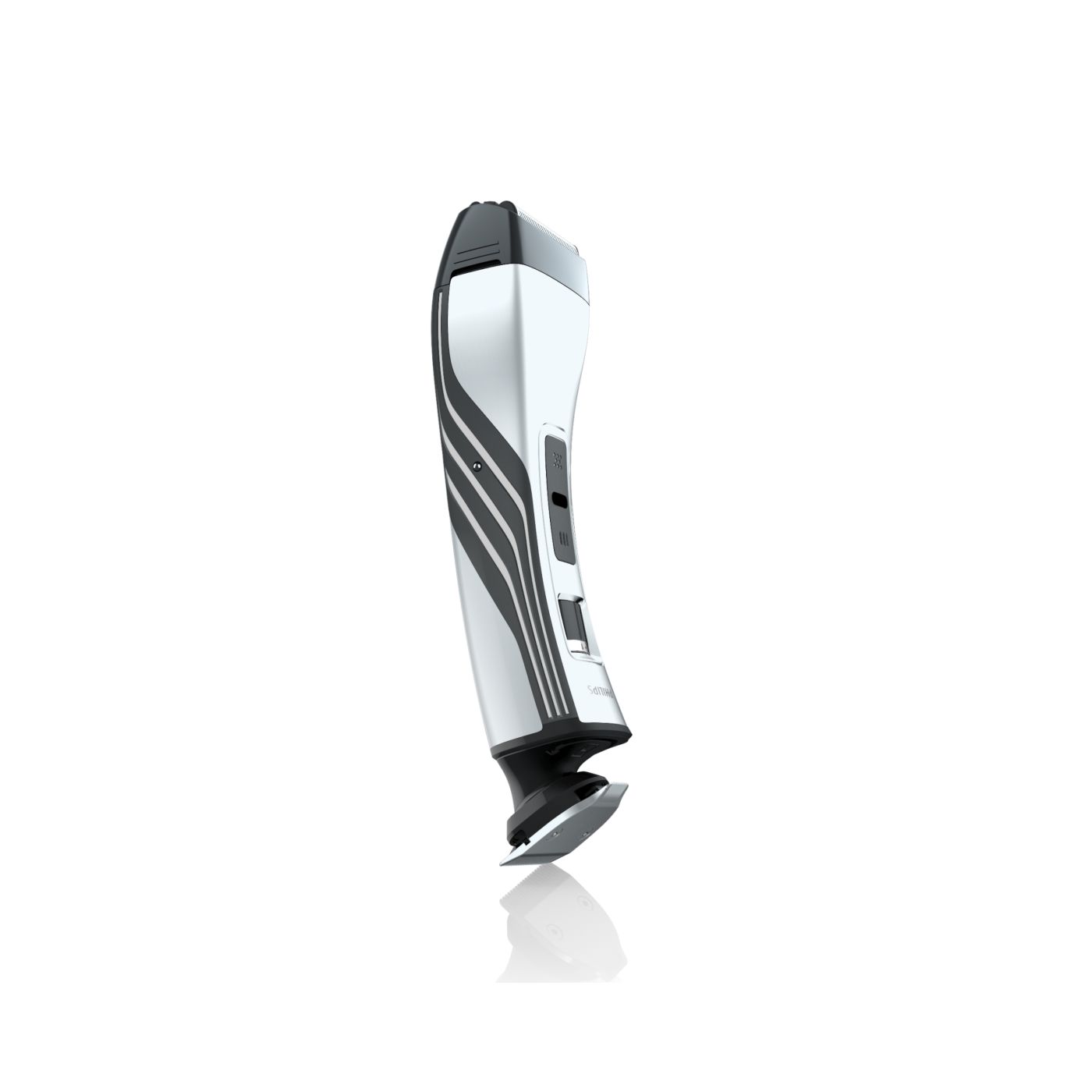 Ao remover o pente ajustável, você encontrará um aparador bilateral totalmente metálico na parte interna. Use o lado de 32 mm para obter uma aparagem mais eficaz e o lado de 15 mm para aparar com precisão os pequenos detalhes em áreas difíceis de alcançar. As extremidades arredondadas garantem contato suave com a pele. As afiadas lâminas de corte proporcionam aparagem rente à pele, ideal para pequenos detalhes ou áreas como a região do bigode e ao redor da boca.