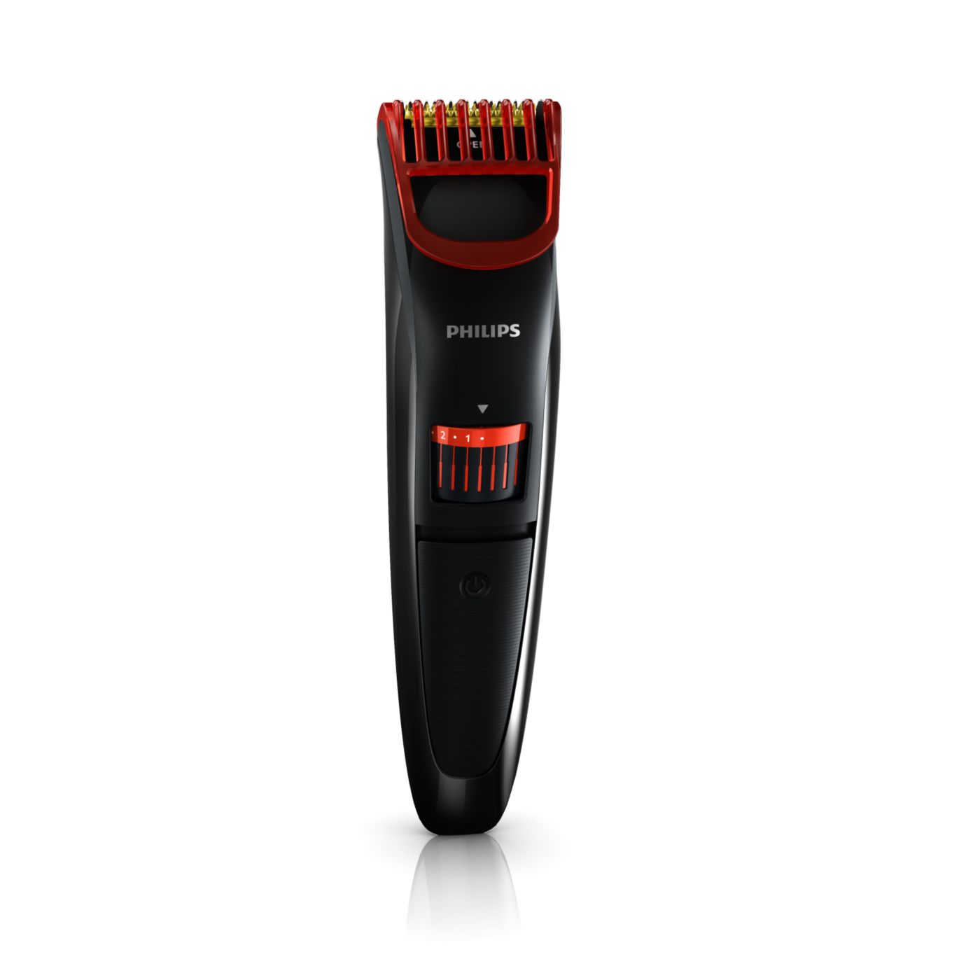Gire o botão para selecionar os ajustes de altura desejados: de uma barba de 3 dias de 0,5mm a uma barba completa de 10mm, em etapas precisas de 0,5mm.