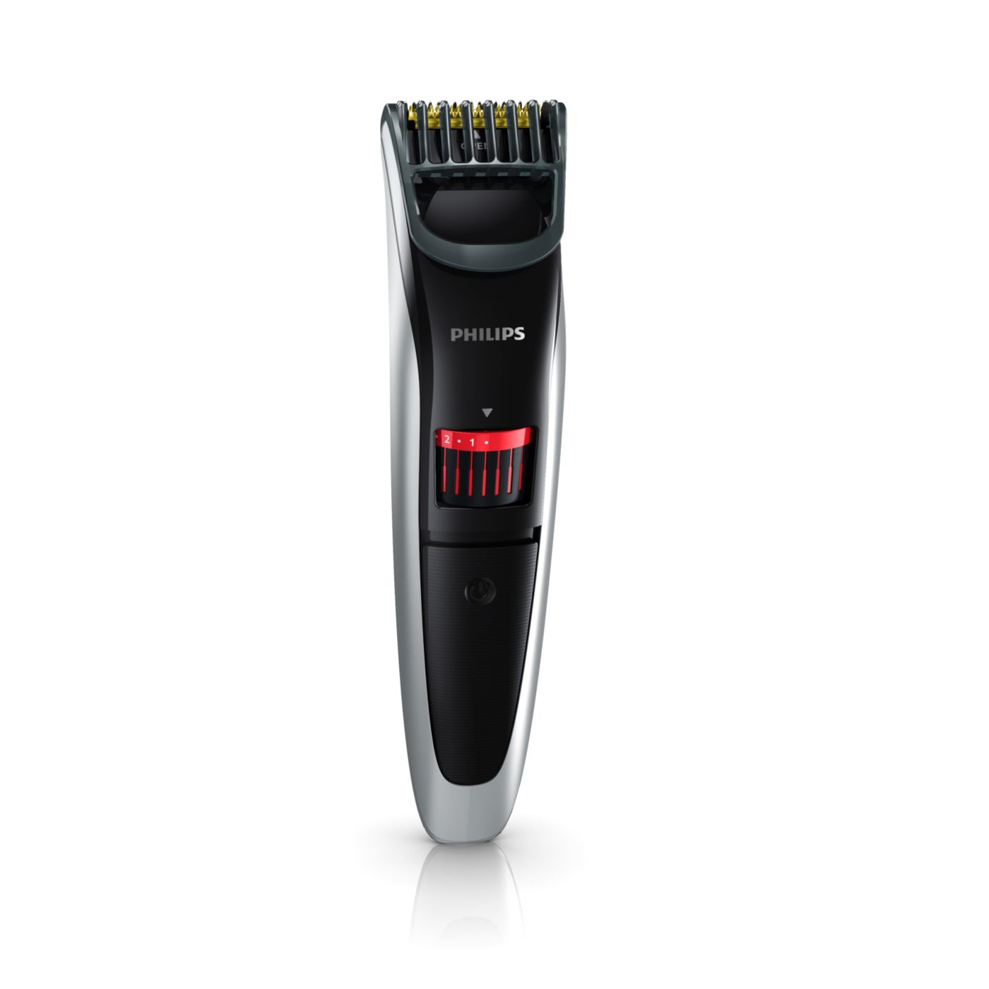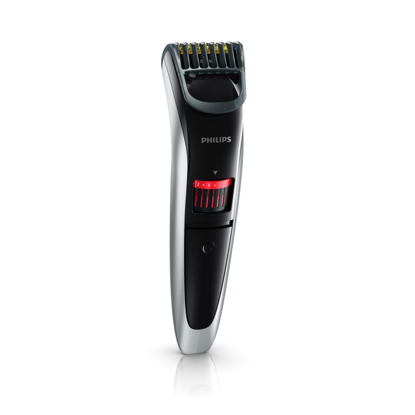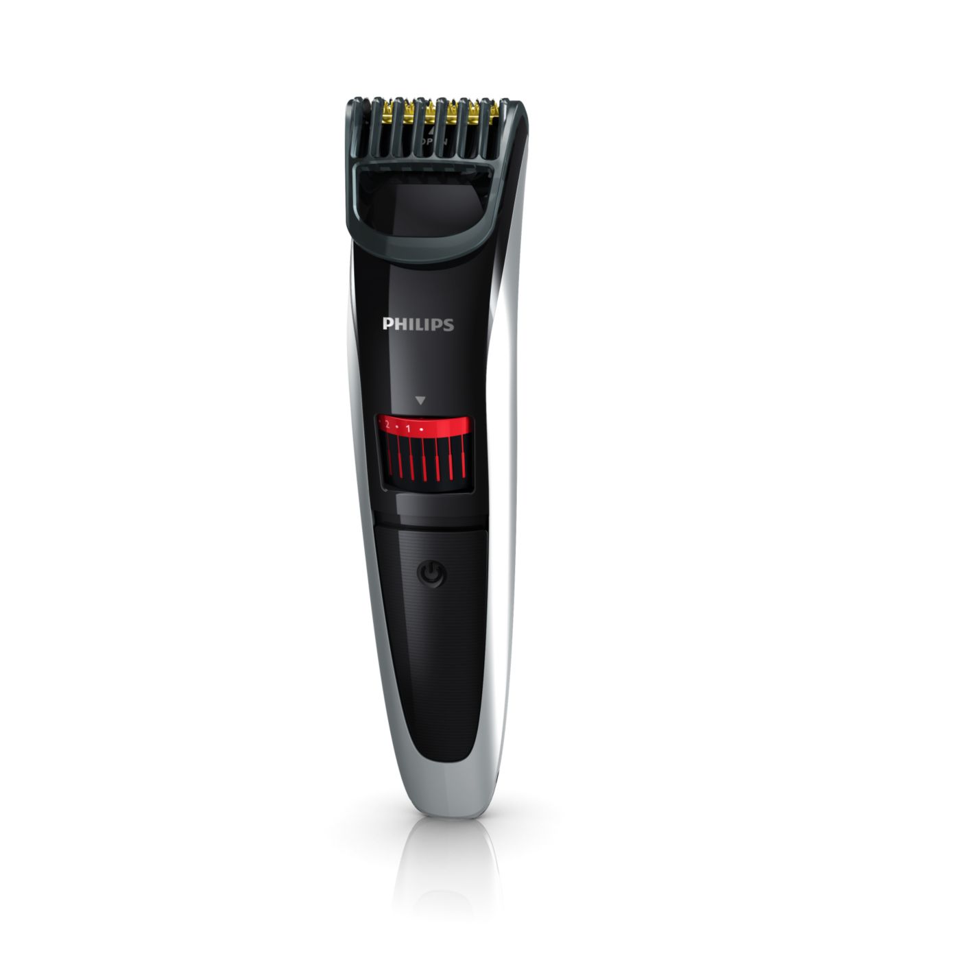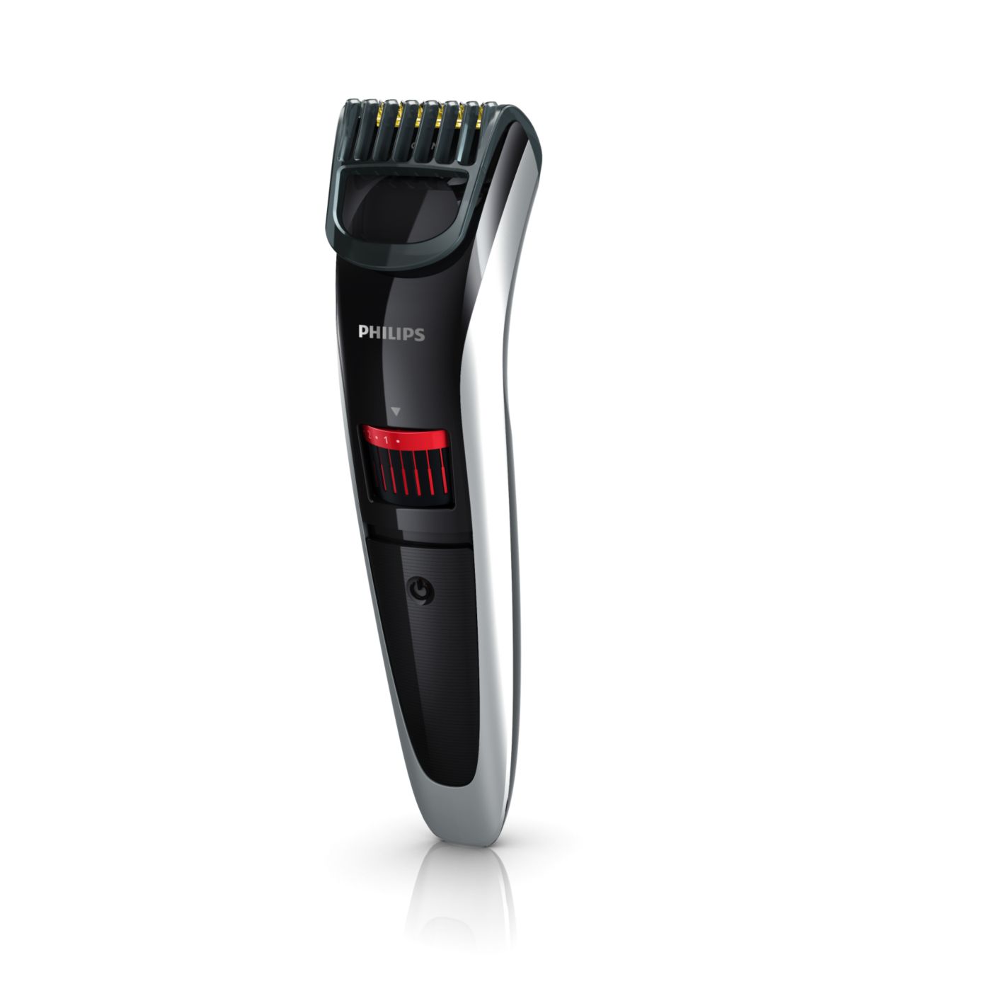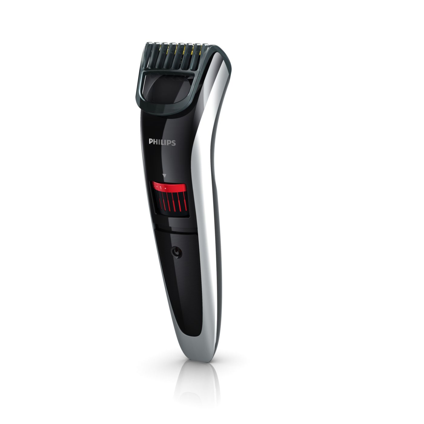 Gire o botão para selecionar os ajustes de altura desejados: de uma barba de 3 dias de 0,5mm a uma barba completa de 10mm, em etapas precisas de 0,5mm.