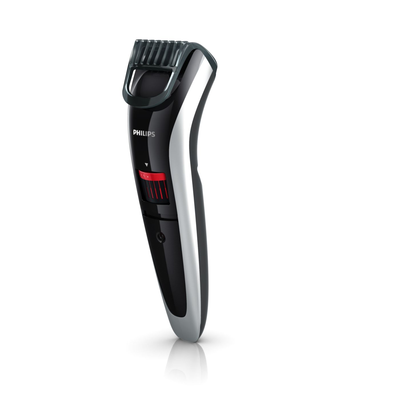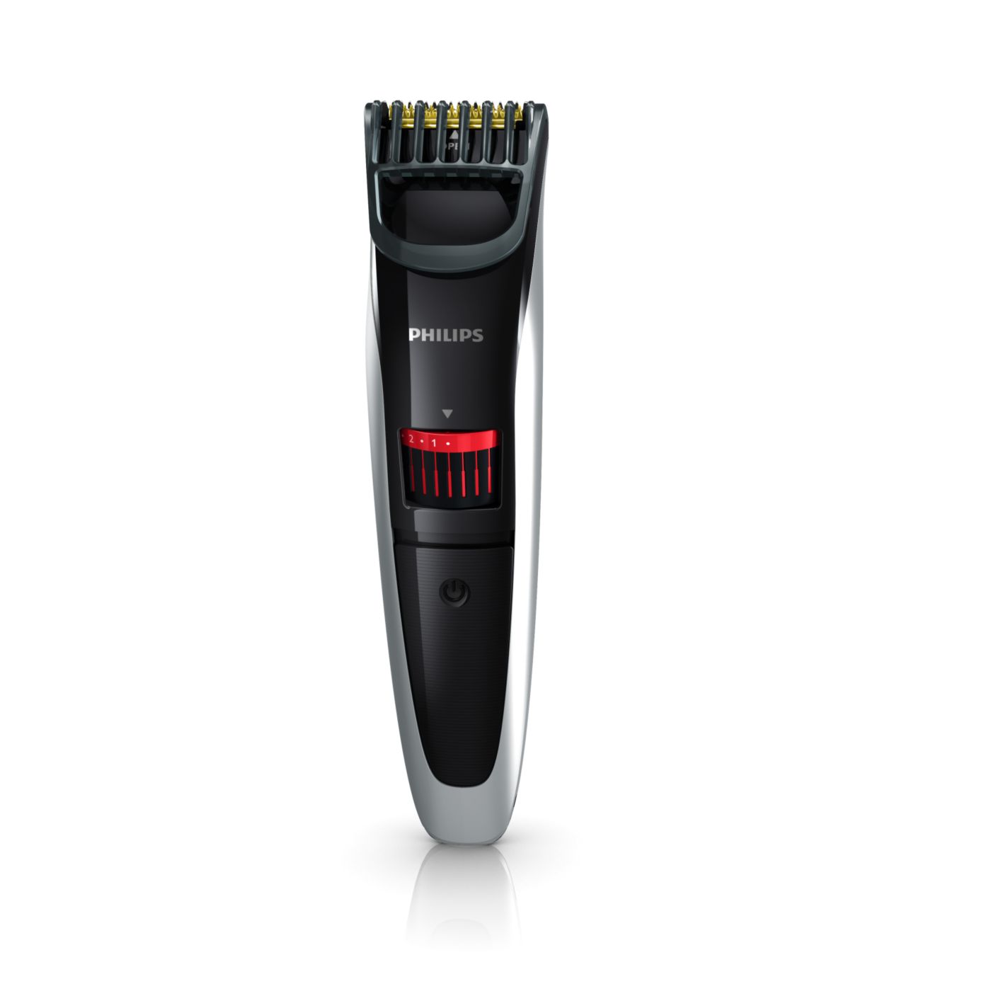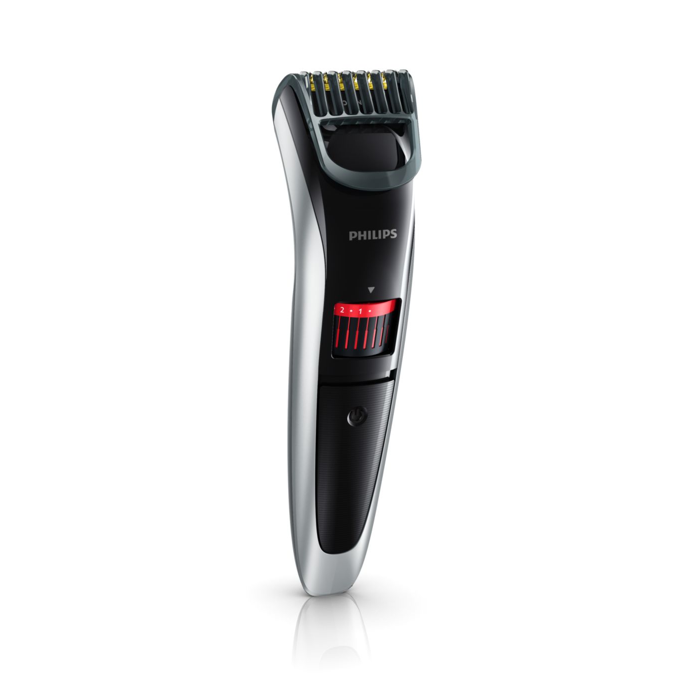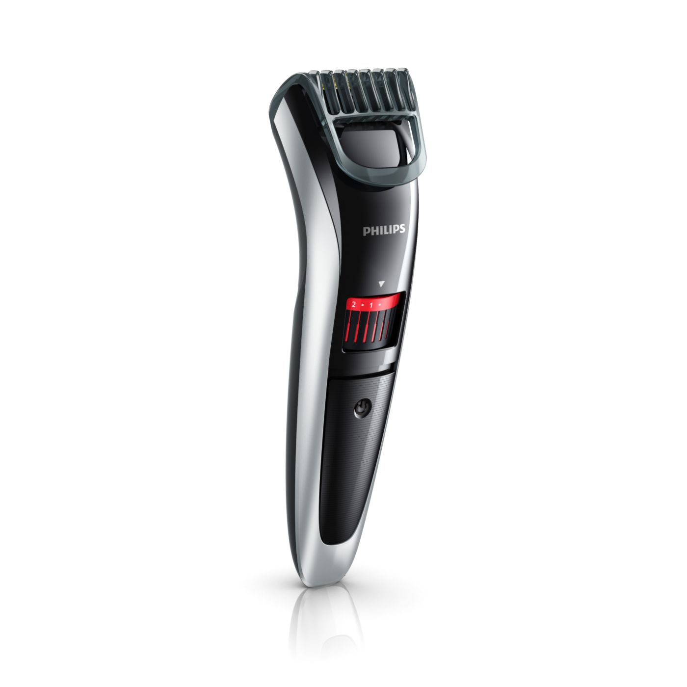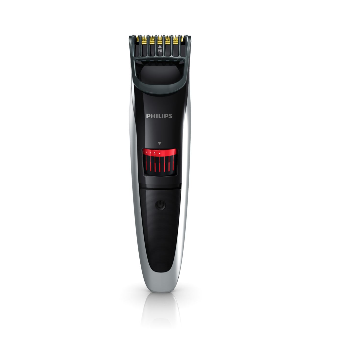 Gire o botão para selecionar os ajustes de altura desejados: de uma barba de 3 dias de 0,5mm a uma barba completa de 10mm, em etapas precisas de 0,5mm.