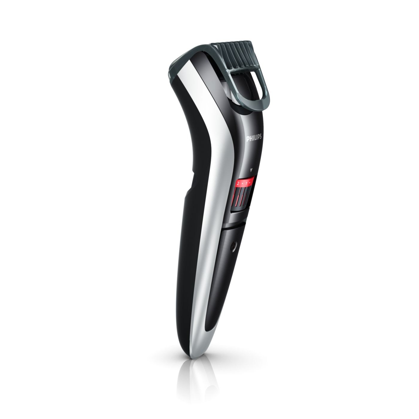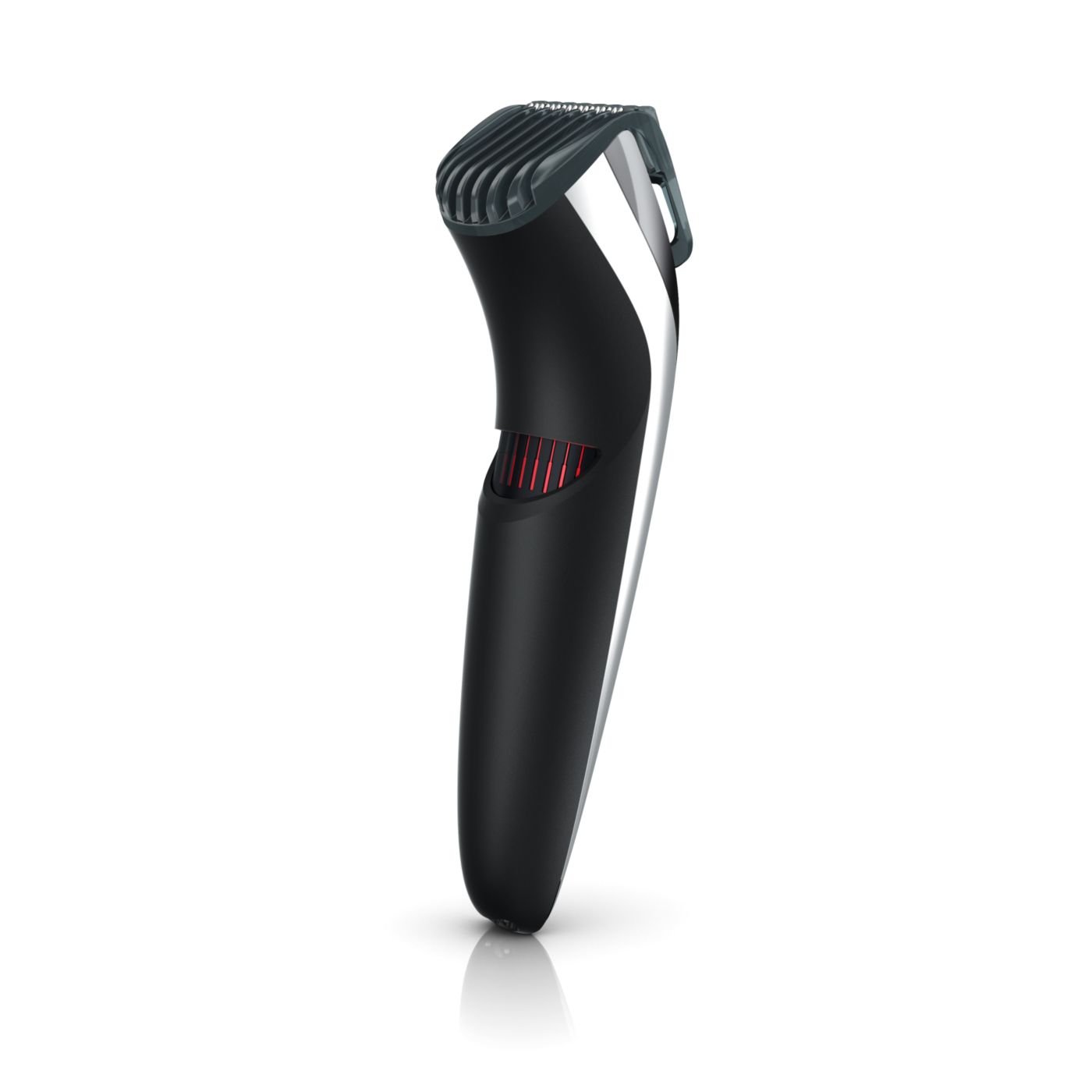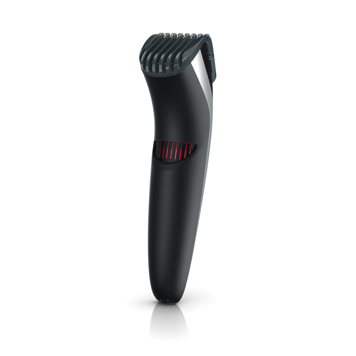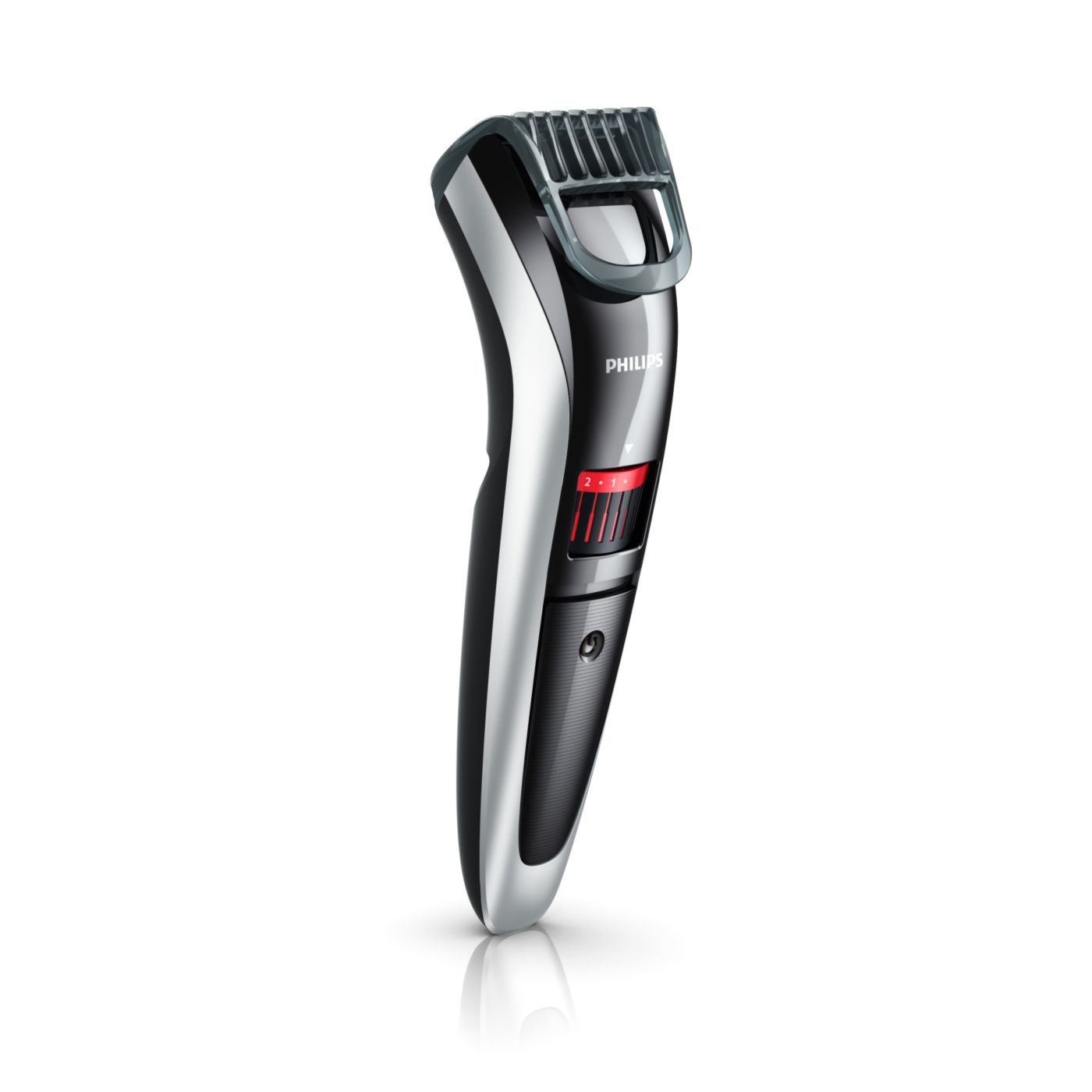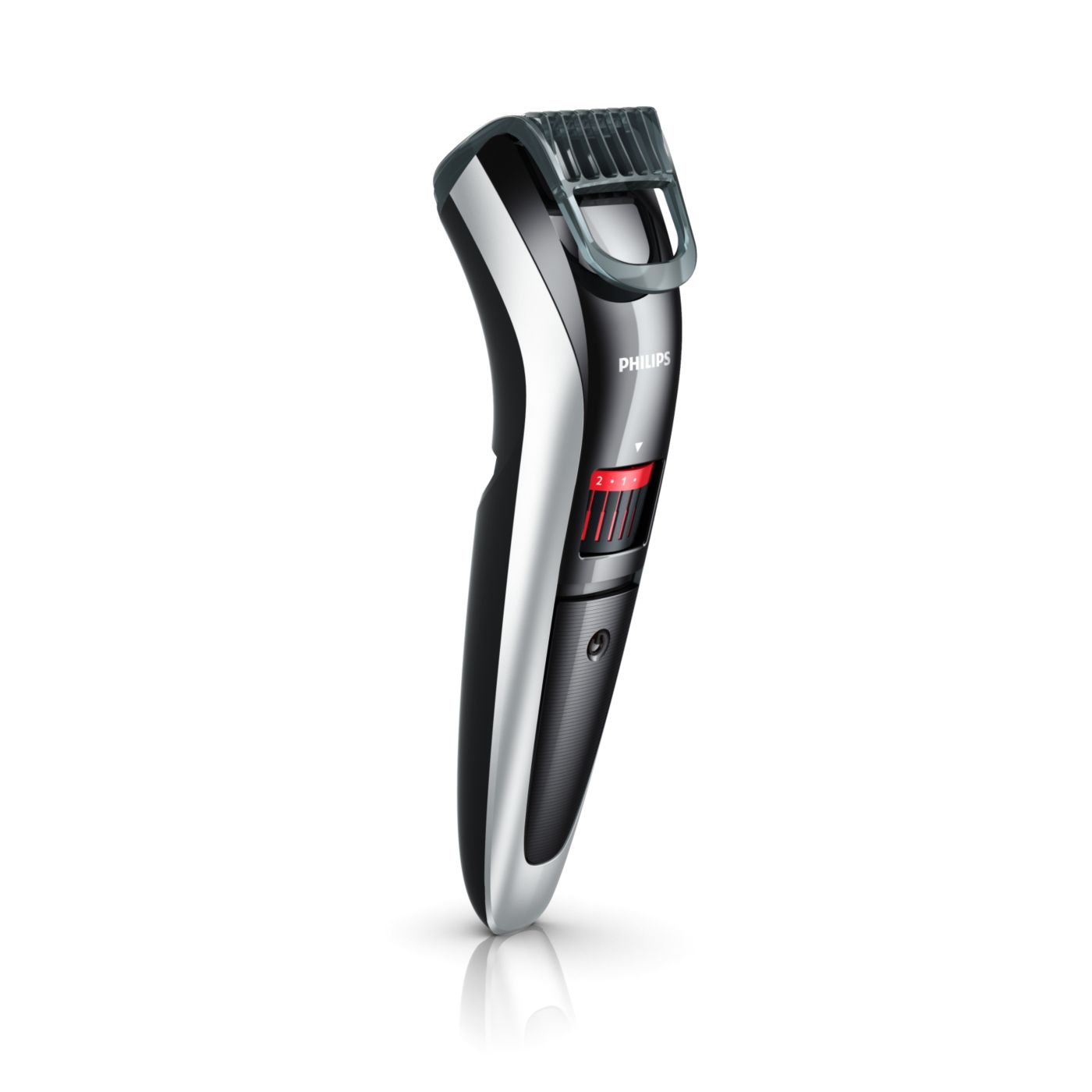 Gire o botão para selecionar os ajustes de altura desejados: de uma barba de 3 dias de 0,5mm a uma barba completa de 10mm, em etapas precisas de 0,5mm.