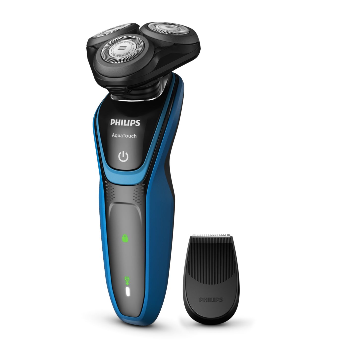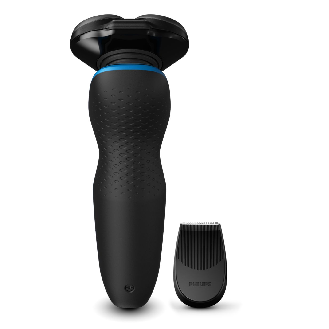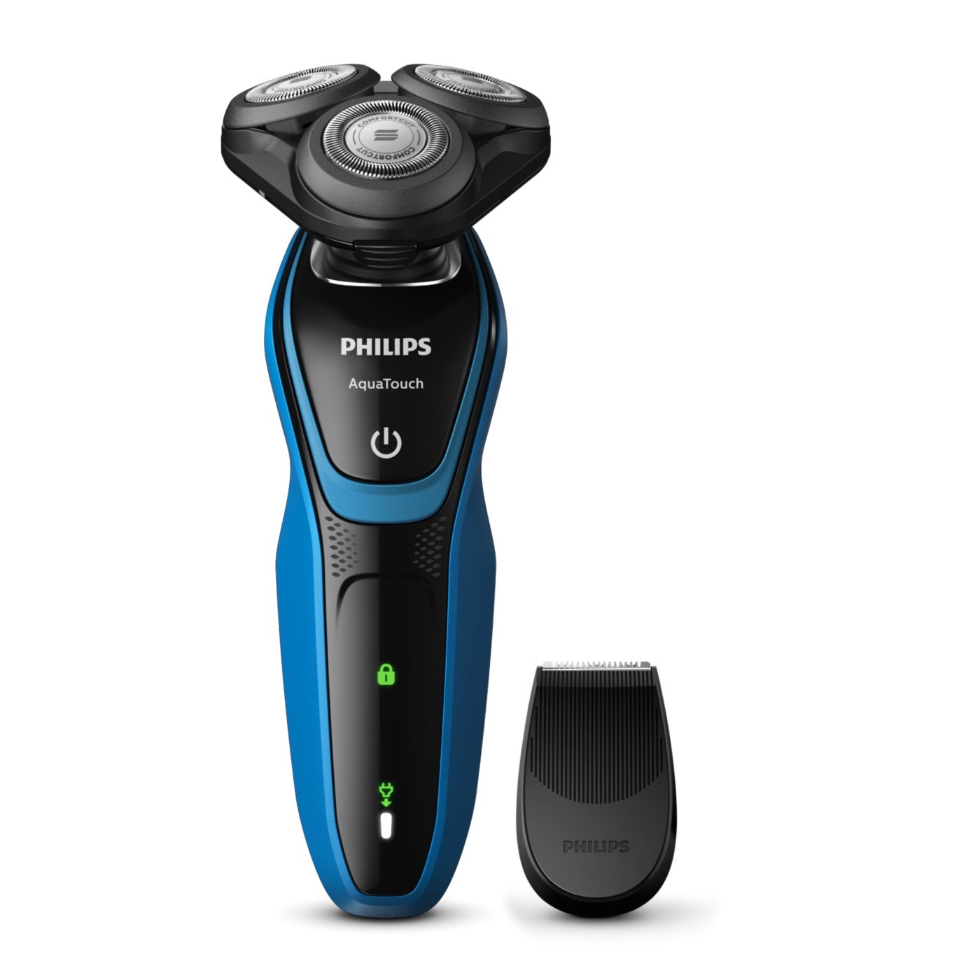 Barbear confortável, com a pele seca ou molhada. Nosso sistema de lâmina ComfortCut com cabeças arredondadas desliza suavemente sobre a pele, protegendo-a de cortes e arranhões.