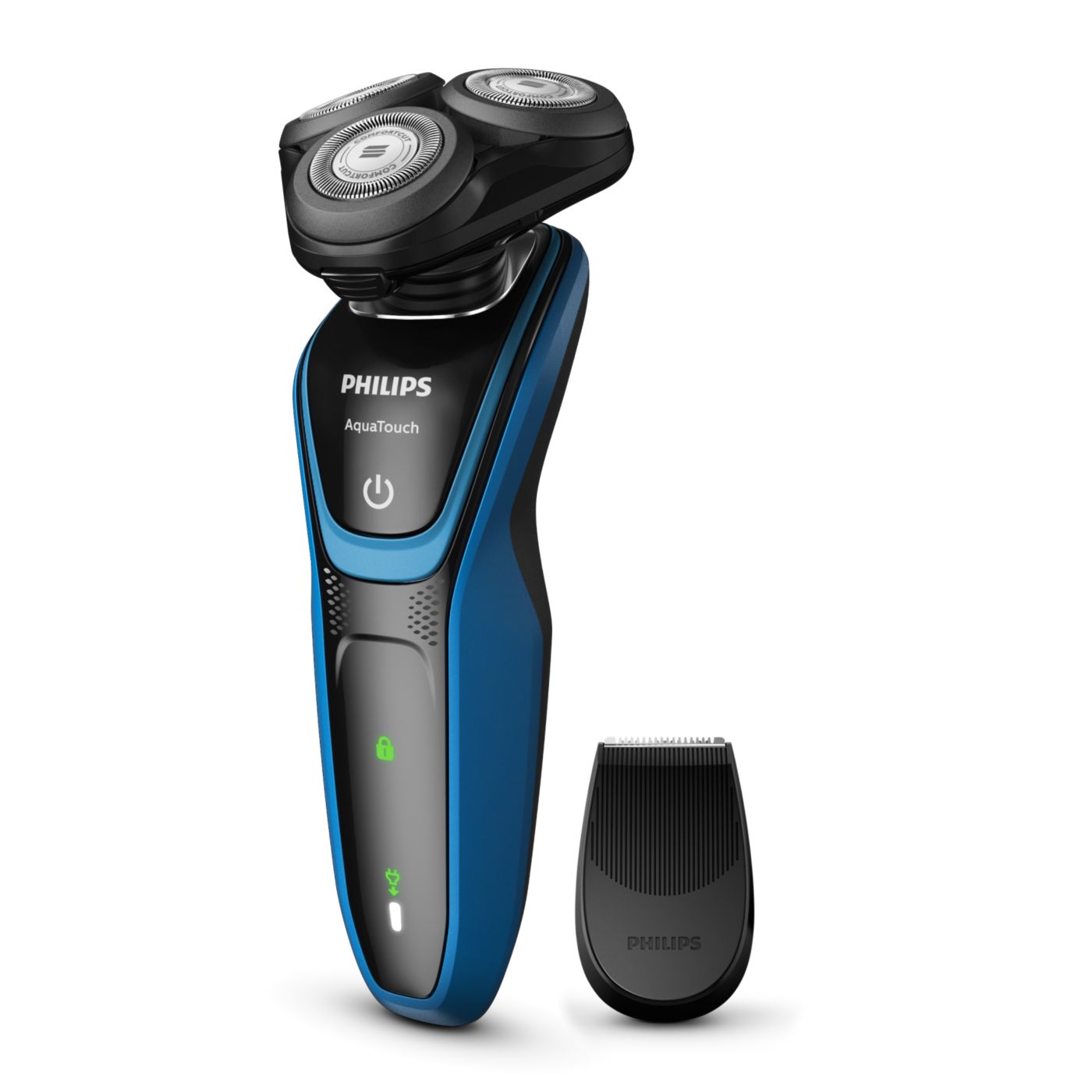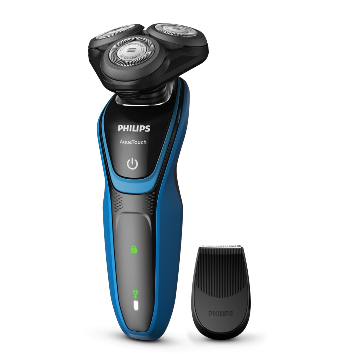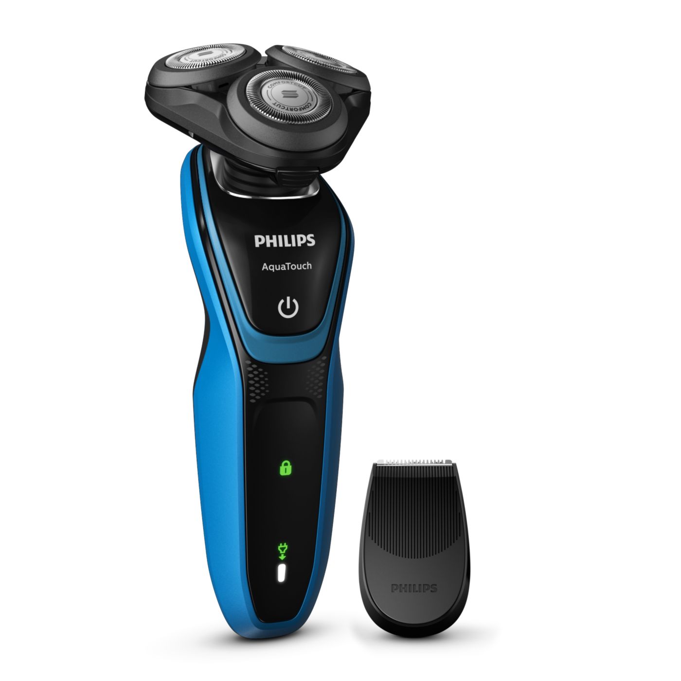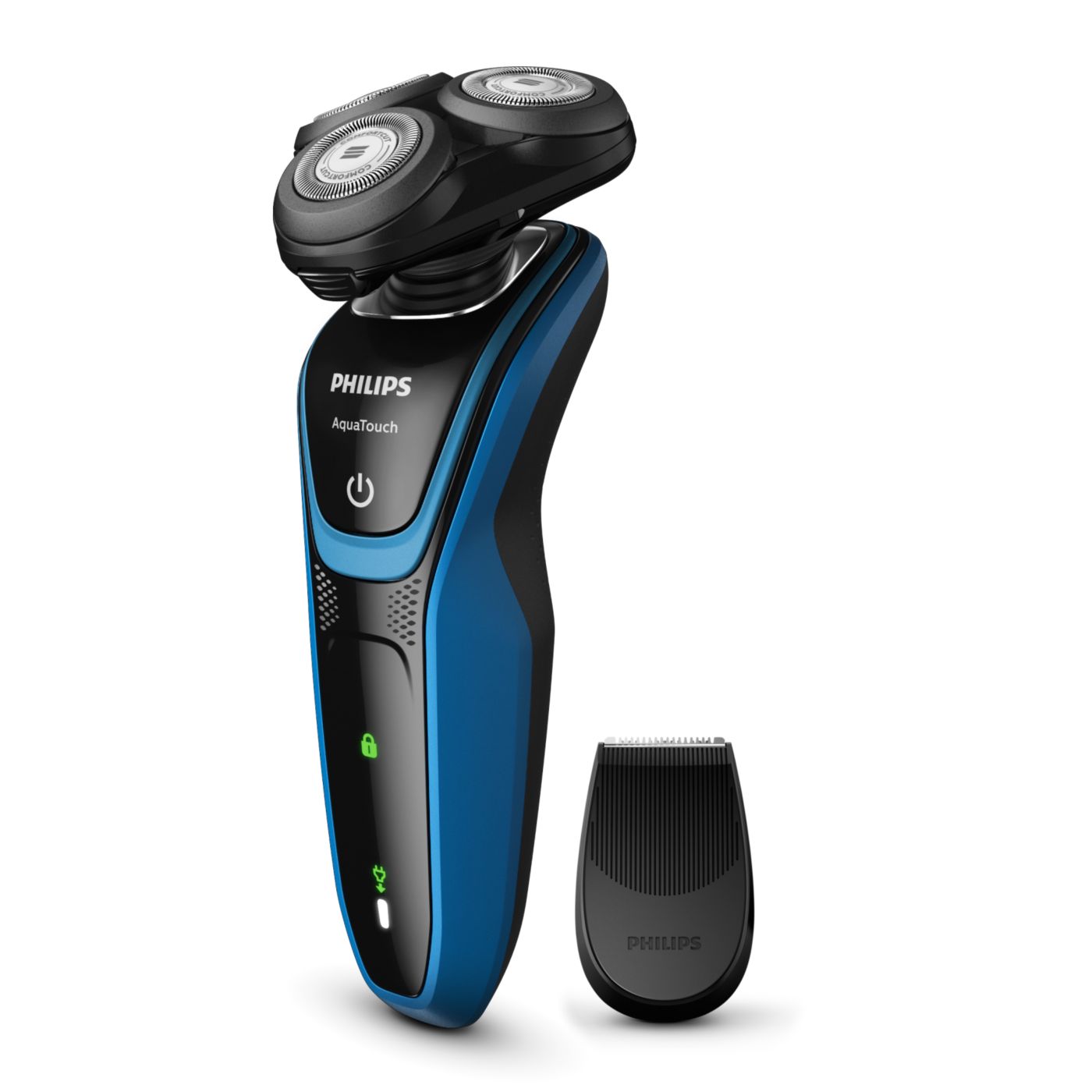 Barbear confortável, com a pele seca ou molhada. Nosso sistema de lâmina ComfortCut com cabeças arredondadas desliza suavemente sobre a pele, protegendo-a de cortes e arranhões.