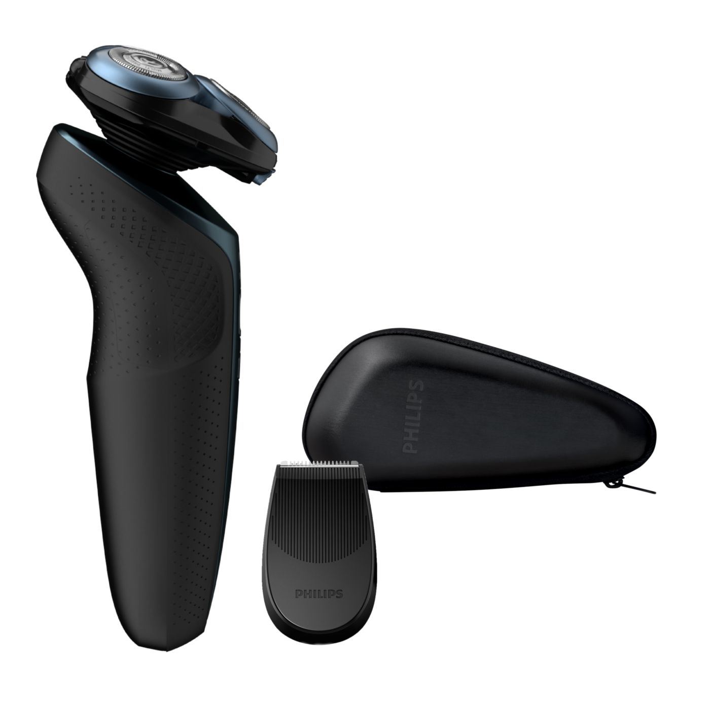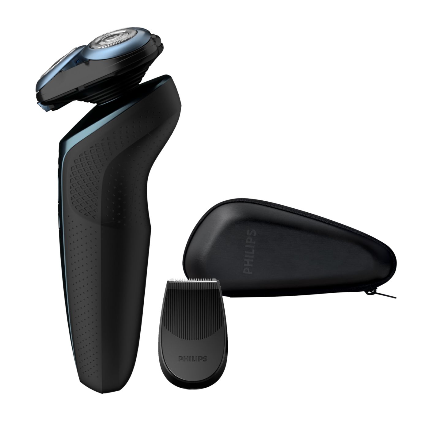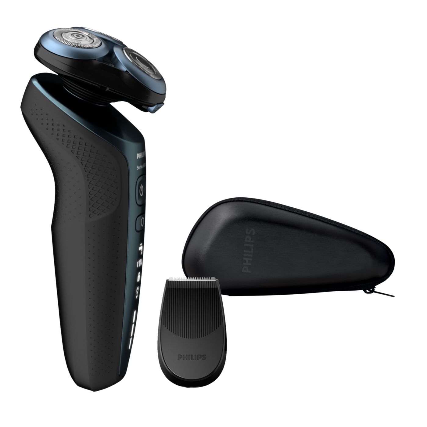 Cabeças Flex em cinco direções com cinco movimentos independentes se ajustam ao contorno do rosto e permitem que o barbeador deslize sobre a pele confortavelmente com o mínimo de resistência.